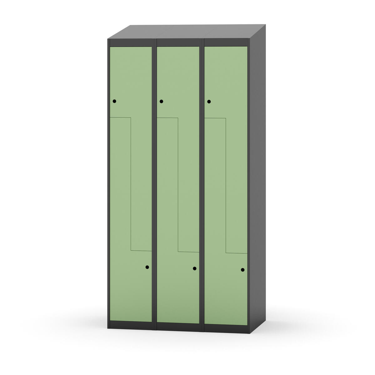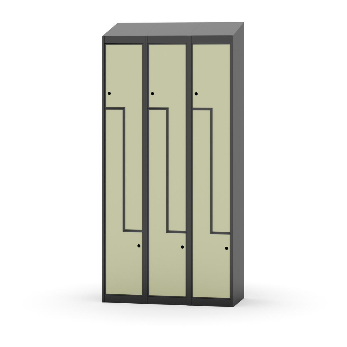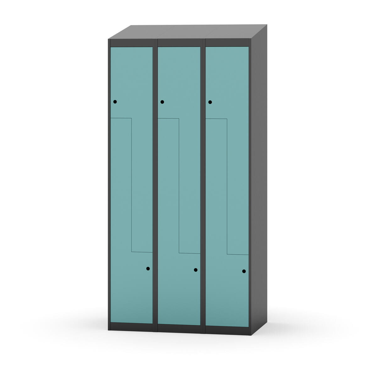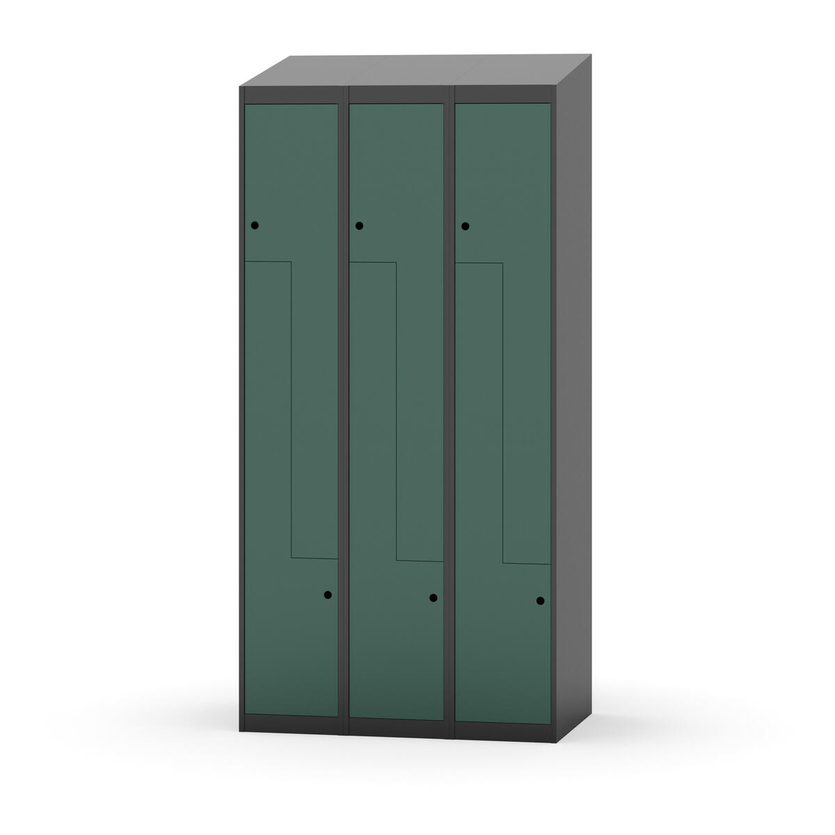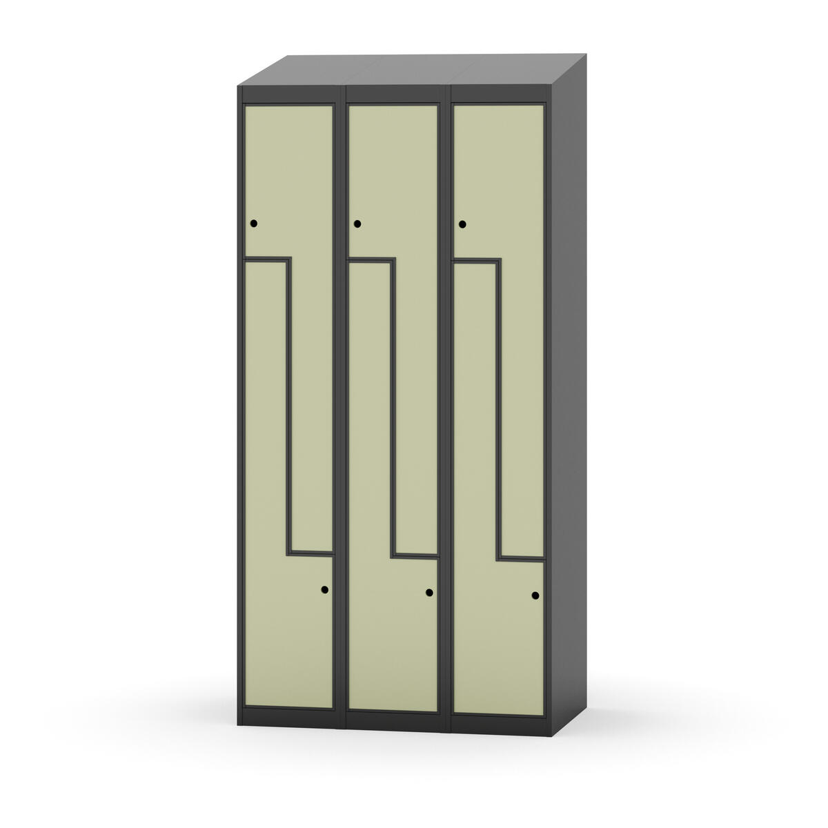 Klädskåp med helsvetsad stomme. Välj mellan plåt eller laminatdörr. Plåtdörren är försedd med dörrstopp i stål och infälld förstärkning kring låshålet. Laminatdörr infälld i stålram försedd med dörrstopp i stål. Dörrar är öppningsbara 90 grader. Inredning: Klädstång med ankarkrok. Slät golvyta utan tröskel. Ventilation genom hål i tak-/bottenplåt. Observera att lås och underrede beställs på separata artikelnummer. Lås kommer att vara monterade på skåp vid leverans. Valt underrede monteras på plats.