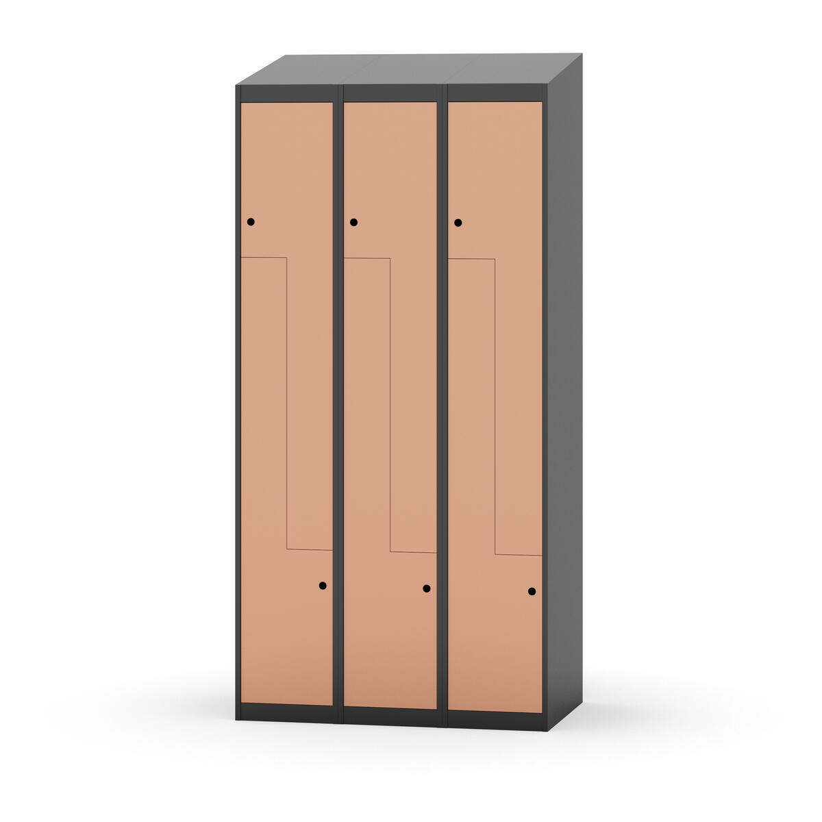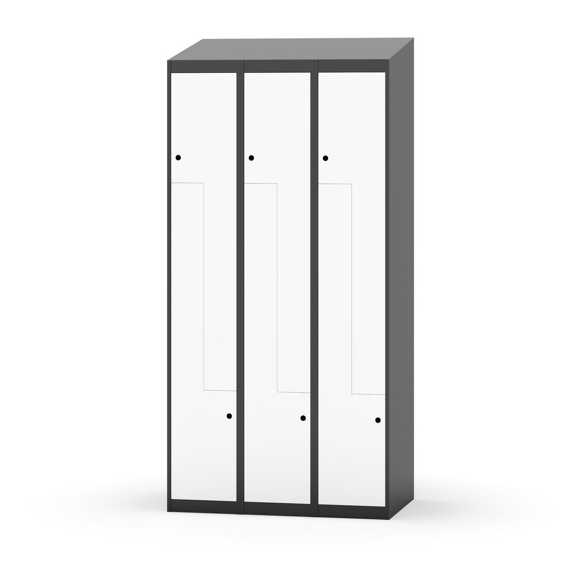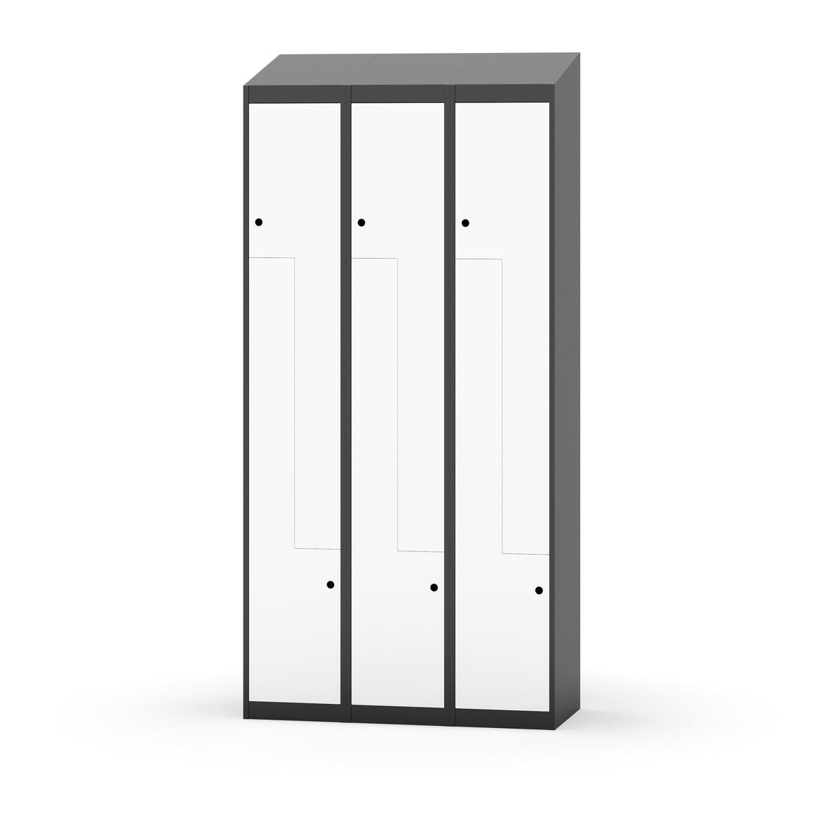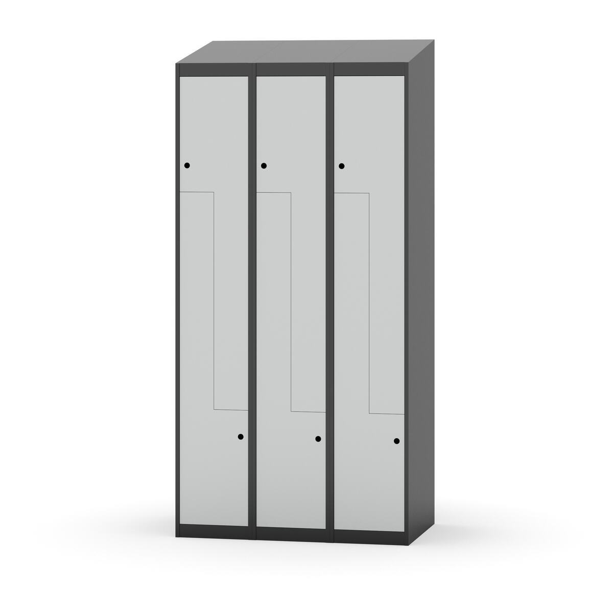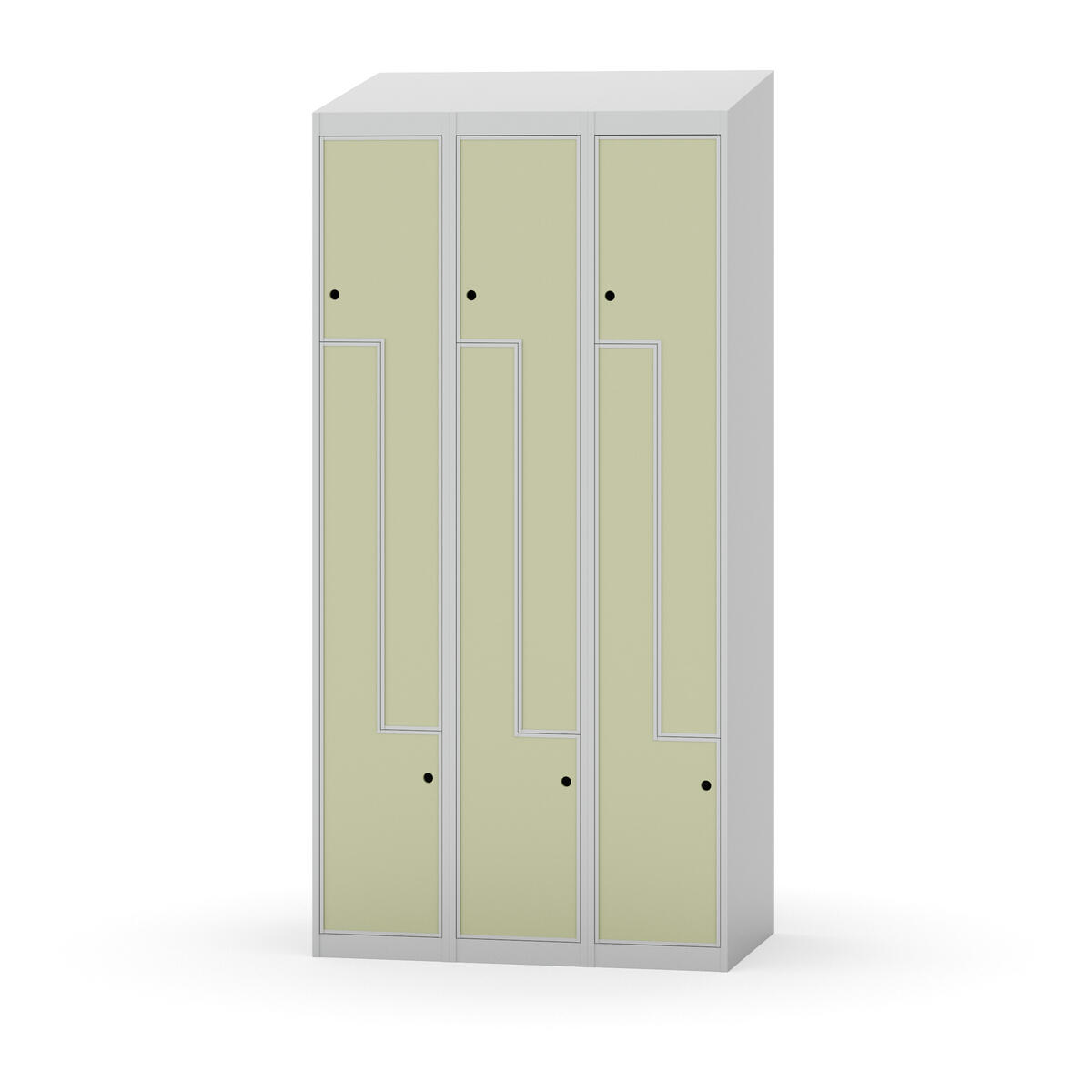 Klädskåp med helsvetsad stomme. Välj mellan plåt eller laminatdörr. Plåtdörren är försedd med dörrstopp i stål och infälld förstärkning kring låshålet. Laminatdörr infälld i stålram försedd med dörrstopp i stål. Dörrar är öppningsbara 90 grader. Inredning: Klädstång med ankarkrok. Slät golvyta utan tröskel. Ventilation genom hål i tak-/bottenplåt. Observera att lås och underrede beställs på separata artikelnummer. Lås kommer att vara monterade på skåp vid leverans. Valt underrede monteras på plats.