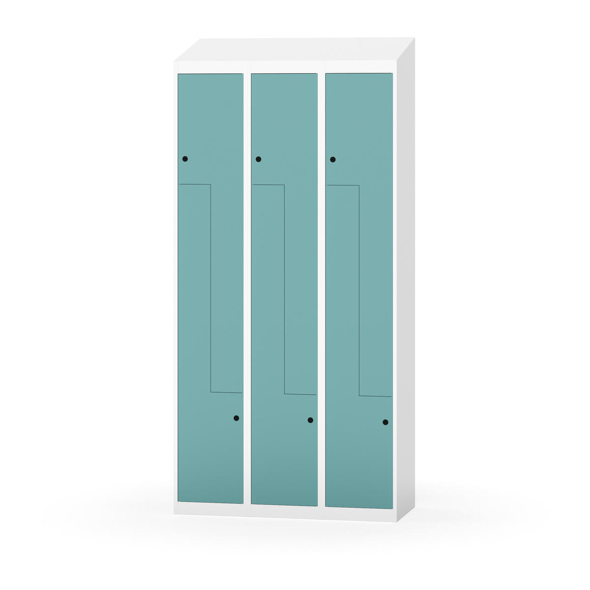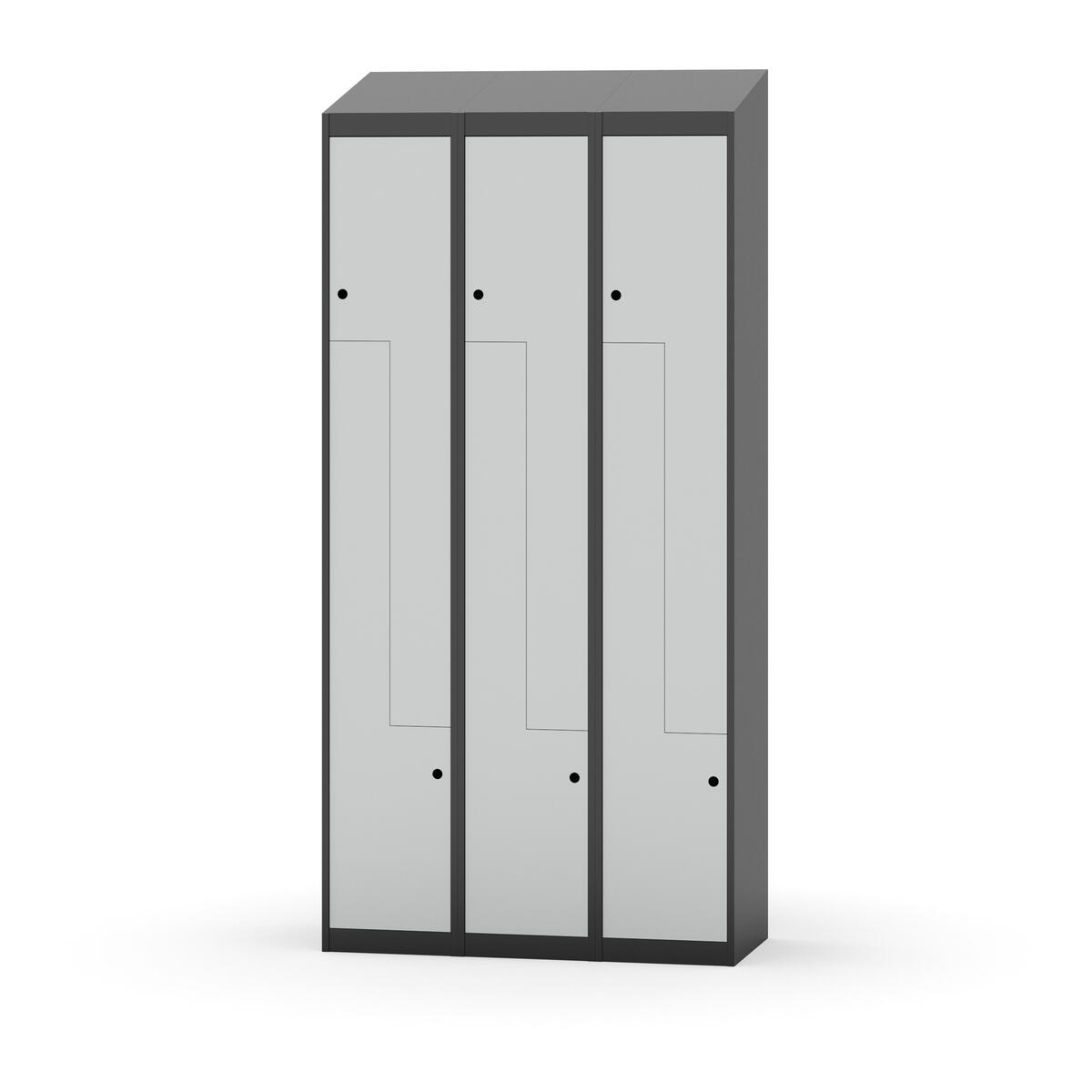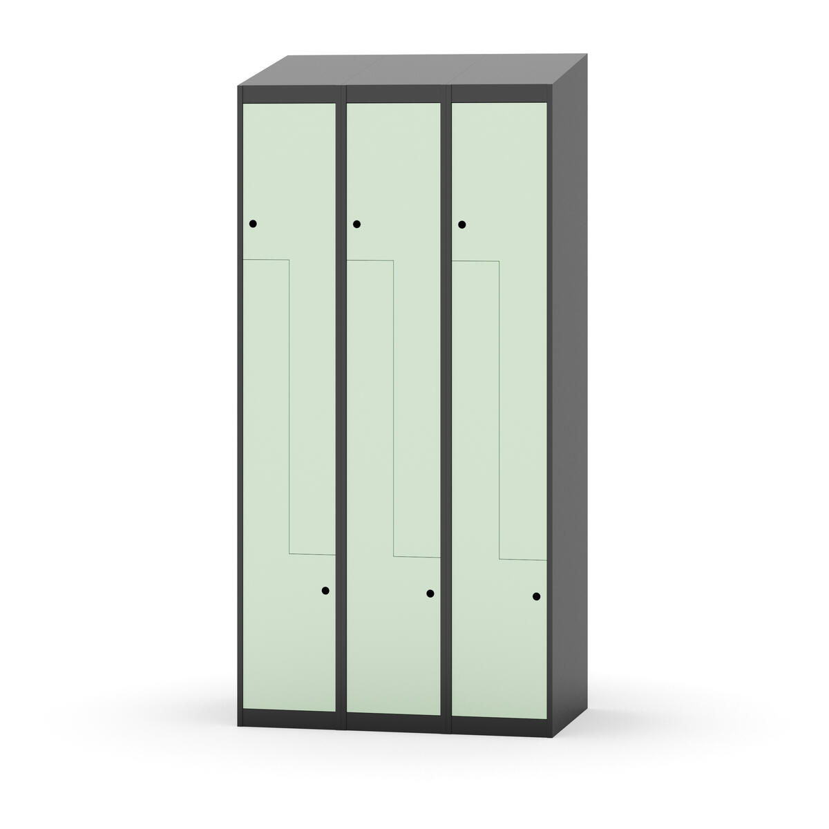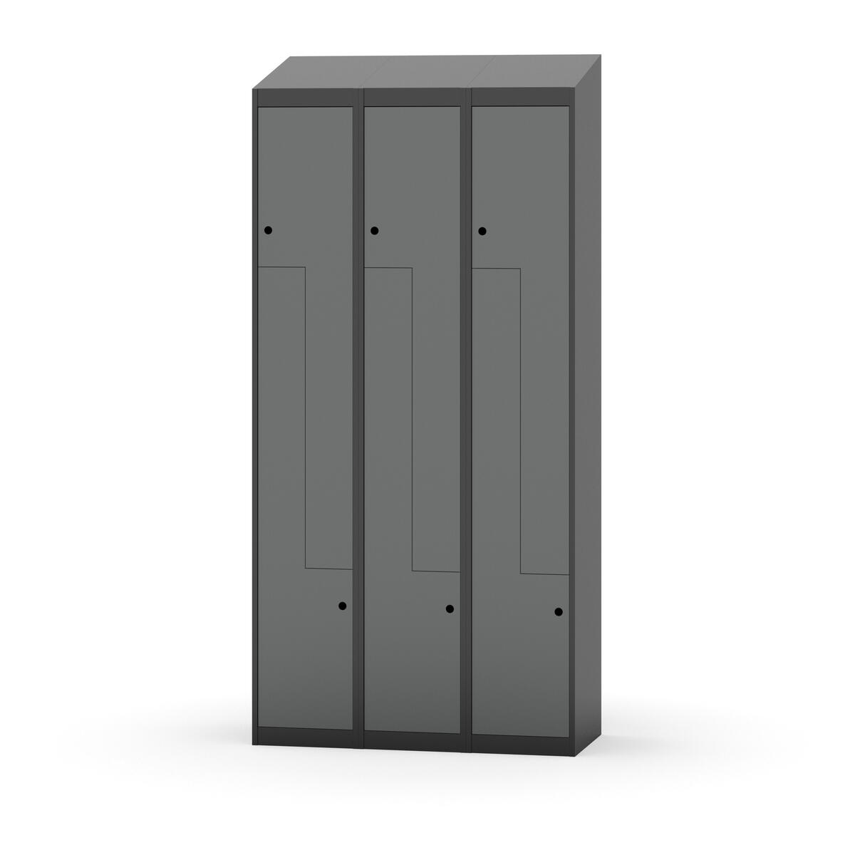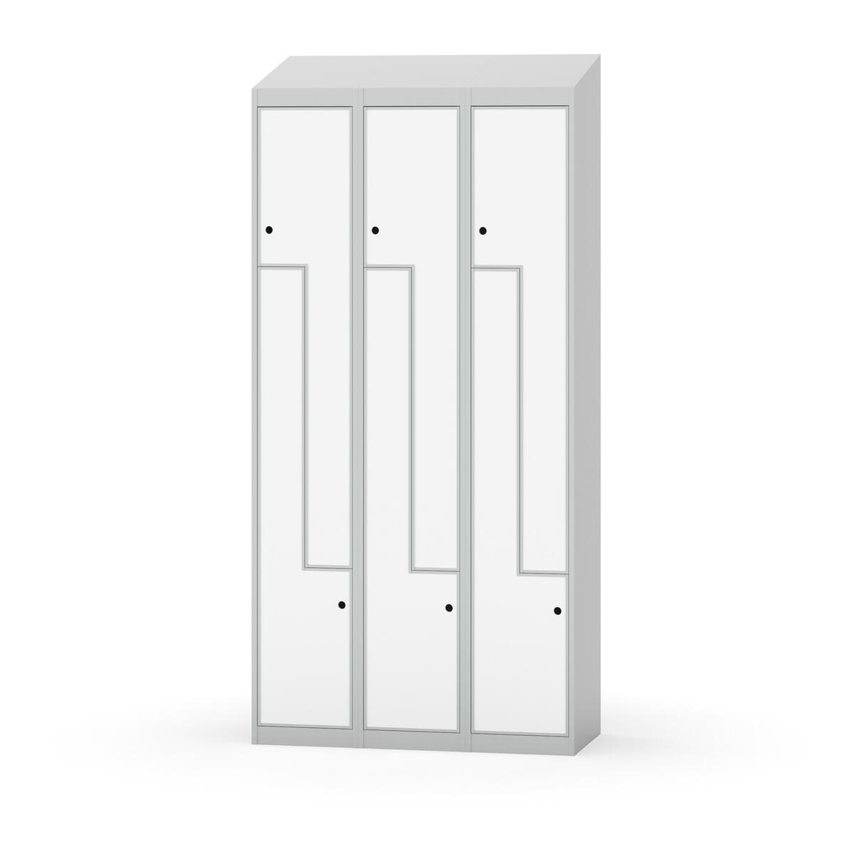 Klädskåp med helsvetsad stomme. Välj mellan plåt eller laminatdörr. Plåtdörren är försedd med dörrstopp i stål och infälld förstärkning kring låshålet. Laminatdörr infälld i stålram försedd med dörrstopp i stål. Dörrar är öppningsbara 90 grader. Inredning: Klädstång med ankarkrok. Slät golvyta utan tröskel. Ventilation genom hål i tak-/bottenplåt. Observera att lås och underrede beställs på separata artikelnummer. Lås kommer att vara monterade på skåp vid leverans. Valt underrede monteras på plats.
