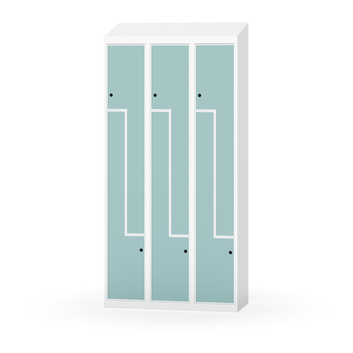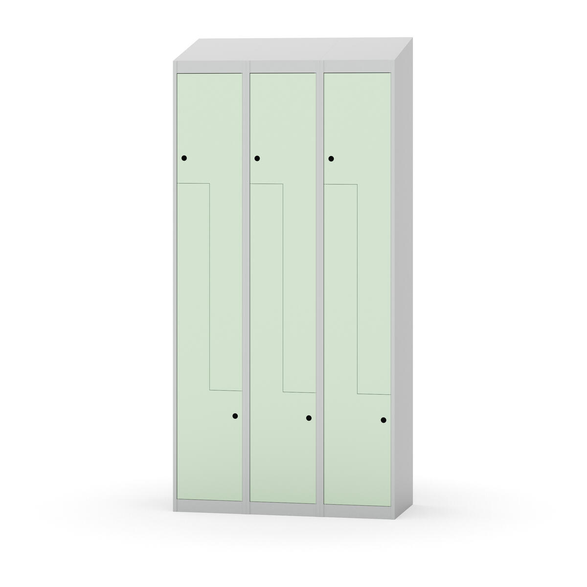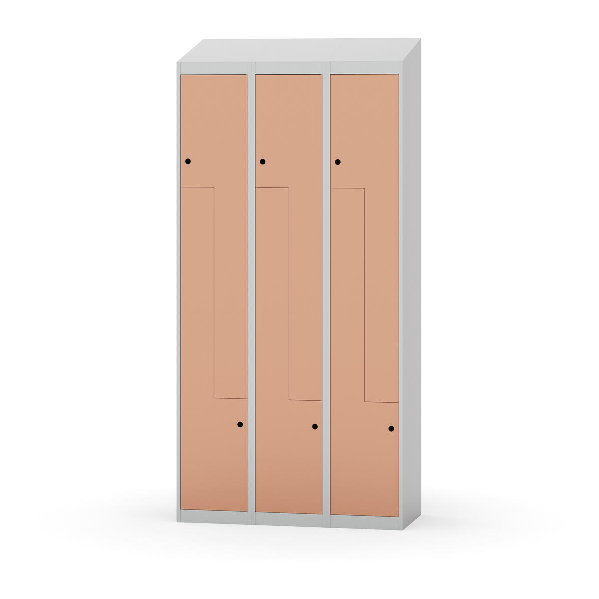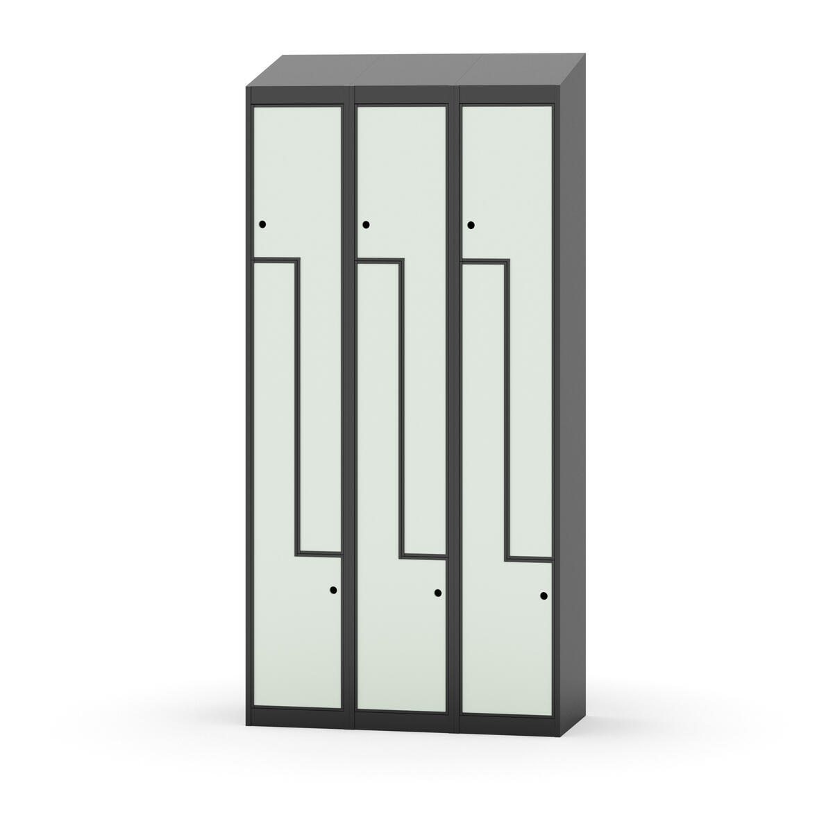 Klädskåp med helsvetsad stomme. Välj mellan plåt eller laminatdörr. Plåtdörren är försedd med dörrstopp i stål och infälld förstärkning kring låshålet. Laminatdörr infälld i stålram försedd med dörrstopp i stål. Dörrar är öppningsbara 90 grader. Inredning: Klädstång med ankarkrok. Slät golvyta utan tröskel. Ventilation genom hål i tak-/bottenplåt. Observera att lås och underrede beställs på separata artikelnummer. Lås kommer att vara monterade på skåp vid leverans. Valt underrede monteras på plats.