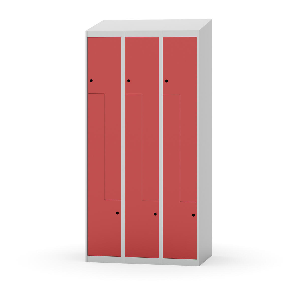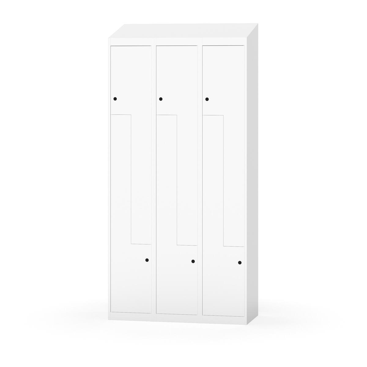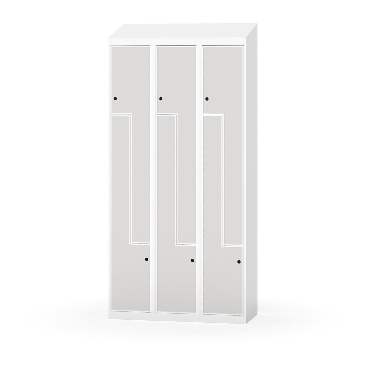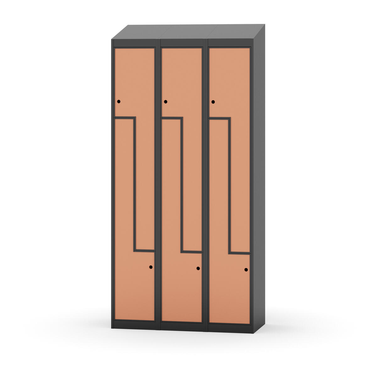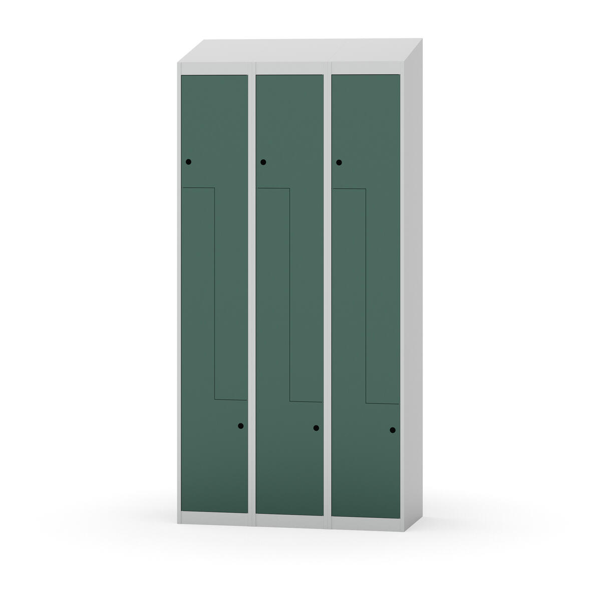 Klädskåp med helsvetsad stomme. Välj mellan plåt eller laminatdörr. Plåtdörren är försedd med dörrstopp i stål och infälld förstärkning kring låshålet. Laminatdörr infälld i stålram försedd med dörrstopp i stål. Dörrar är öppningsbara 90 grader. Inredning: Klädstång med ankarkrok. Slät golvyta utan tröskel. Ventilation genom hål i tak-/bottenplåt. Observera att lås och underrede beställs på separata artikelnummer. Lås kommer att vara monterade på skåp vid leverans. Valt underrede monteras på plats.