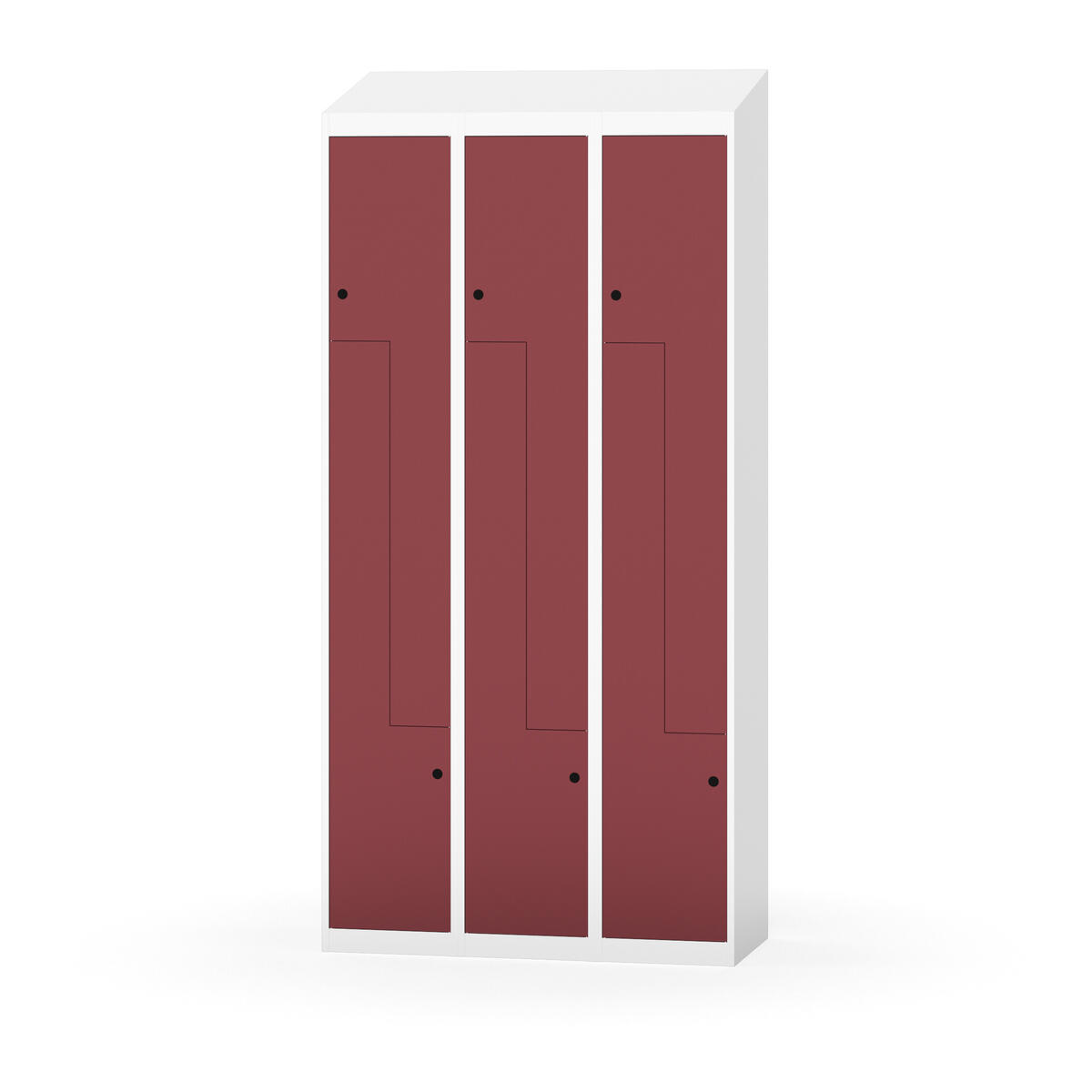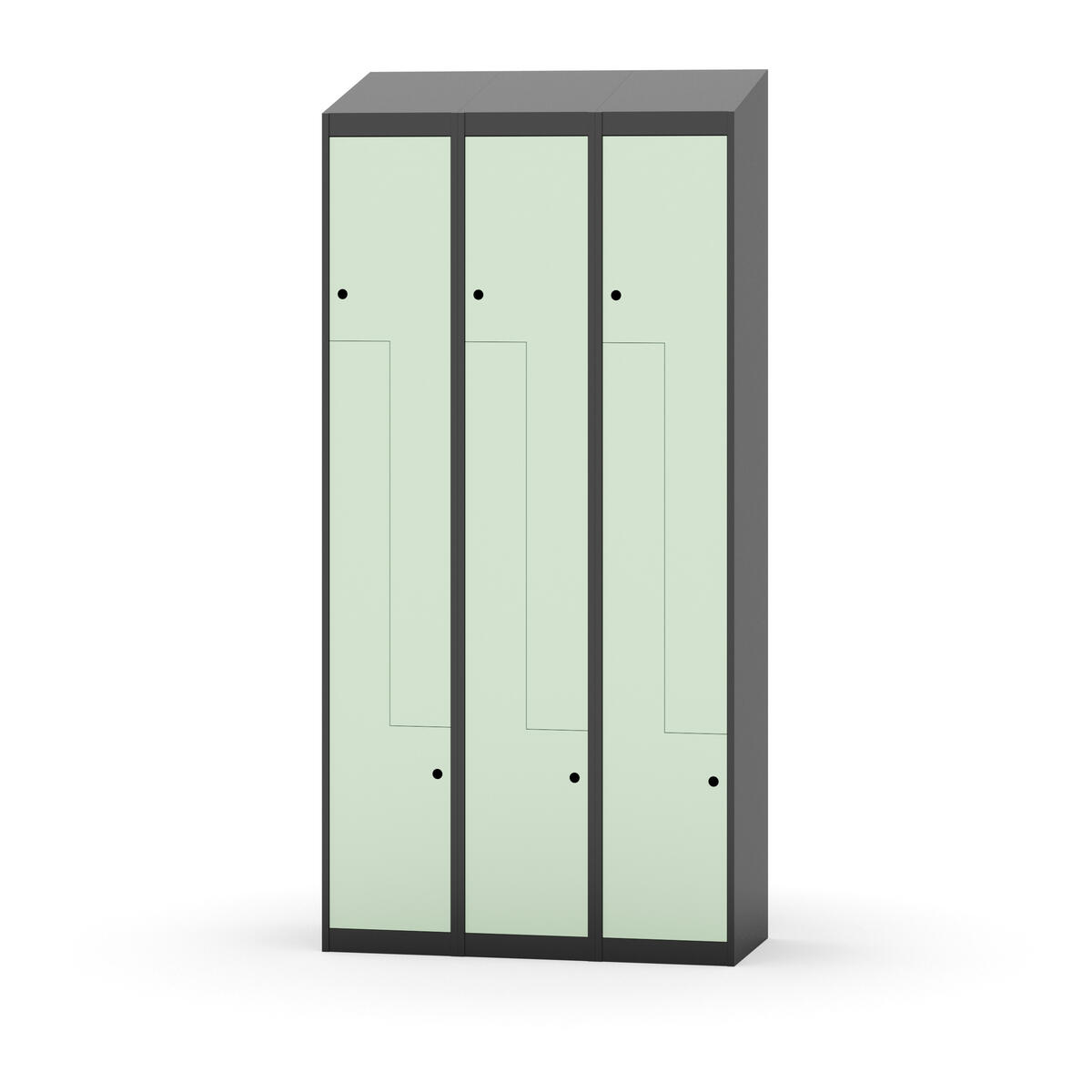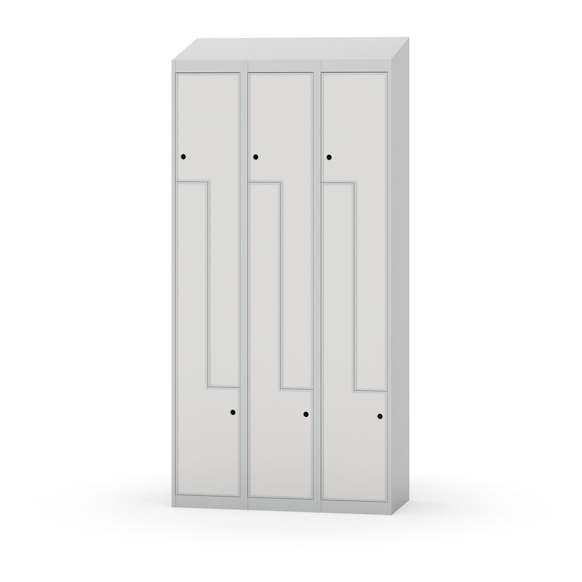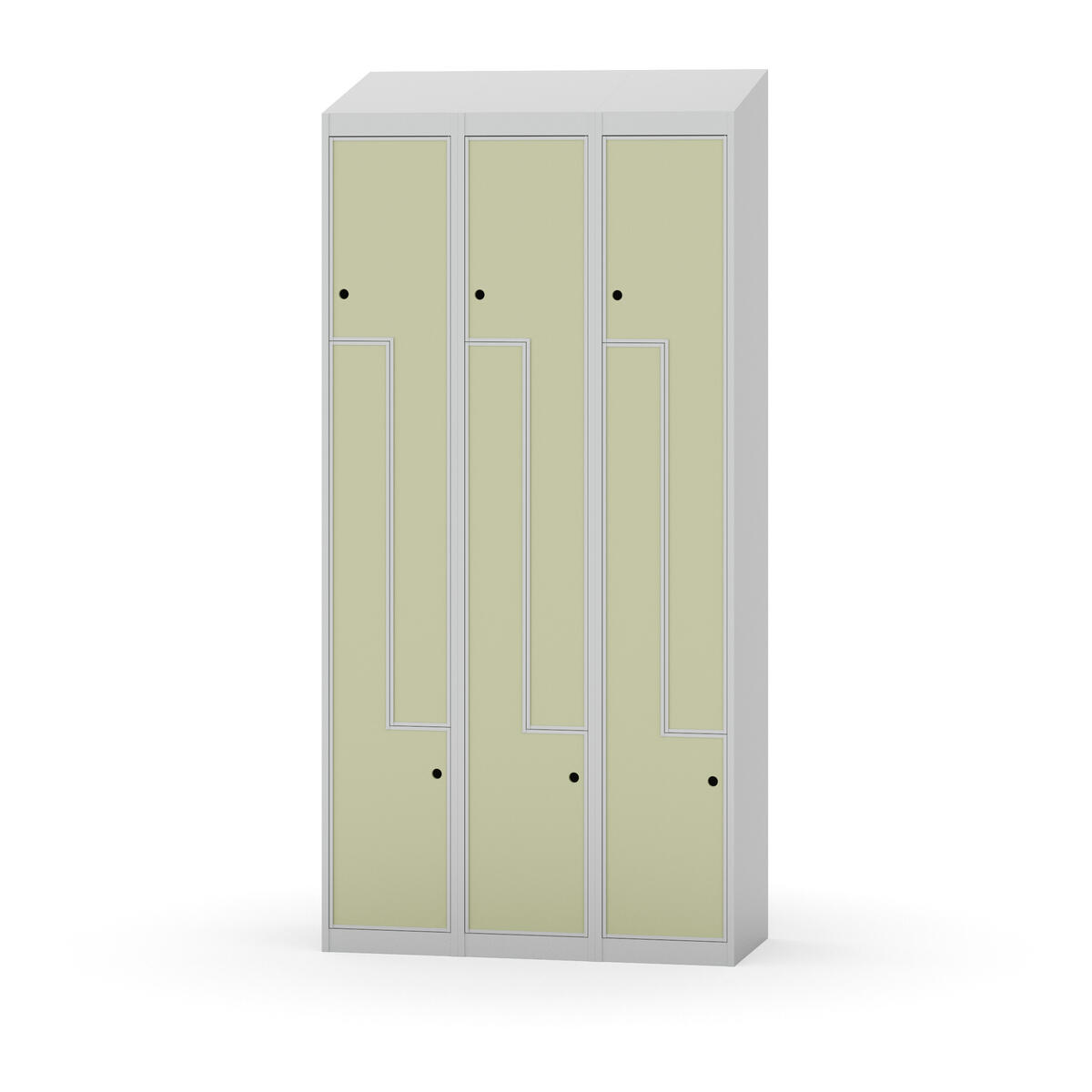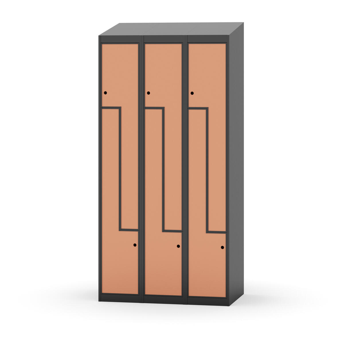 Klädskåp med helsvetsad stomme. Välj mellan plåt eller laminatdörr. Plåtdörren är försedd med dörrstopp i stål och infälld förstärkning kring låshålet. Laminatdörr infälld i stålram försedd med dörrstopp i stål. Dörrar är öppningsbara 90 grader. Inredning: Klädstång med ankarkrok. Slät golvyta utan tröskel. Ventilation genom hål i tak-/bottenplåt. Observera att lås och underrede beställs på separata artikelnummer. Lås kommer att vara monterade på skåp vid leverans. Valt underrede monteras på plats.