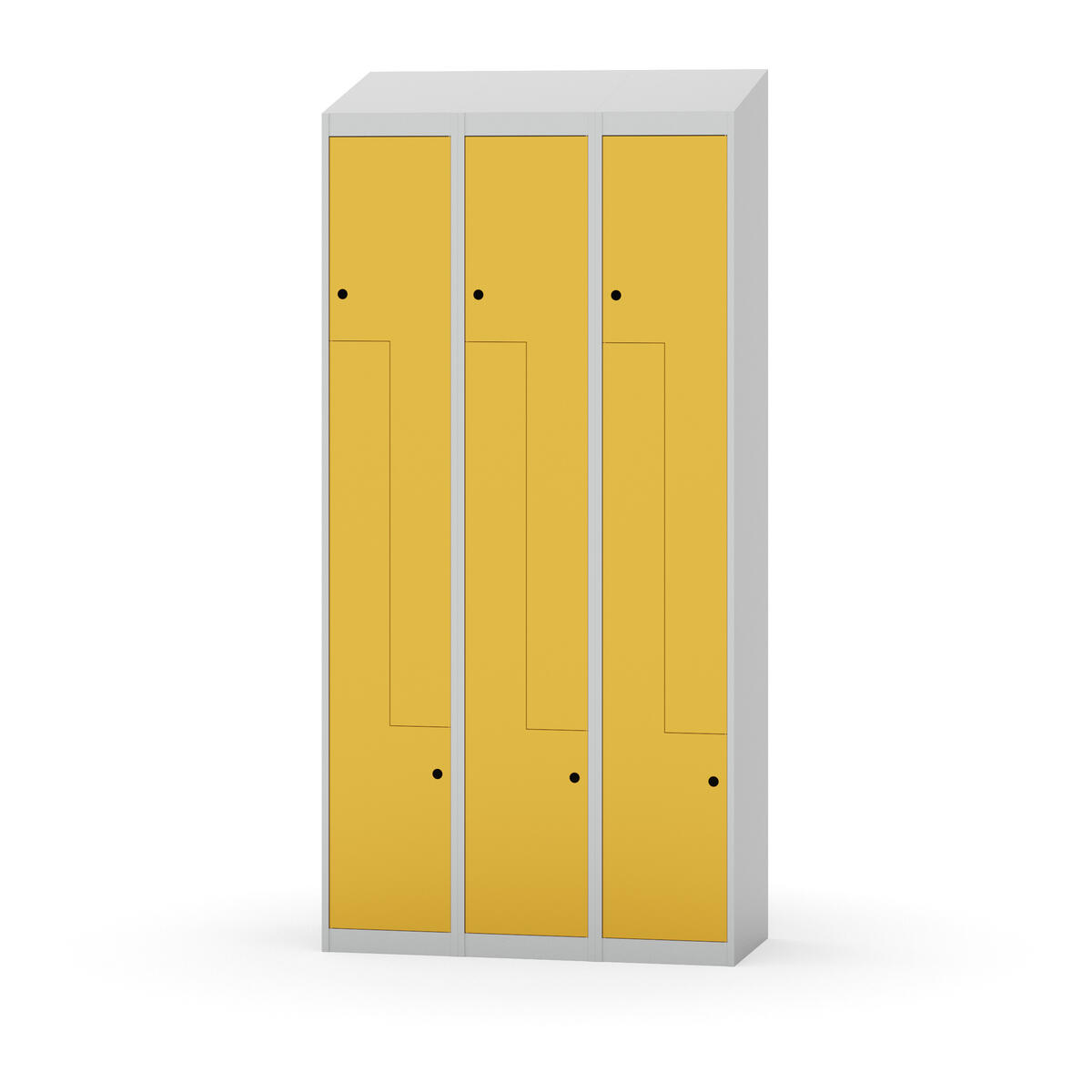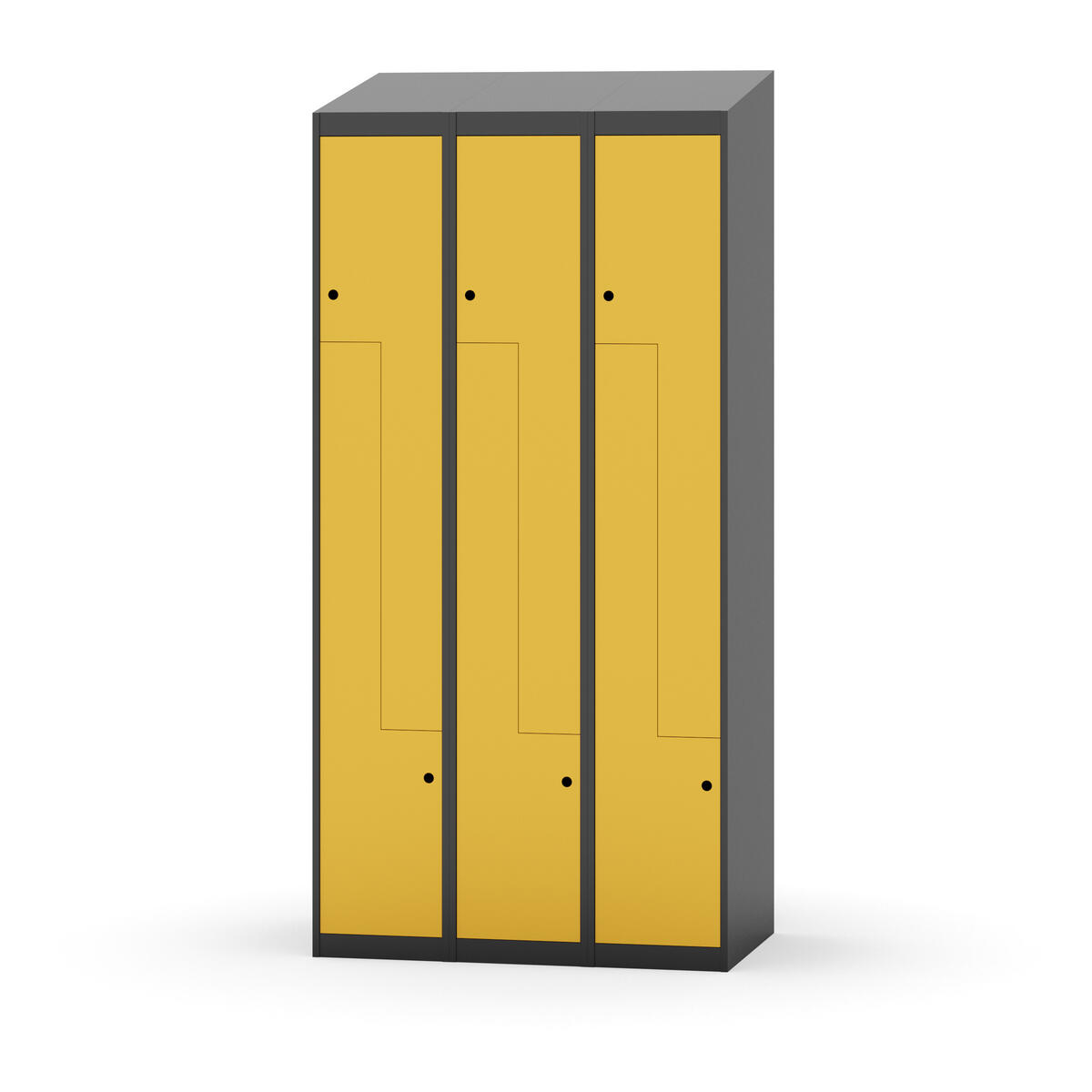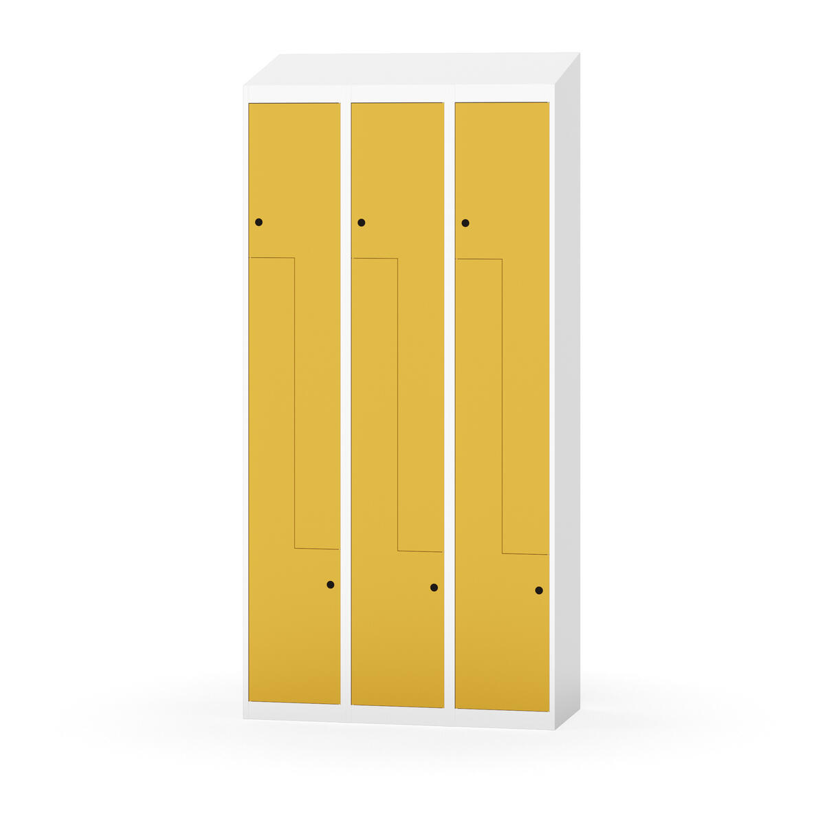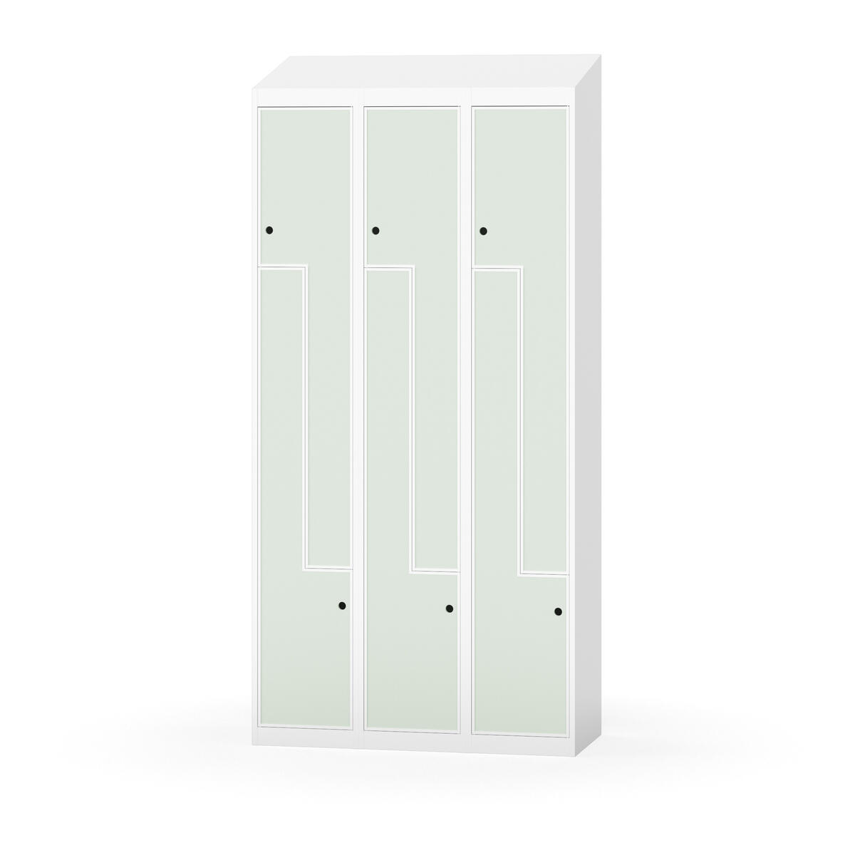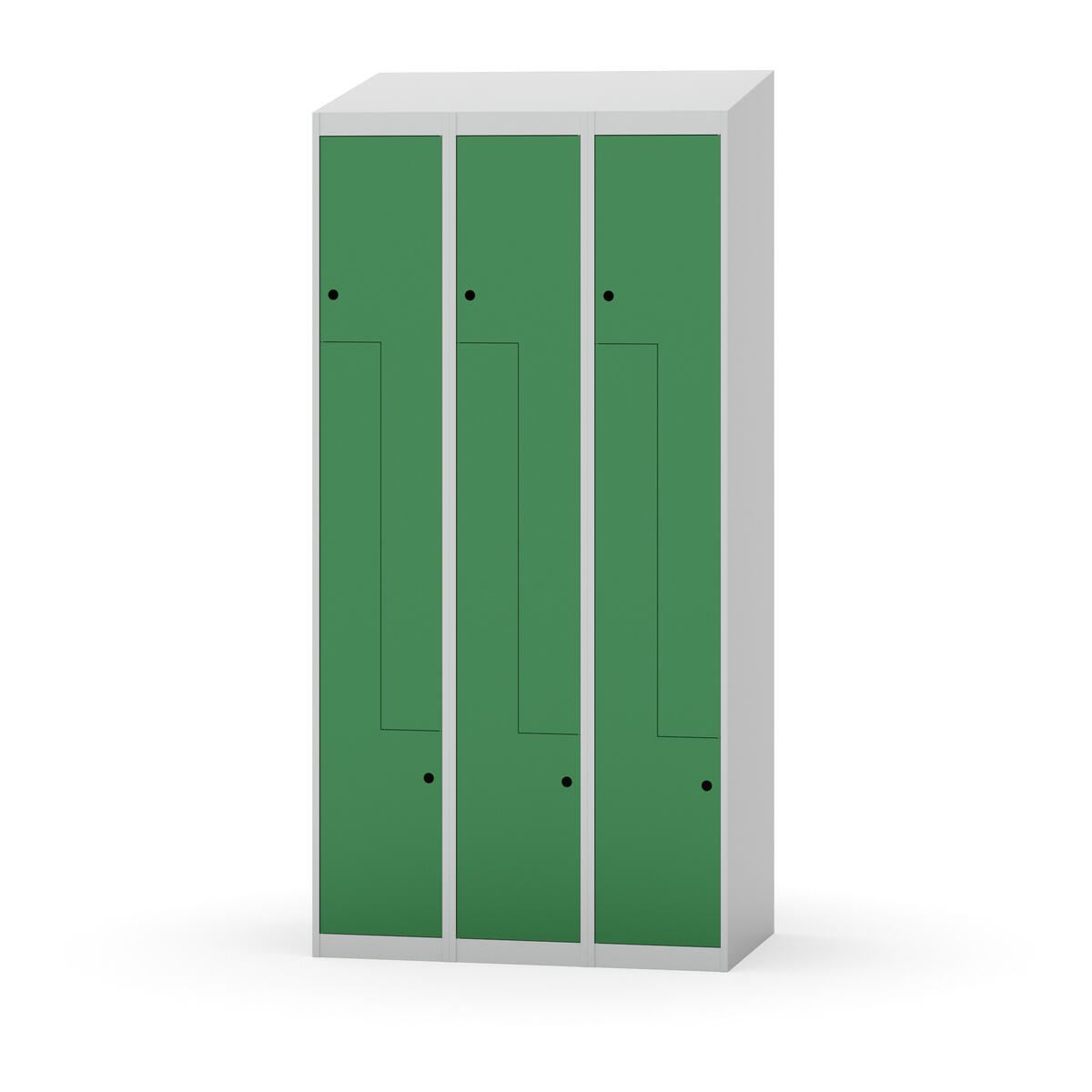 Klädskåp med helsvetsad stomme. Välj mellan plåt eller laminatdörr. Plåtdörren är försedd med dörrstopp i stål och infälld förstärkning kring låshålet. Laminatdörr infälld i stålram försedd med dörrstopp i stål. Dörrar är öppningsbara 90 grader. Inredning: Klädstång med ankarkrok. Slät golvyta utan tröskel. Ventilation genom hål i tak-/bottenplåt. Observera att lås och underrede beställs på separata artikelnummer. Lås kommer att vara monterade på skåp vid leverans. Valt underrede monteras på plats.