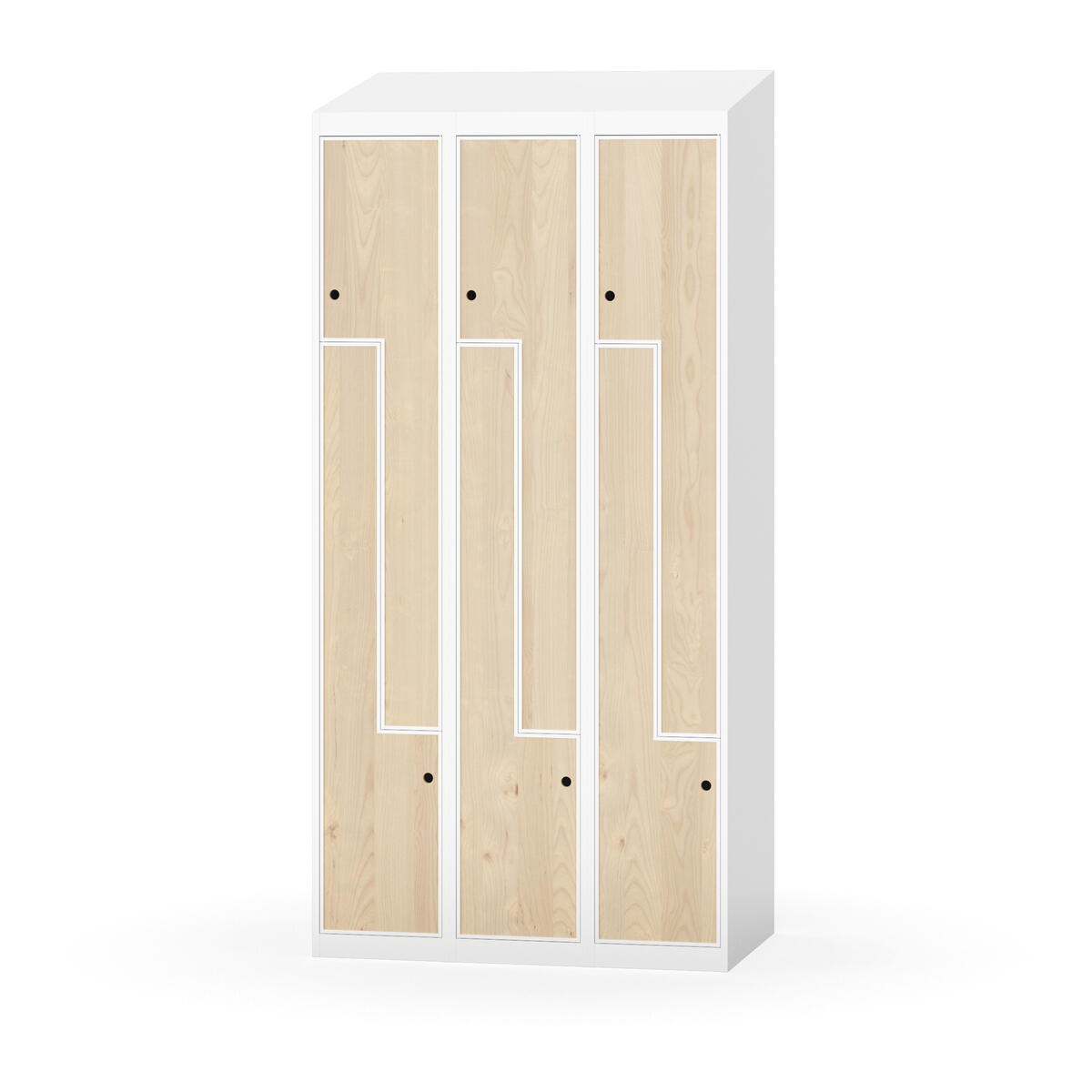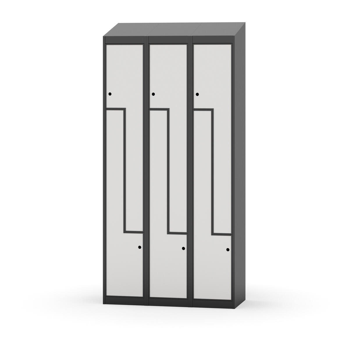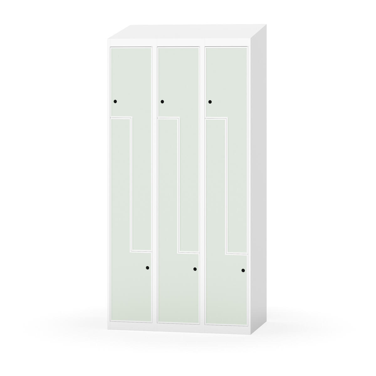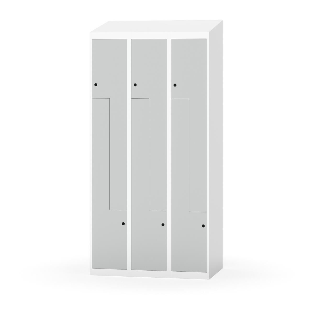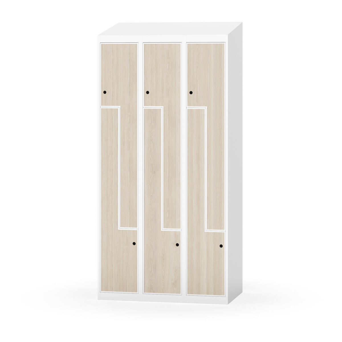 Klädskåp med helsvetsad stomme. Välj mellan plåt eller laminatdörr. Plåtdörren är försedd med dörrstopp i stål och infälld förstärkning kring låshålet. Laminatdörr infälld i stålram försedd med dörrstopp i stål. Dörrar är öppningsbara 90 grader. Inredning: Hyllplan och klädstång med två ankarkrokar. Slät golvyta utan tröskel. Ventilation genom hål i tak-/bottenplåt. Observera att lås och underrede beställs på separata artikelnummer. Lås kommer att vara monterade på skåp vid leverans. Valt underrede monteras på plats.