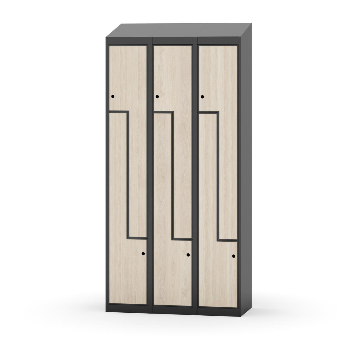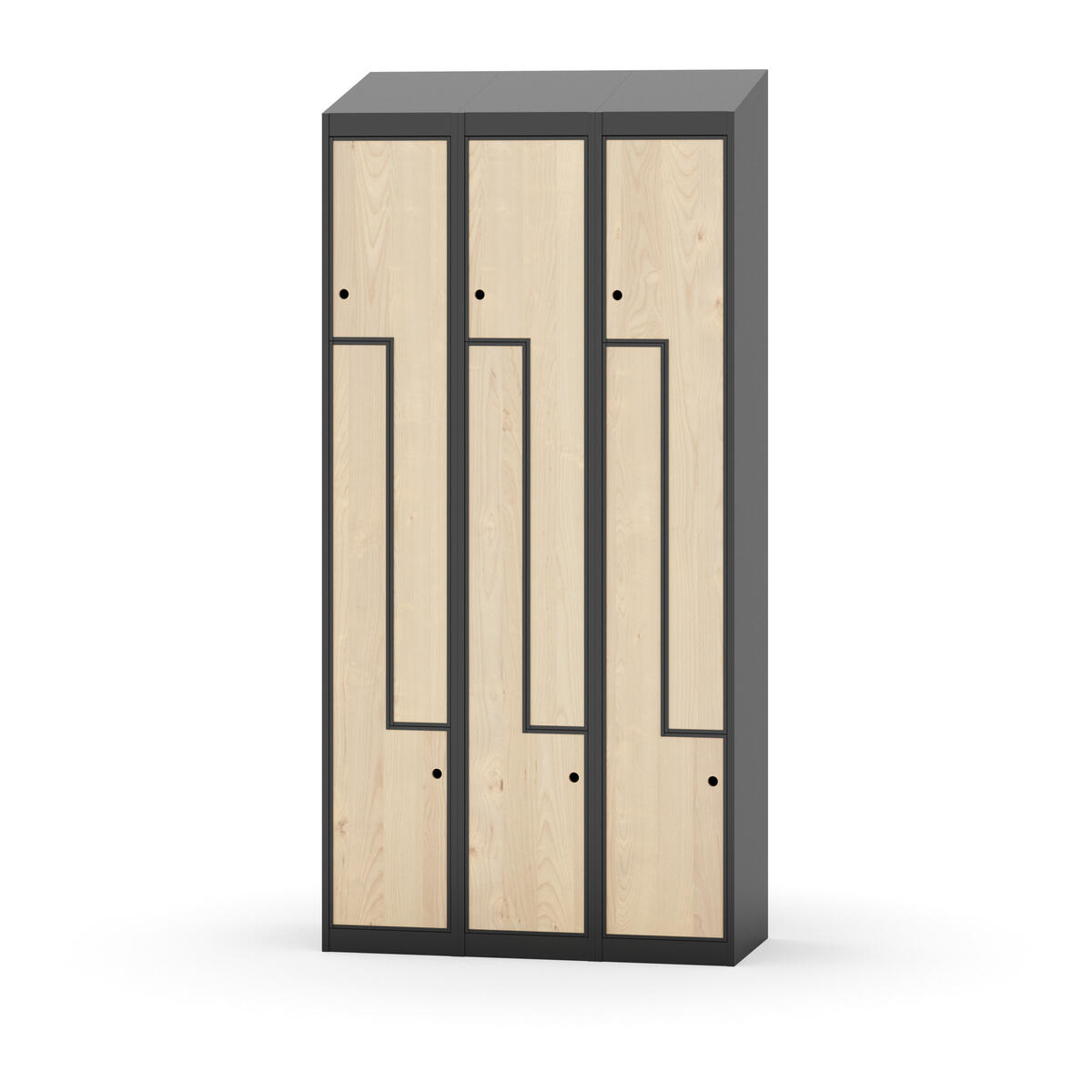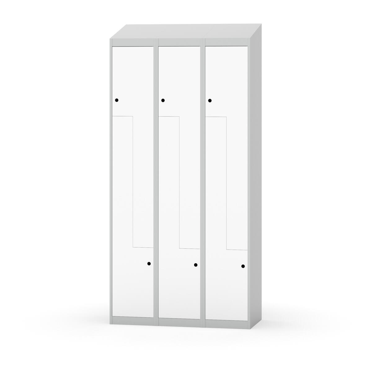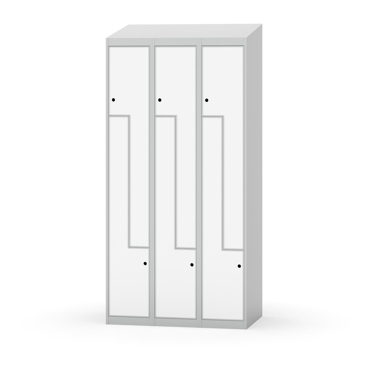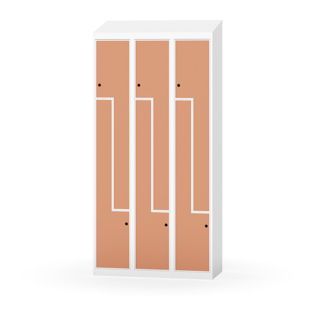 Klädskåp med helsvetsad stomme. Välj mellan plåt eller laminatdörr. Plåtdörren är försedd med dörrstopp i stål och infälld förstärkning kring låshålet. Laminatdörr infälld i stålram försedd med dörrstopp i stål. Dörrar är öppningsbara 90 grader. Inredning: Hyllplan och klädstång med två ankarkrokar. Slät golvyta utan tröskel. Ventilation genom hål i tak-/bottenplåt. Observera att lås och underrede beställs på separata artikelnummer. Lås kommer att vara monterade på skåp vid leverans. Valt underrede monteras på plats.