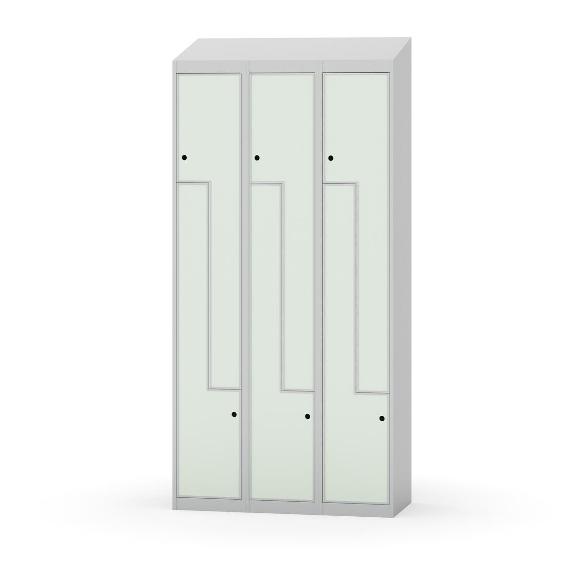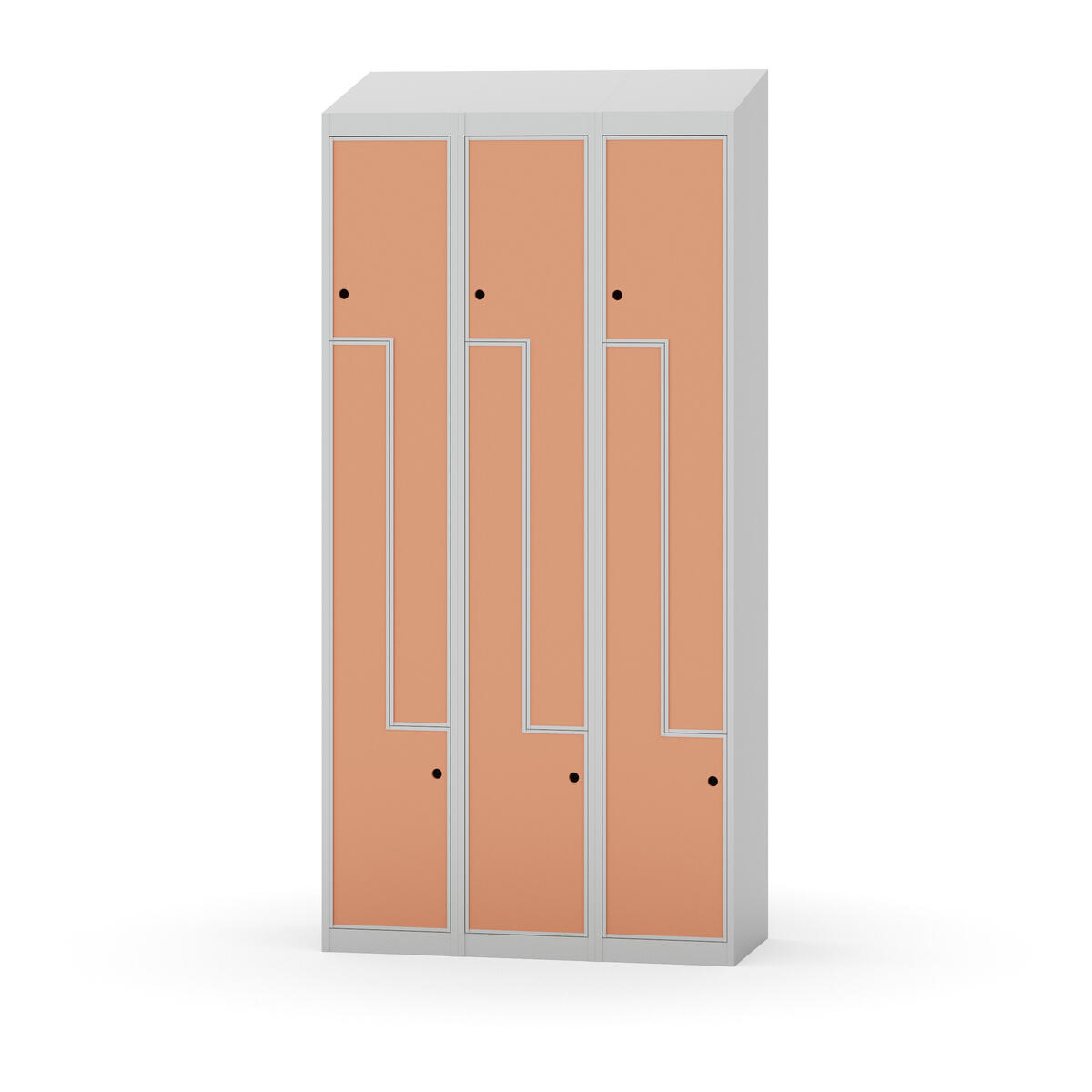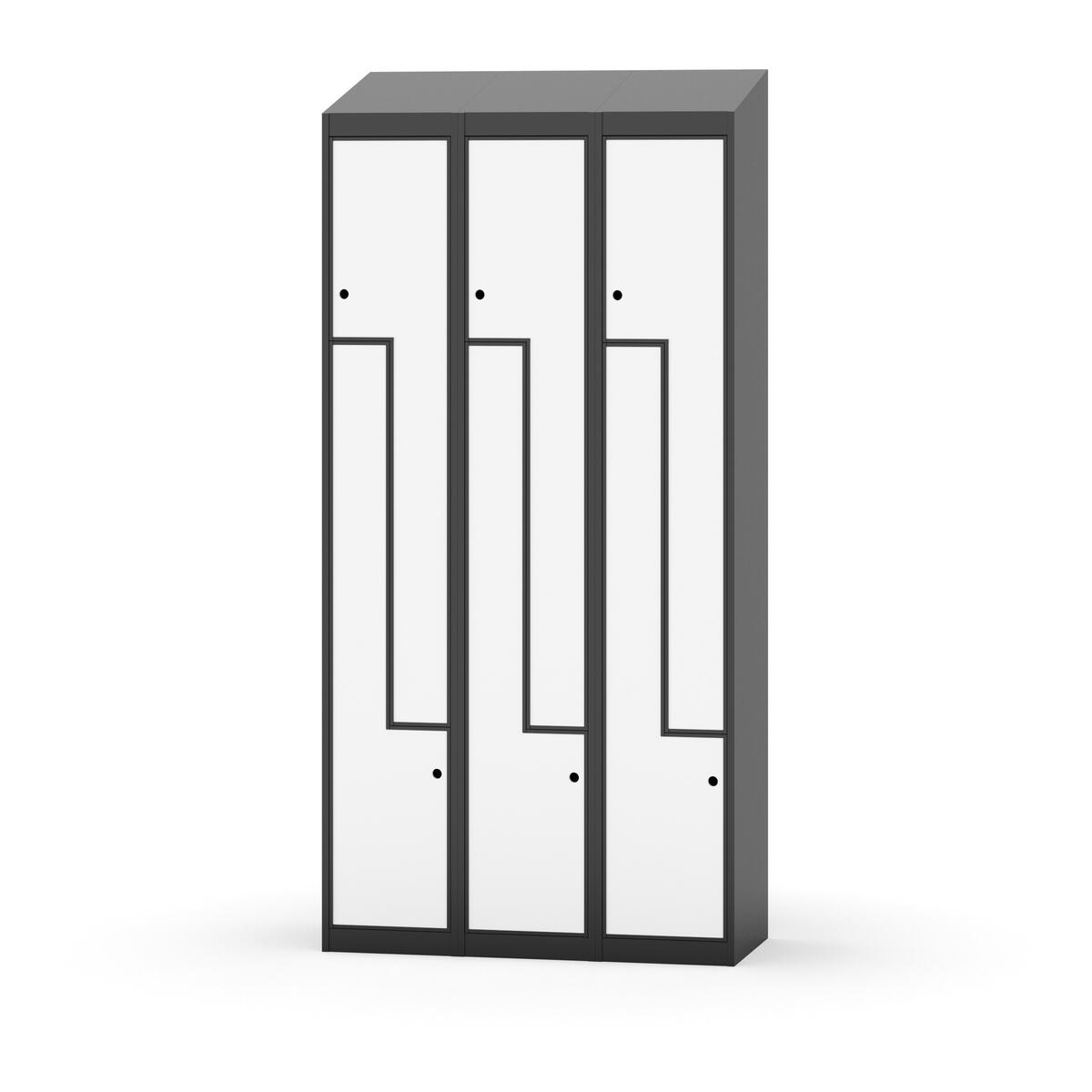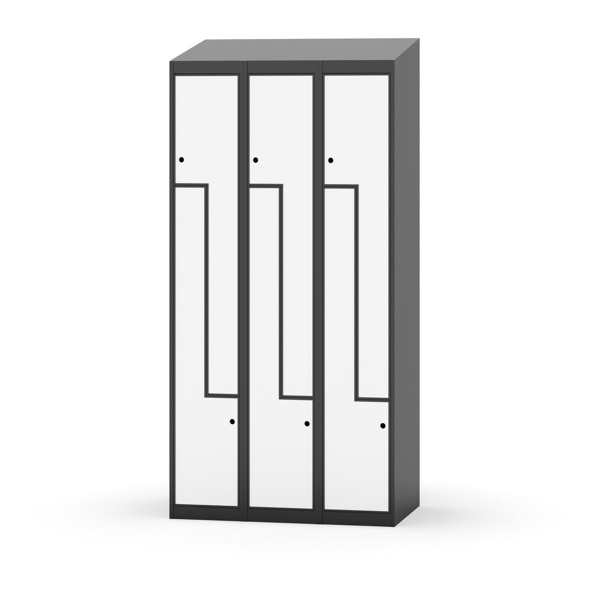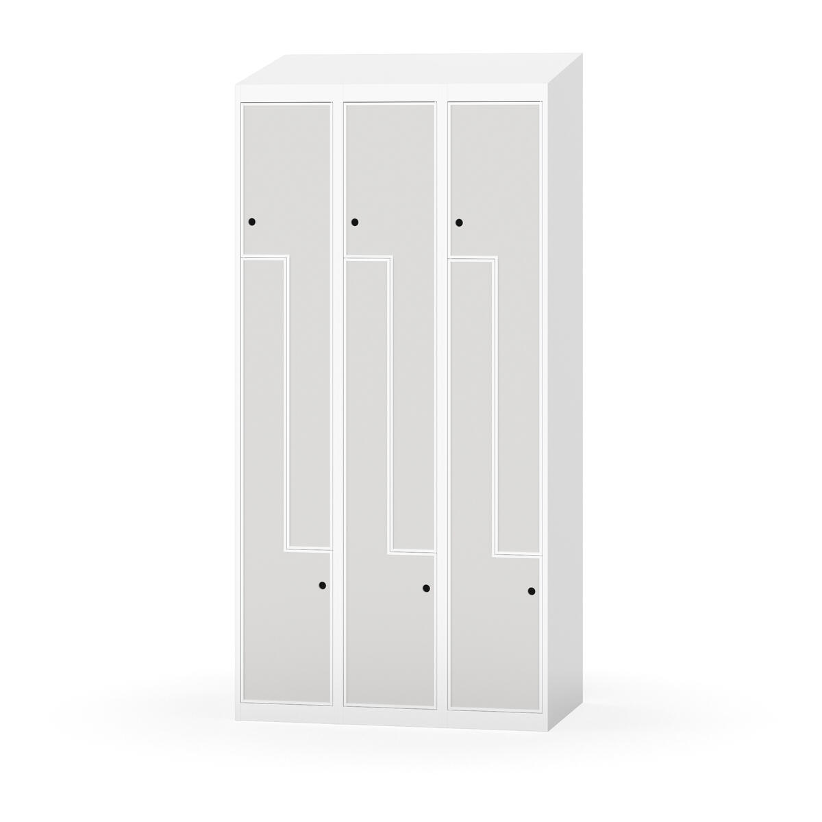 Klädskåp med helsvetsad stomme. Välj mellan plåt eller laminatdörr. Plåtdörren är försedd med dörrstopp i stål och infälld förstärkning kring låshålet. Laminatdörr infälld i stålram försedd med dörrstopp i stål. Dörrar är öppningsbara 90 grader. Inredning: Hyllplan och klädstång med två ankarkrokar. Slät golvyta utan tröskel. Ventilation genom hål i tak-/bottenplåt. Observera att lås och underrede beställs på separata artikelnummer. Lås kommer att vara monterade på skåp vid leverans. Valt underrede monteras på plats.
