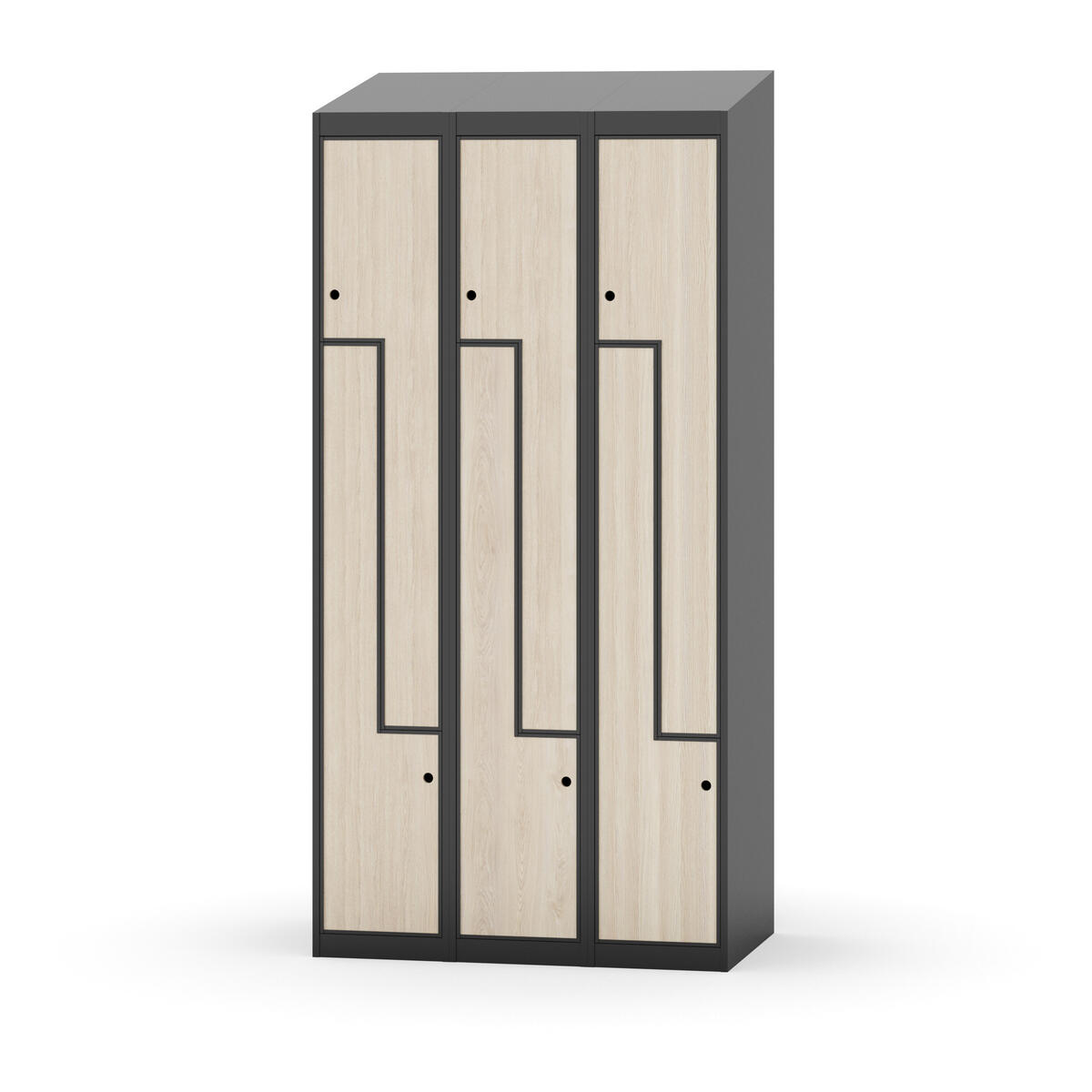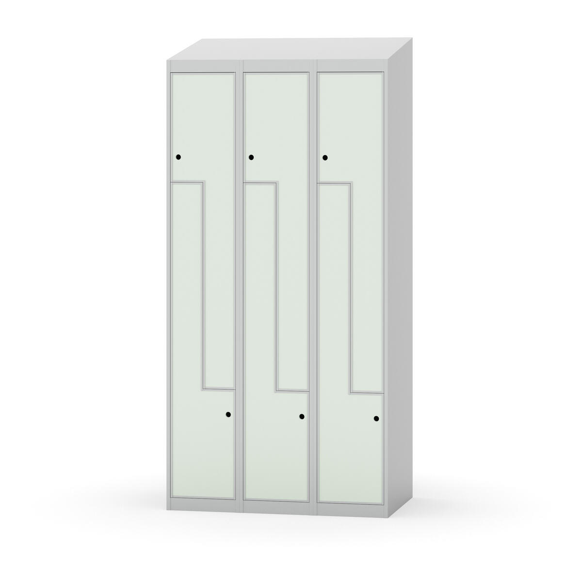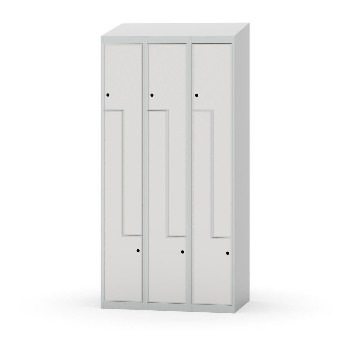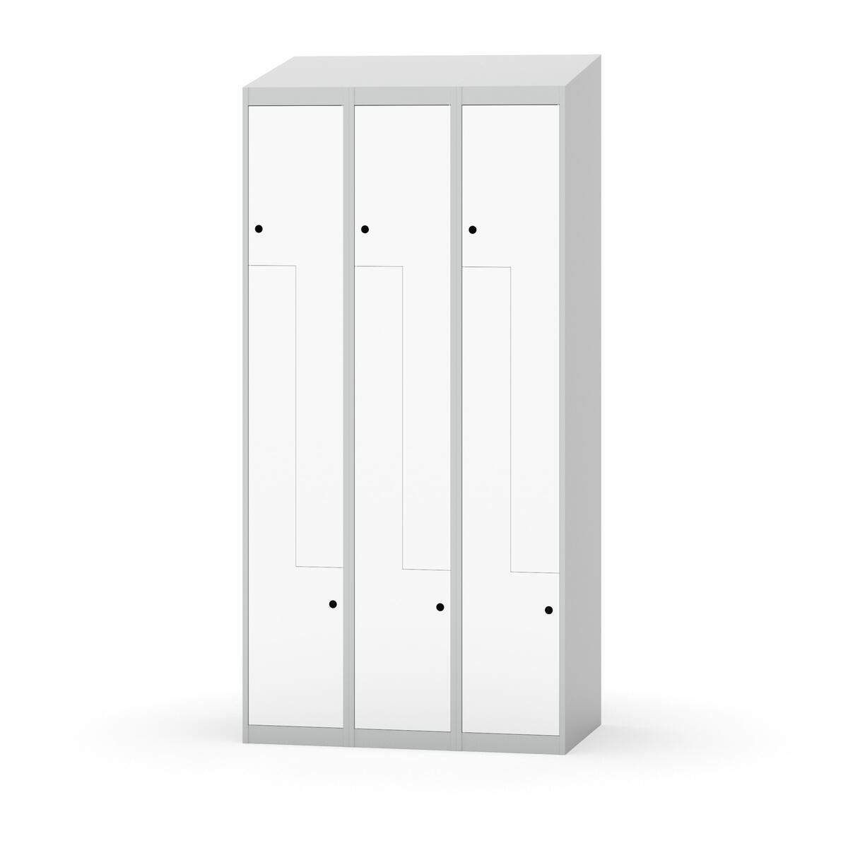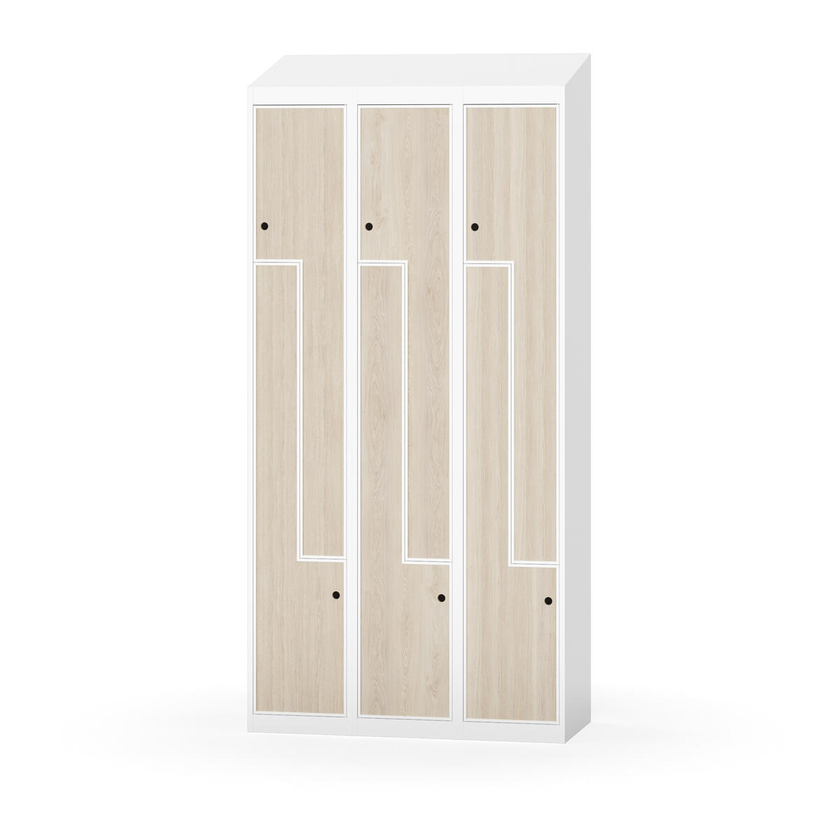 Klädskåp med helsvetsad stomme. Välj mellan plåt eller laminatdörr. Plåtdörren är försedd med dörrstopp i stål och infälld förstärkning kring låshålet. Laminatdörr infälld i stålram försedd med dörrstopp i stål. Dörrar är öppningsbara 90 grader. Inredning: Hyllplan och klädstång med två ankarkrokar. Slät golvyta utan tröskel. Ventilation genom hål i tak-/bottenplåt. Observera att lås och underrede beställs på separata artikelnummer. Lås kommer att vara monterade på skåp vid leverans. Valt underrede monteras på plats.