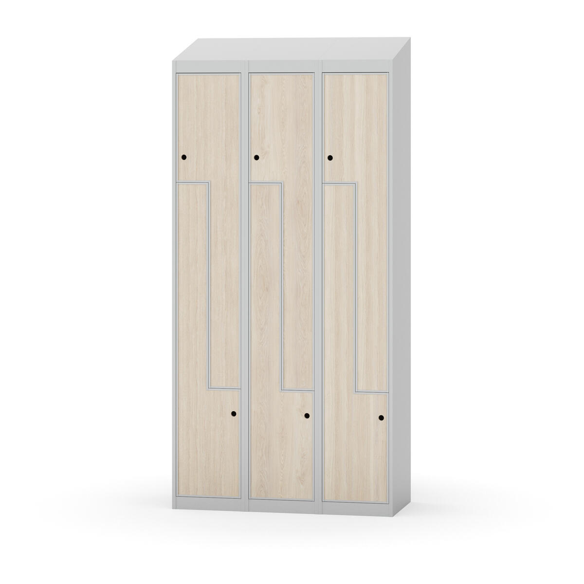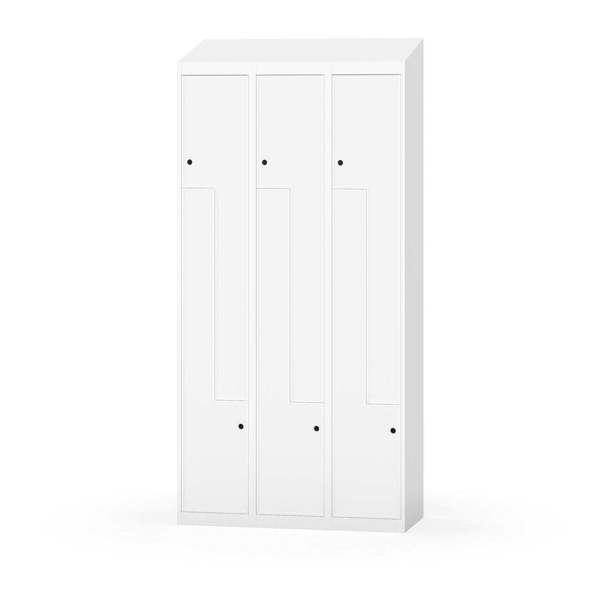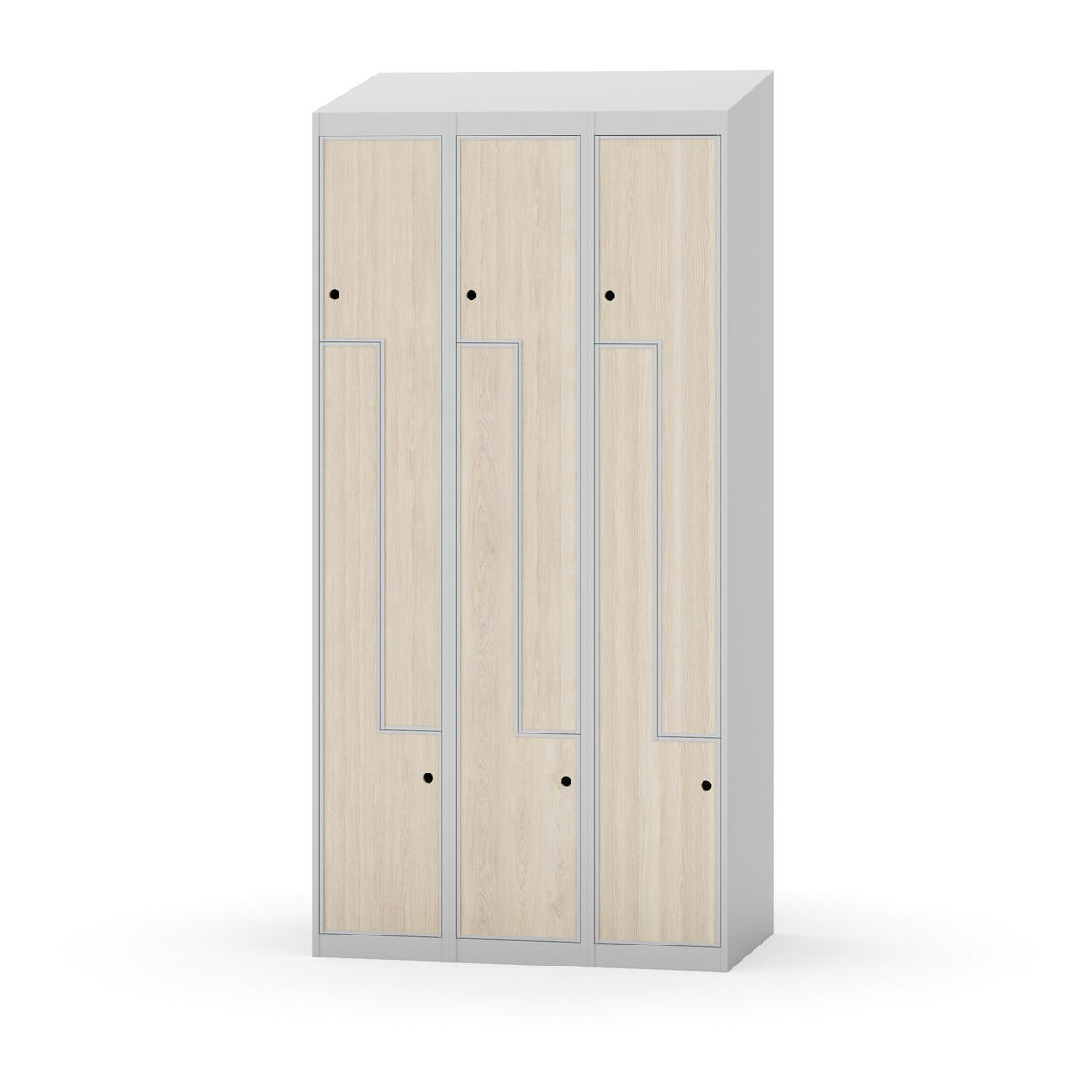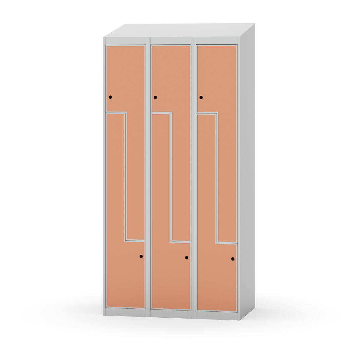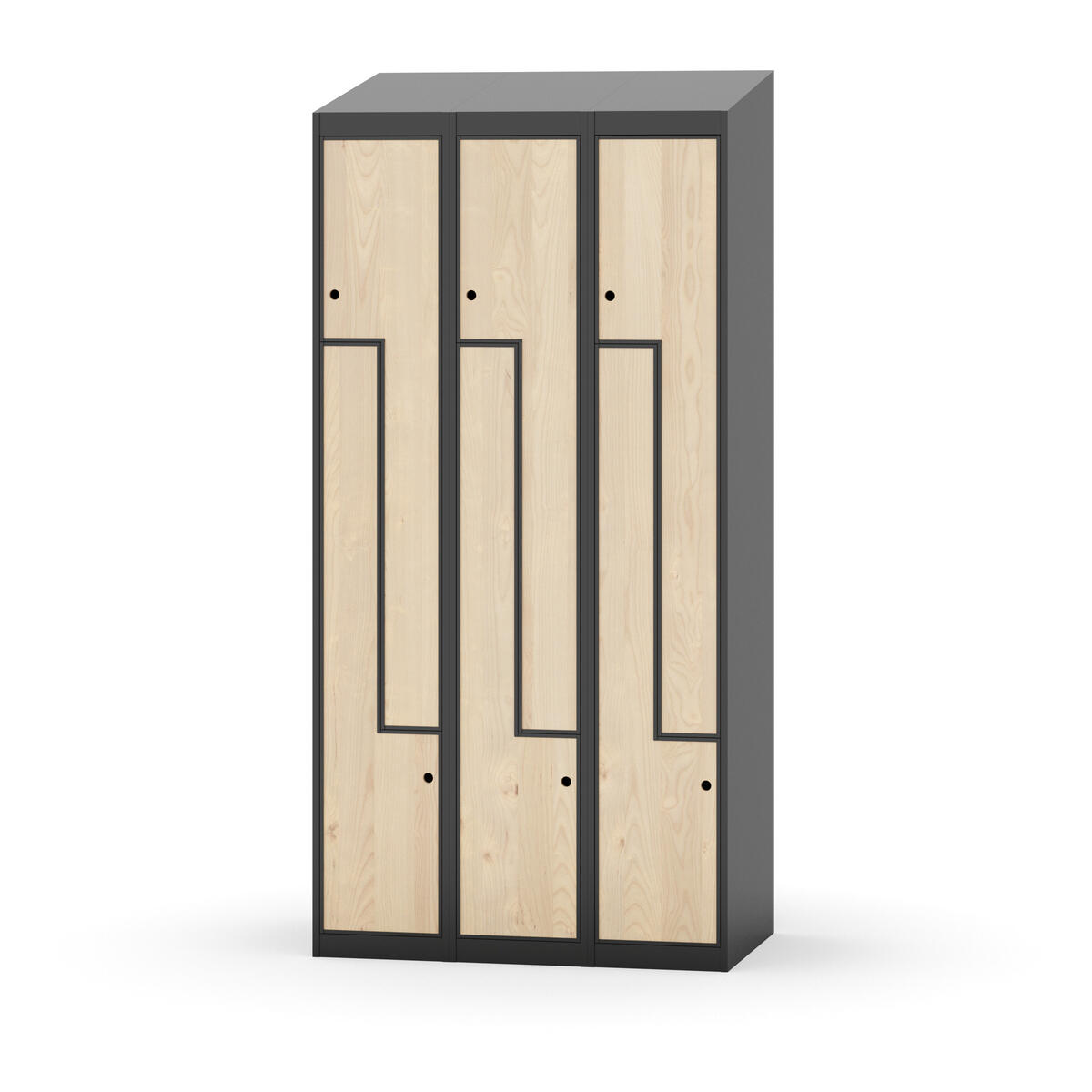 Klädskåp med helsvetsad stomme. Välj mellan plåt eller laminatdörr. Plåtdörren är försedd med dörrstopp i stål och infälld förstärkning kring låshålet. Laminatdörr infälld i stålram försedd med dörrstopp i stål. Dörrar är öppningsbara 90 grader. Inredning: Hyllplan och klädstång med två ankarkrokar. Slät golvyta utan tröskel. Ventilation genom hål i tak-/bottenplåt. Observera att lås och underrede beställs på separata artikelnummer. Lås kommer att vara monterade på skåp vid leverans. Valt underrede monteras på plats.