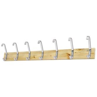Klarlackerad furu med 7 skolkrokar. Galvaniserade krokar.