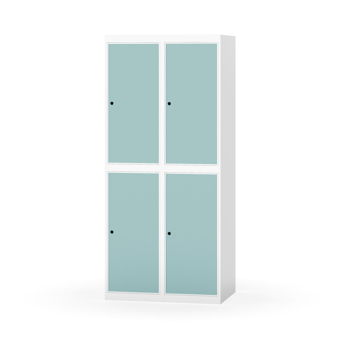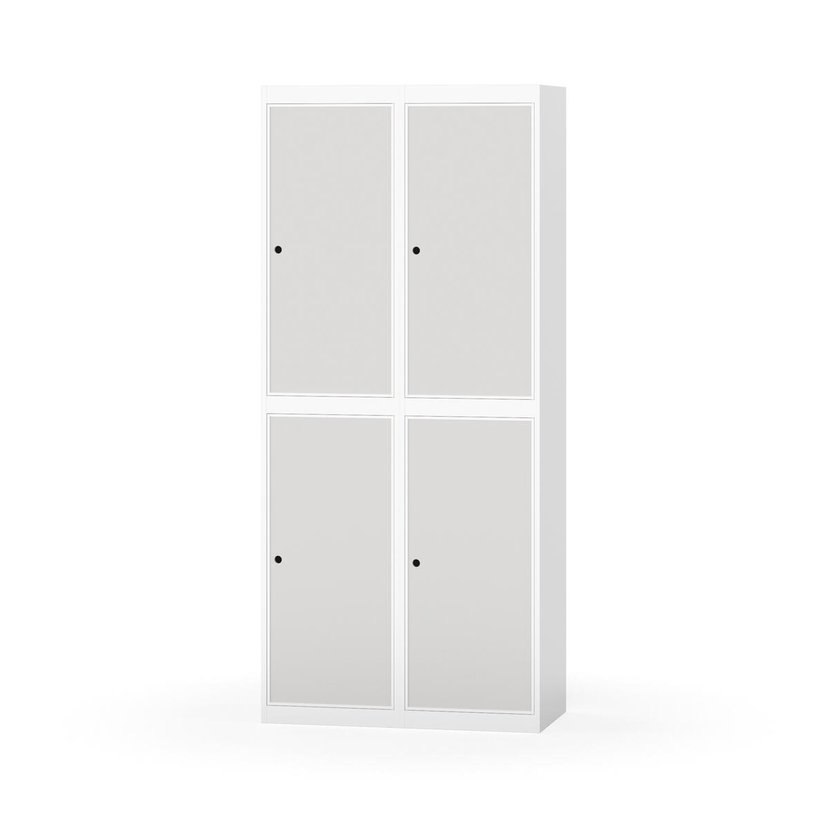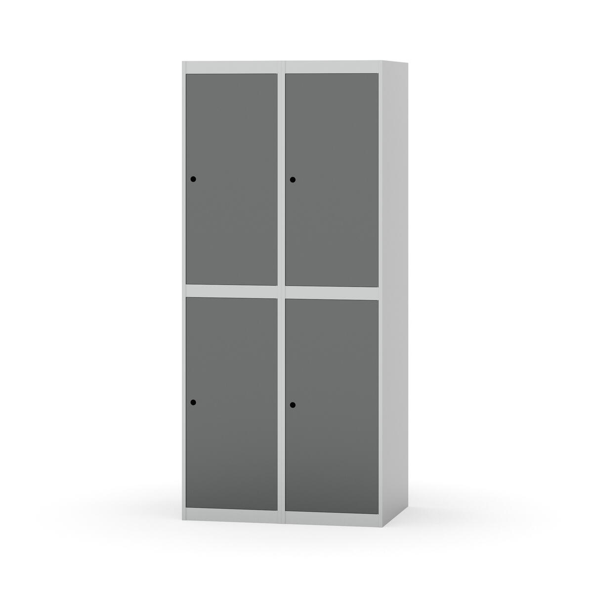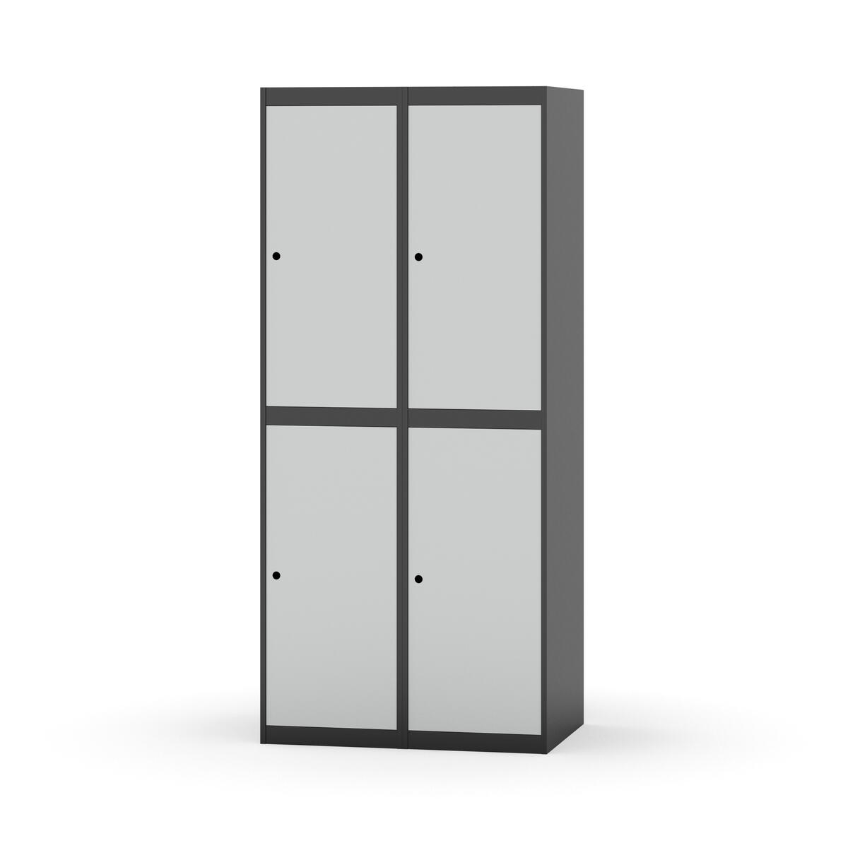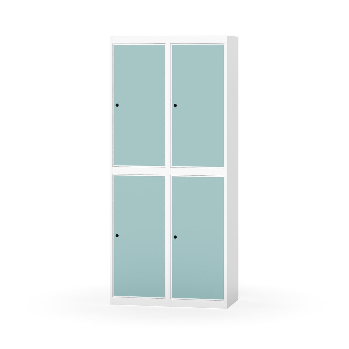 Klädskåp med helsvetsad stomme. Välj mellan plåt eller laminatdörr. Plåtdörren är försedd med dörrstopp i stål och infälld förstärkning kring låshålet. Laminatdörr infälld i stålram försedd med dörrstopp i stål. Dörrar är öppningsbara 90 grader. Inredning: Hyllplan och klädstång med två ankarkrokar. Slät golvyta utan tröskel. Ventilation genom hål i tak-/bottenplåt. Observera att lås och underrede beställs på separata artikelnummer. Lås kommer att vara monterade på skåp vid leverans. Valt underrede monteras på plats.
