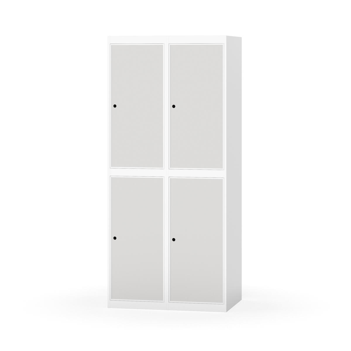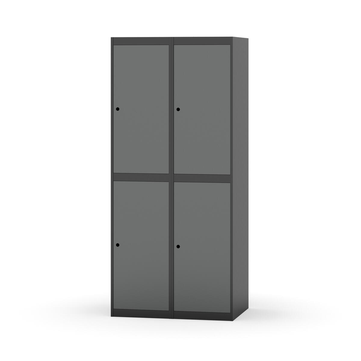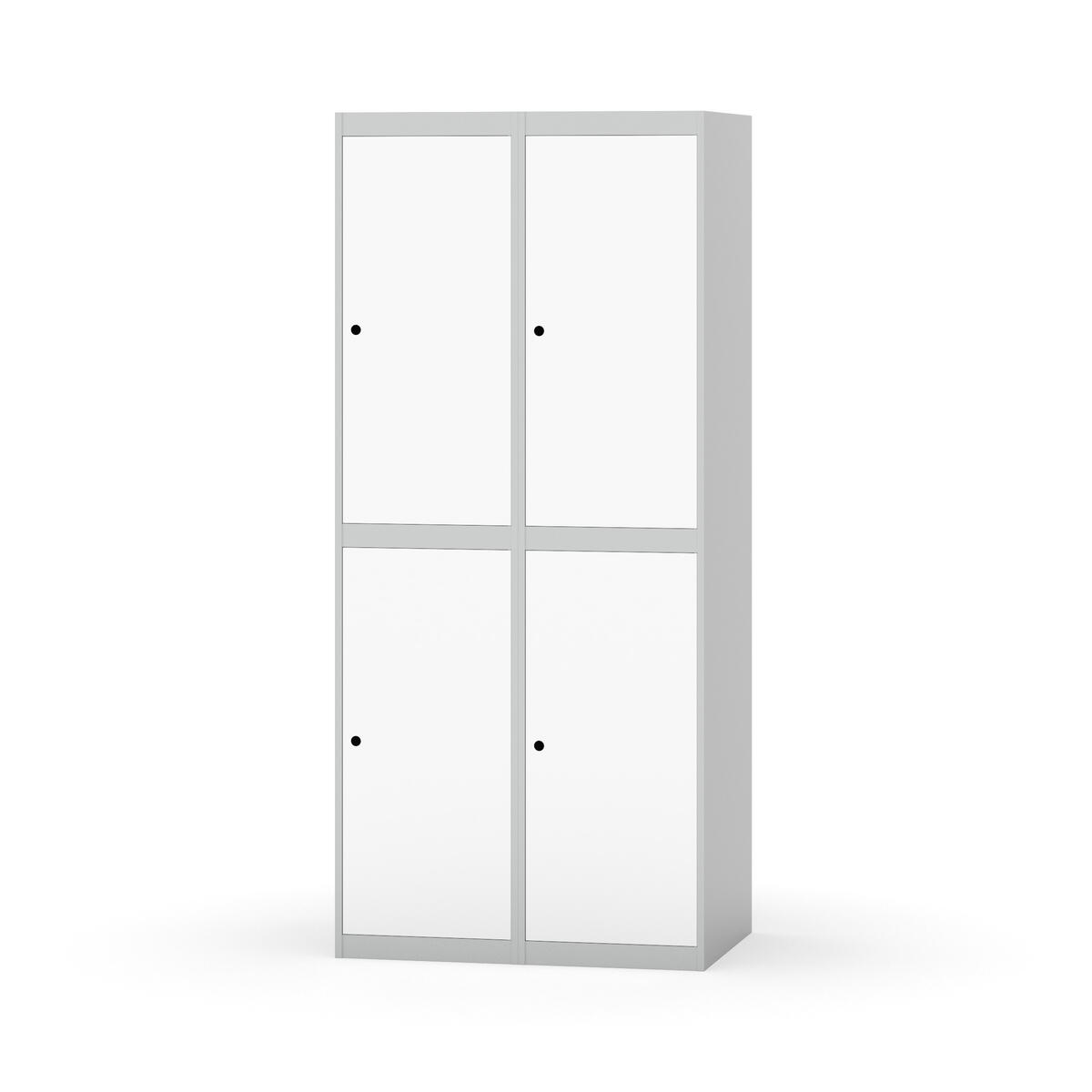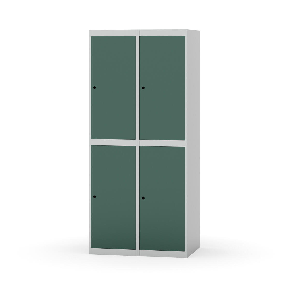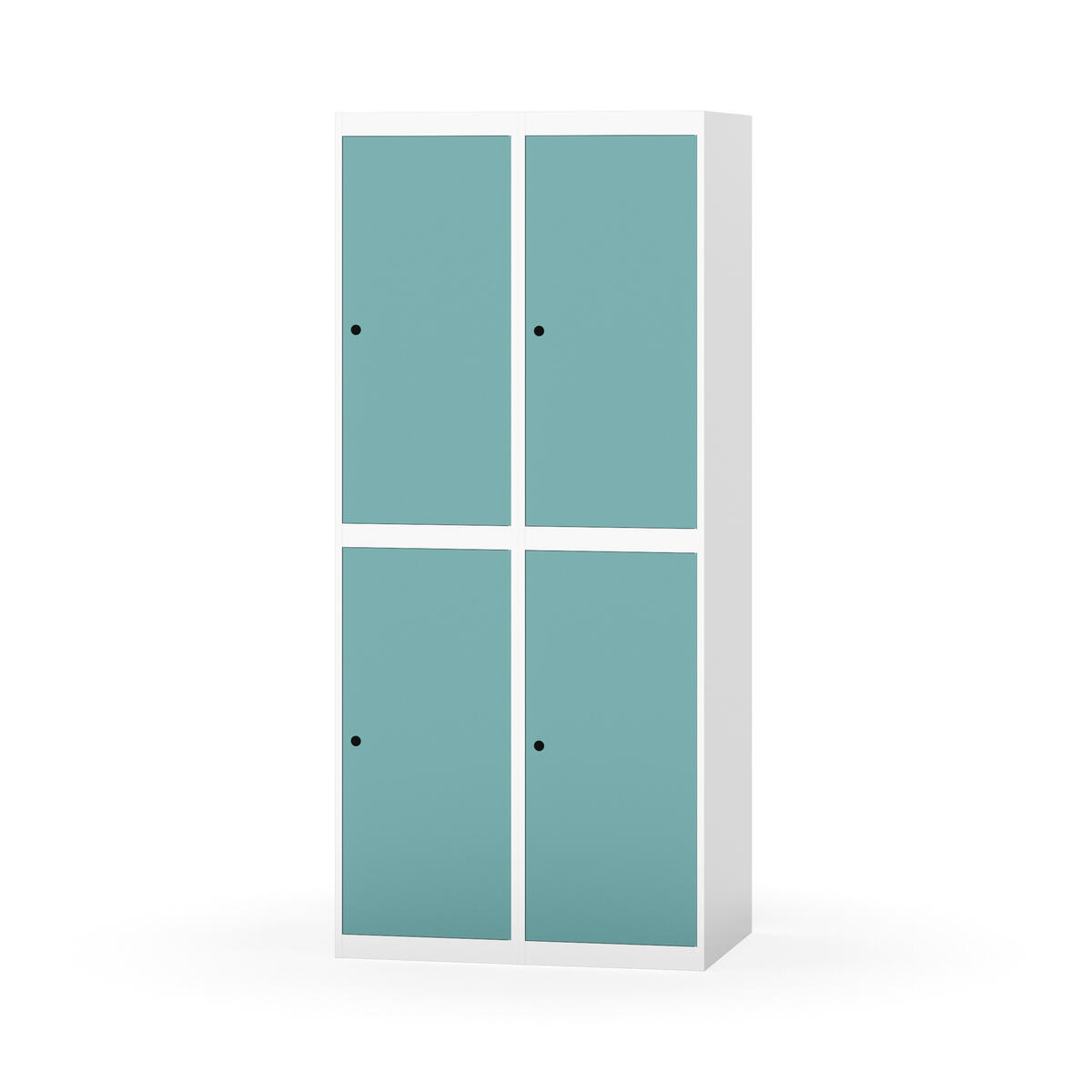 Klädskåp med helsvetsad stomme. Välj mellan plåt eller laminatdörr. Plåtdörren är försedd med dörrstopp i stål och infälld förstärkning kring låshålet. Laminatdörr infälld i stålram försedd med dörrstopp i stål. Dörrar är öppningsbara 90 grader. Inredning: Hyllplan och klädstång med två ankarkrokar. Slät golvyta utan tröskel. Ventilation genom hål i tak-/bottenplåt. Observera att lås och underrede beställs på separata artikelnummer. Lås kommer att vara monterade på skåp vid leverans. Valt underrede monteras på plats.