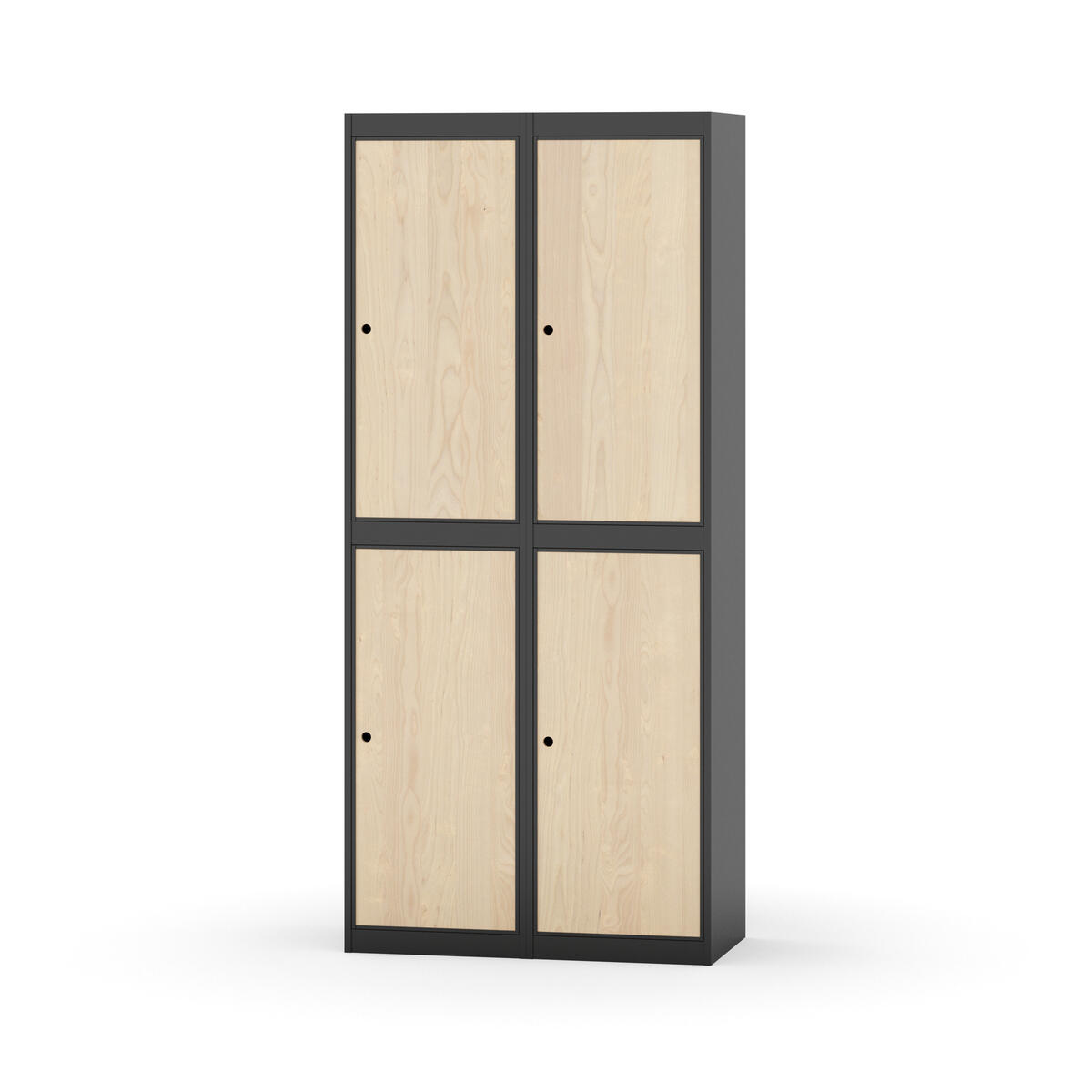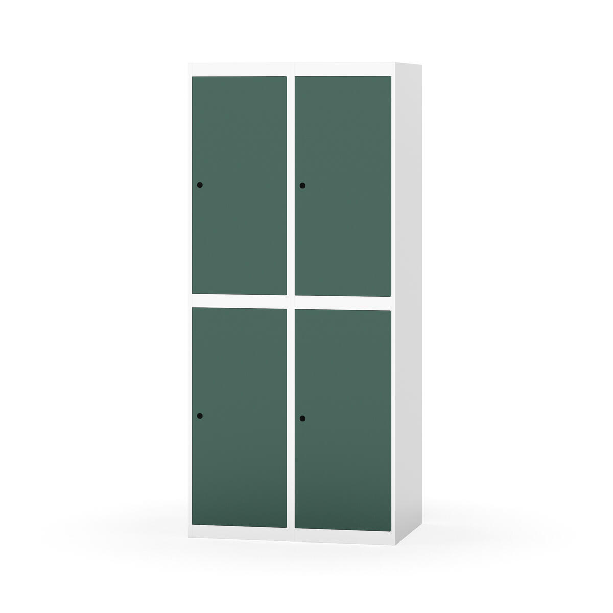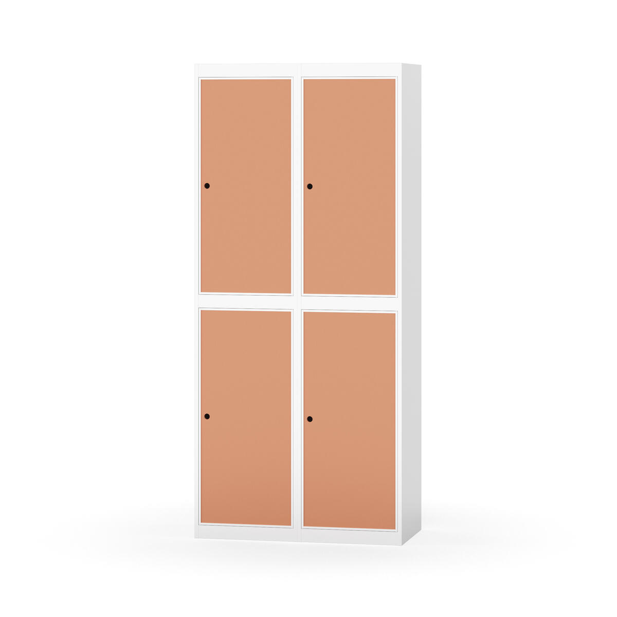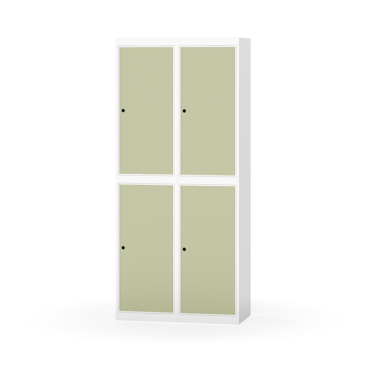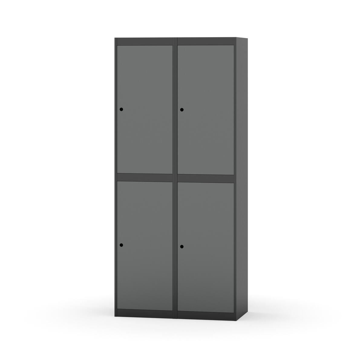Klädskåp med helsvetsad stomme. Välj mellan plåt eller laminatdörr. Plåtdörren är försedd med dörrstopp i stål och infälld förstärkning kring låshålet. Laminatdörr infälld i stålram försedd med dörrstopp i stål. Dörrar är öppningsbara 90 grader. Inredning: Hyllplan och klädstång med två ankarkrokar. Slät golvyta utan tröskel. Ventilation genom hål i tak-/bottenplåt. Observera att lås och underrede beställs på separata artikelnummer. Lås kommer att vara monterade på skåp vid leverans. Valt underrede monteras på plats.