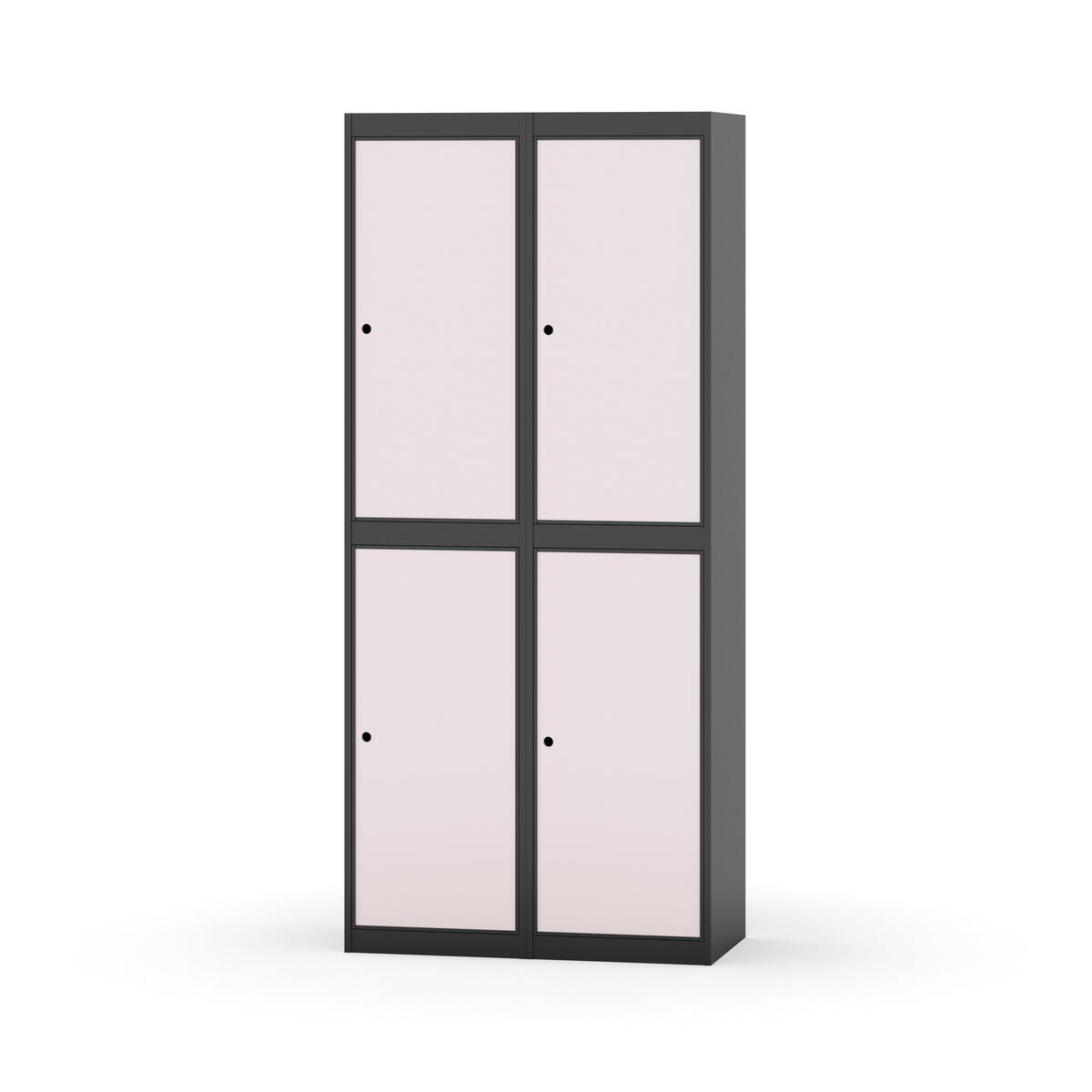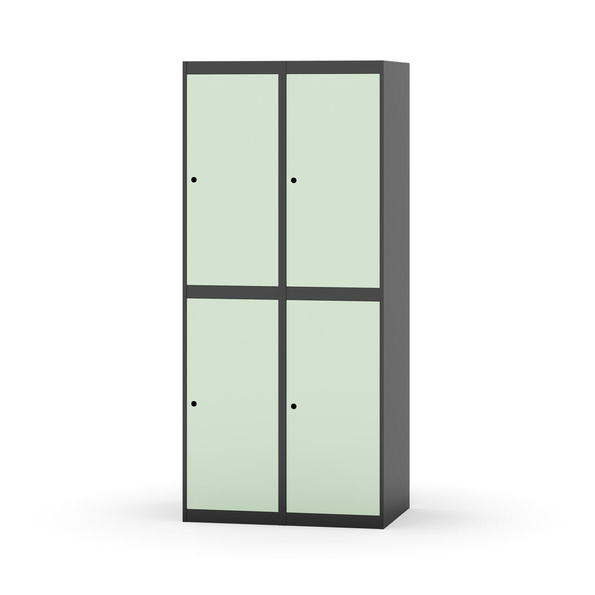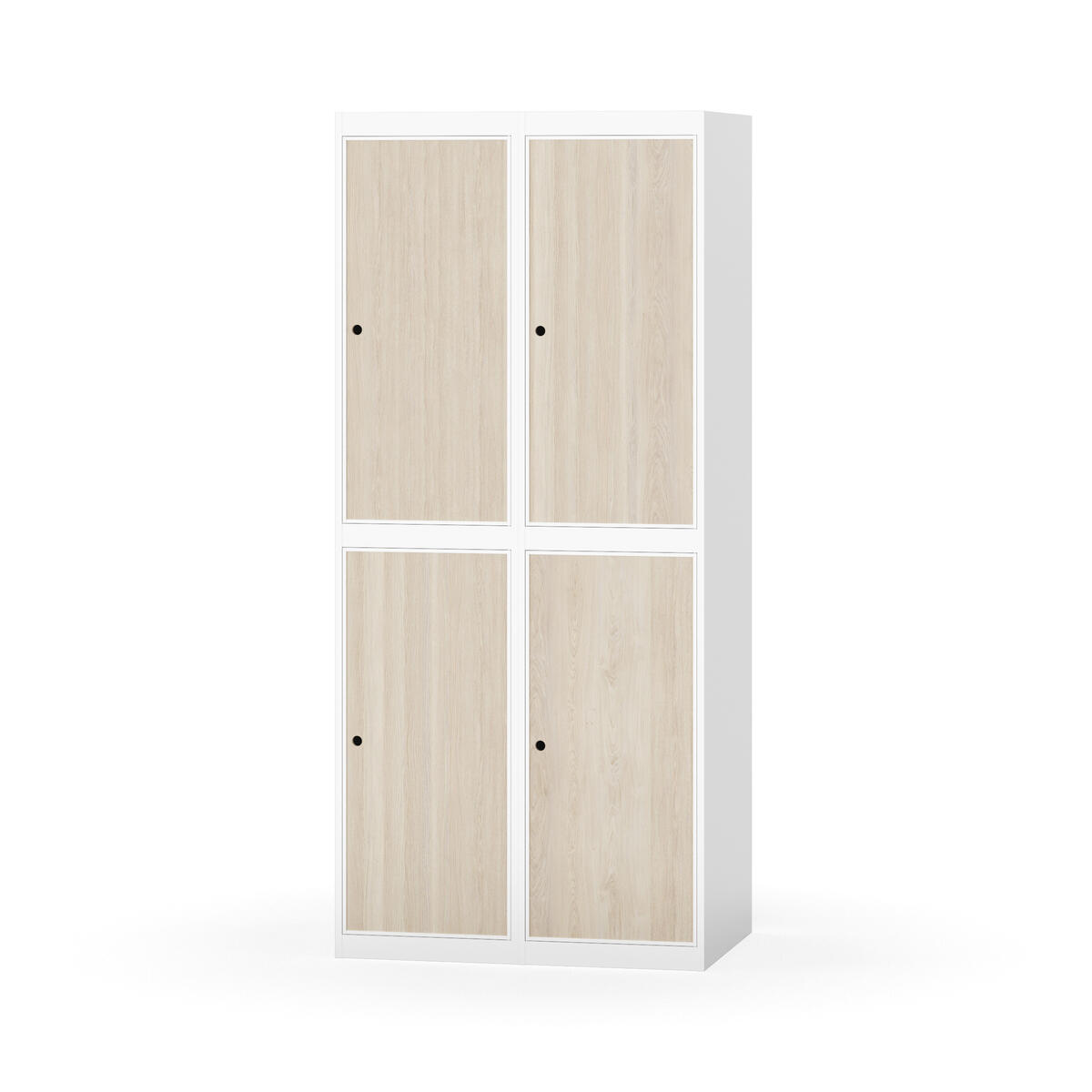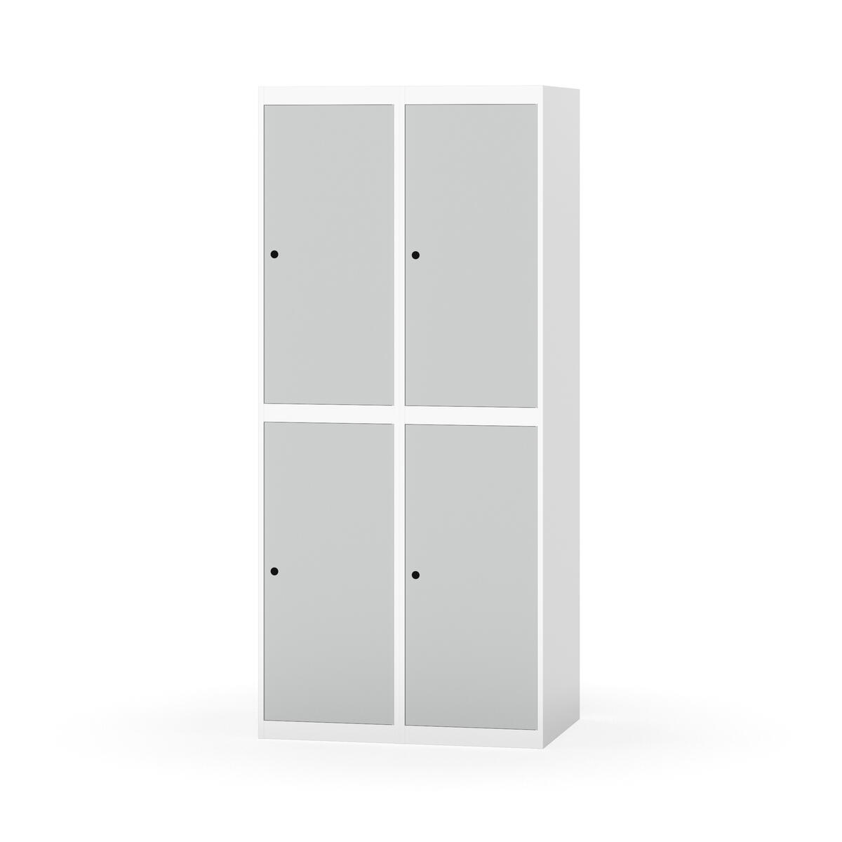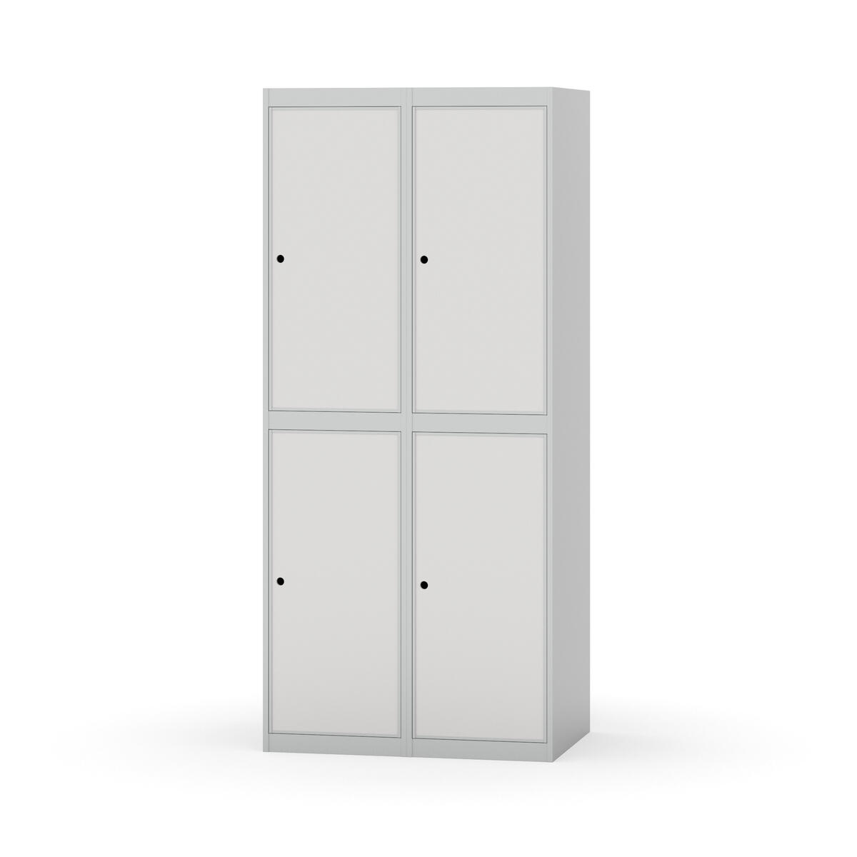 Klädskåp med helsvetsad stomme. Välj mellan plåt eller laminatdörr. Plåtdörren är försedd med dörrstopp i stål och infälld förstärkning kring låshålet. Laminatdörr infälld i stålram försedd med dörrstopp i stål. Dörrar är öppningsbara 90 grader. Inredning: Hyllplan och klädstång med två ankarkrokar. Slät golvyta utan tröskel. Ventilation genom hål i tak-/bottenplåt. Observera att lås och underrede beställs på separata artikelnummer. Lås kommer att vara monterade på skåp vid leverans. Valt underrede monteras på plats.