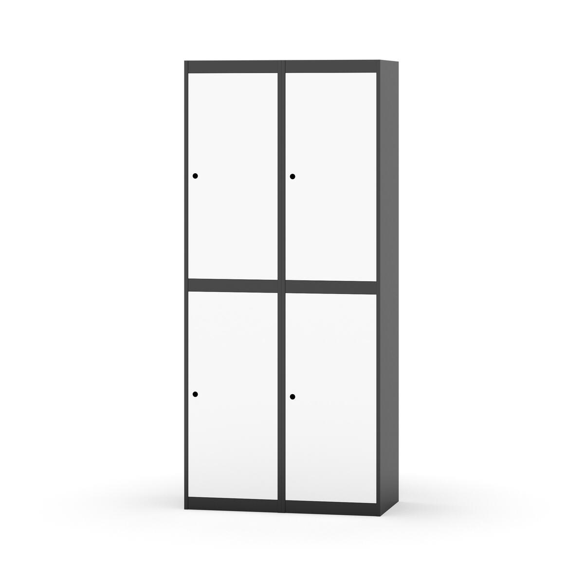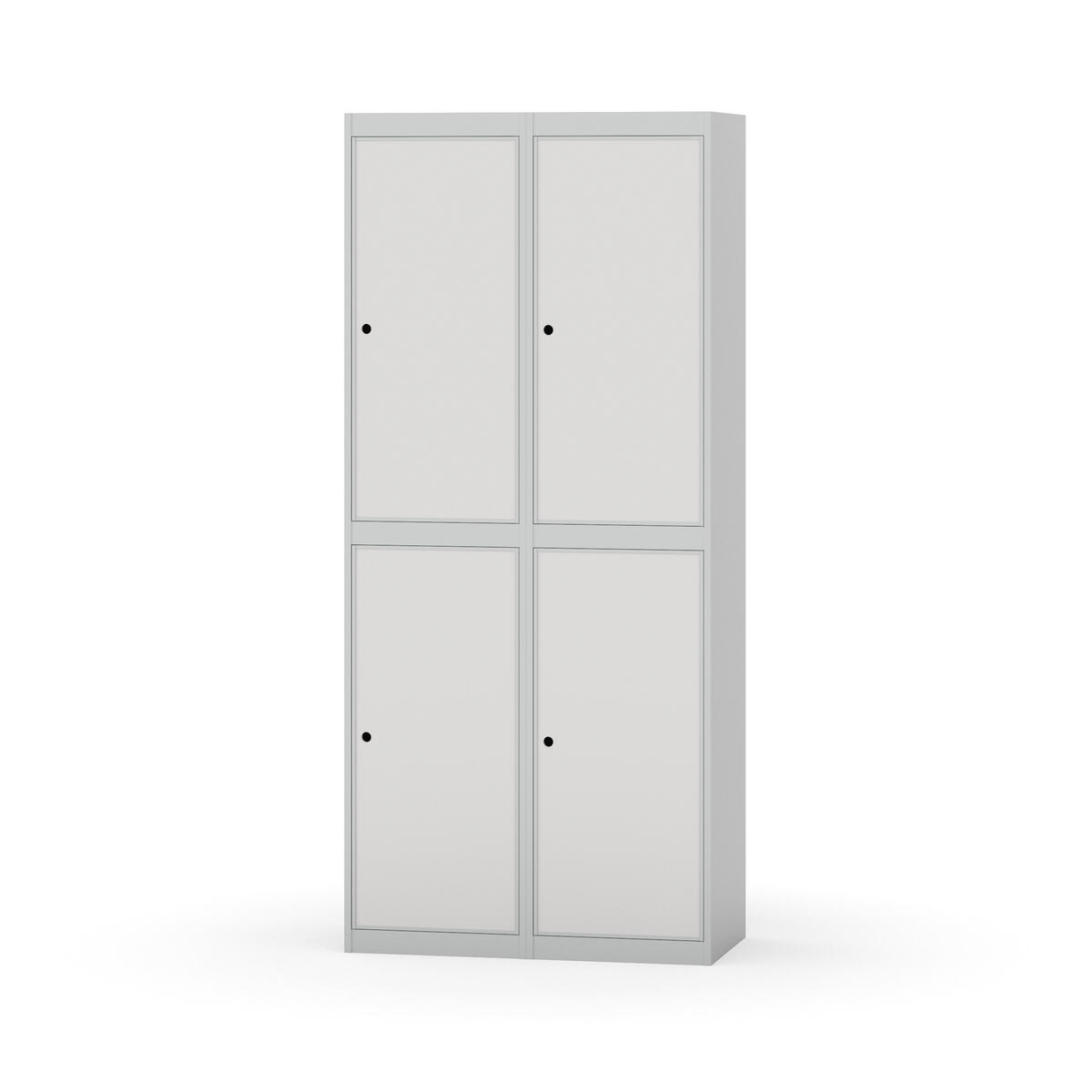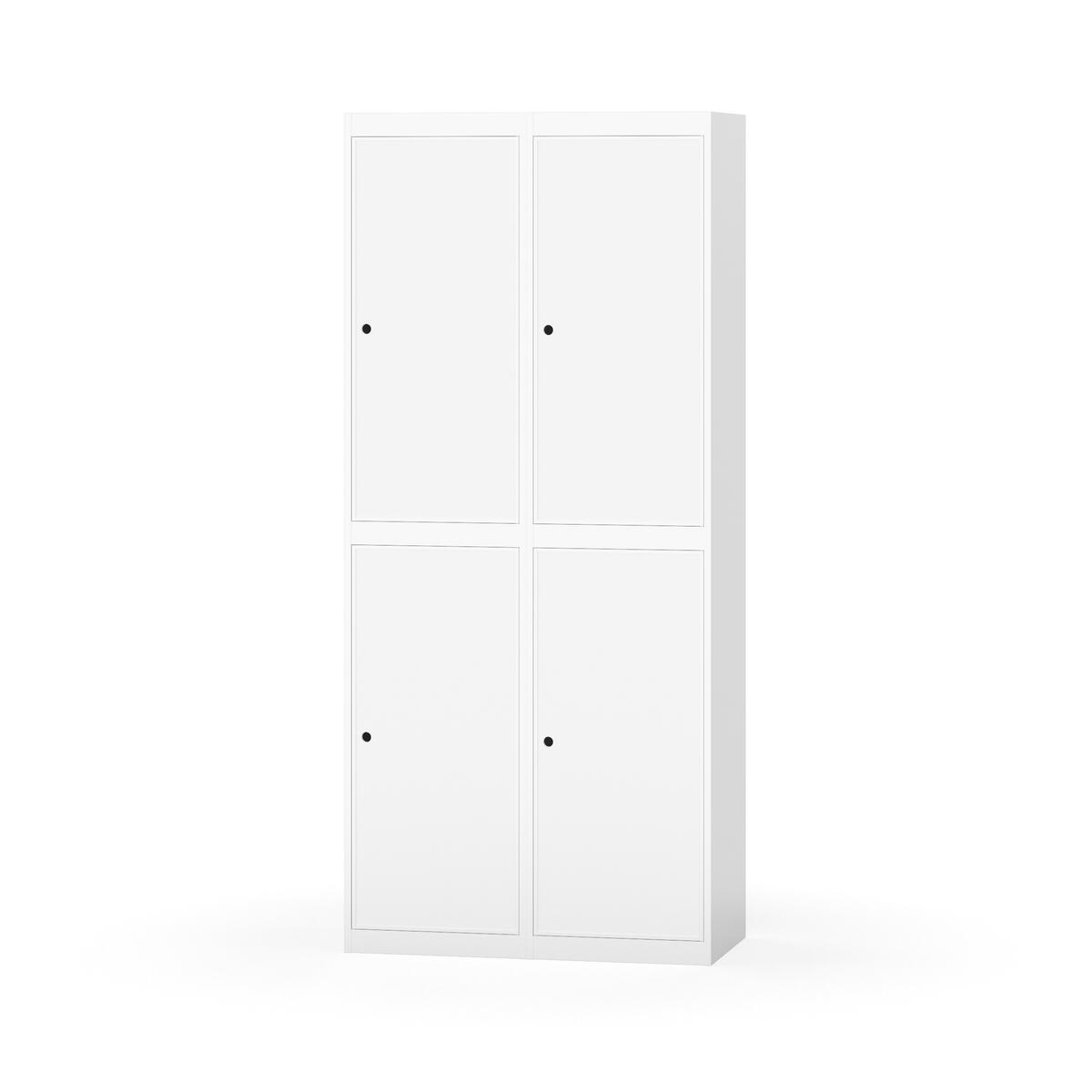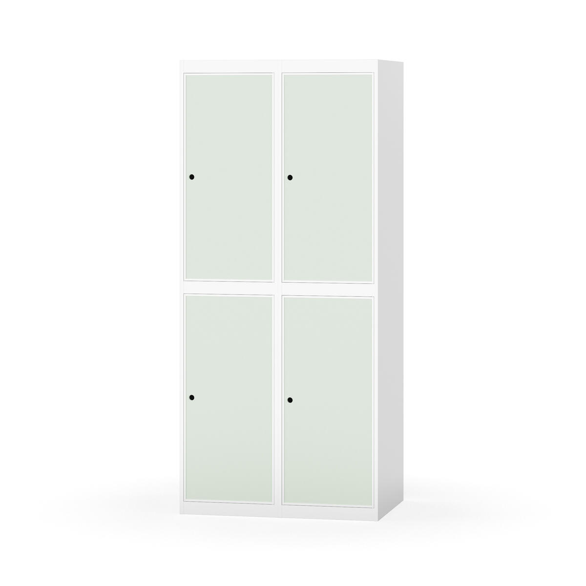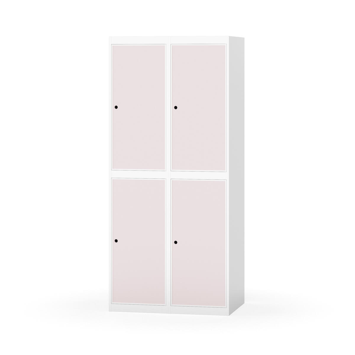 Klädskåp med helsvetsad stomme. Välj mellan plåt eller laminatdörr. Plåtdörren är försedd med dörrstopp i stål och infälld förstärkning kring låshålet. Laminatdörr infälld i stålram försedd med dörrstopp i stål. Dörrar är öppningsbara 90 grader. Inredning: Hyllplan och klädstång med två ankarkrokar. Slät golvyta utan tröskel. Ventilation genom hål i tak-/bottenplåt. Observera att lås och underrede beställs på separata artikelnummer. Lås kommer att vara monterade på skåp vid leverans. Valt underrede monteras på plats.