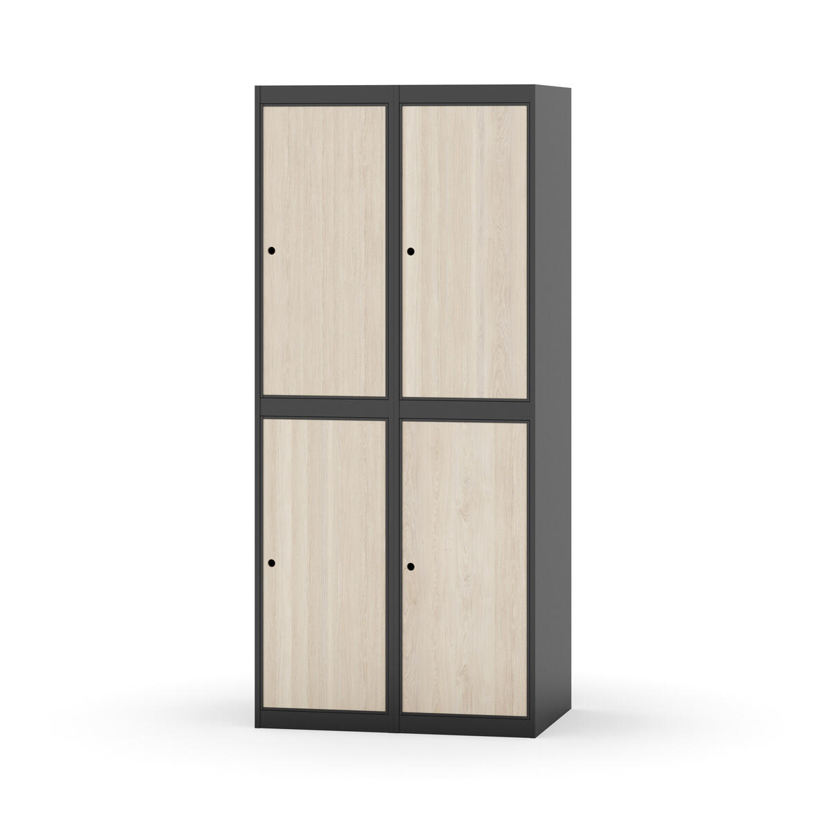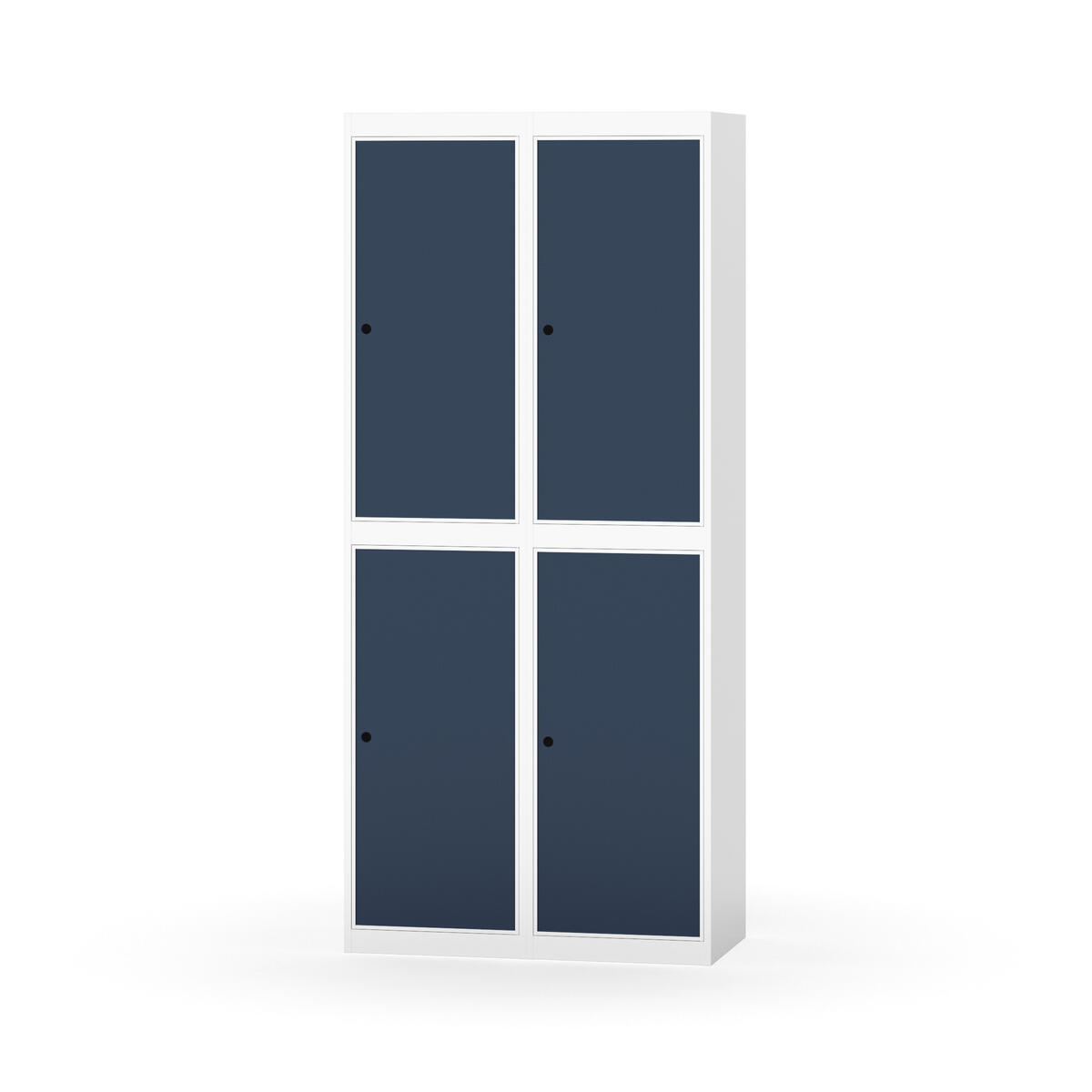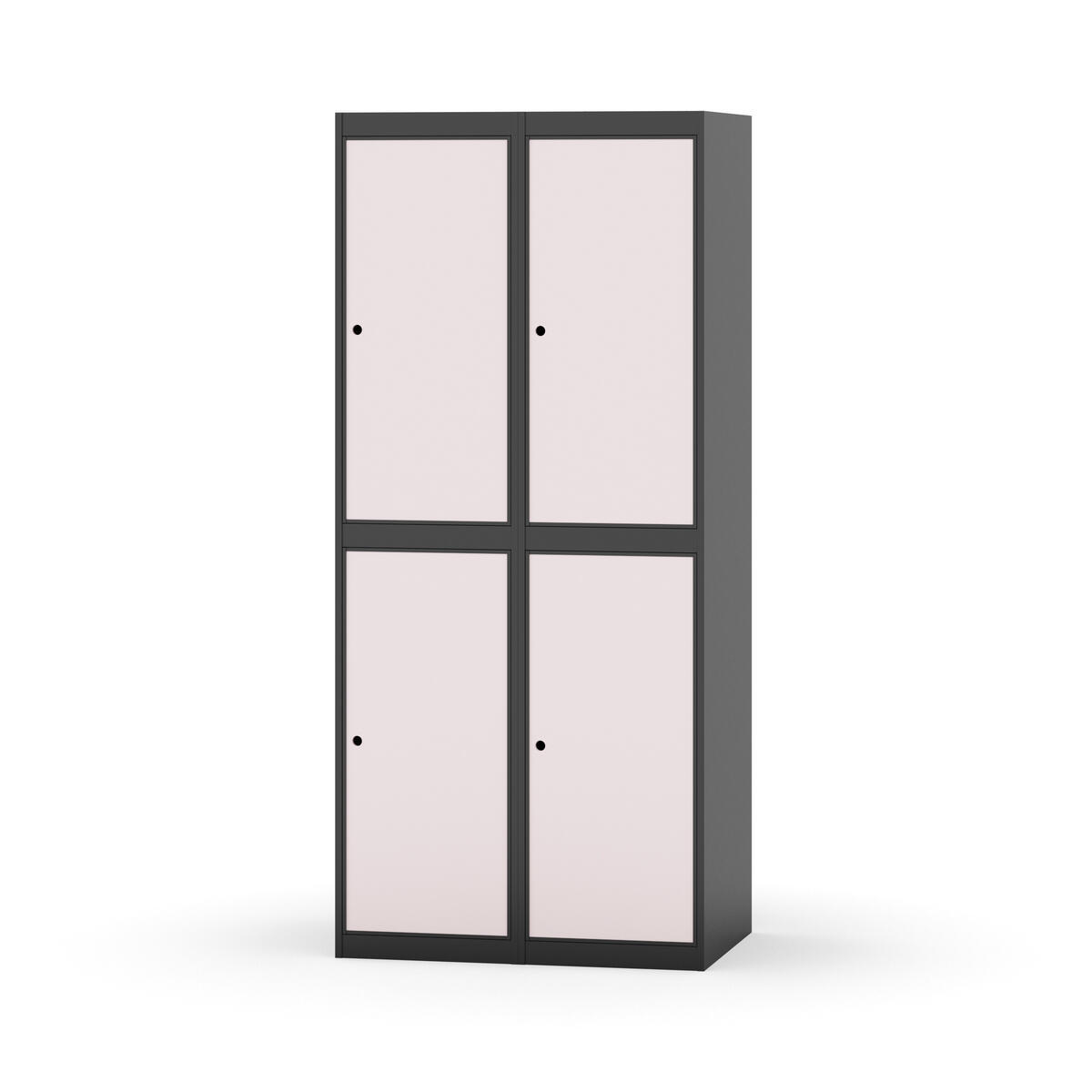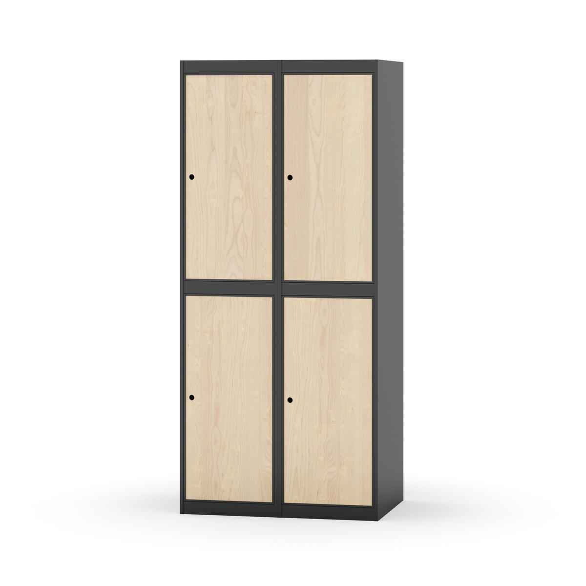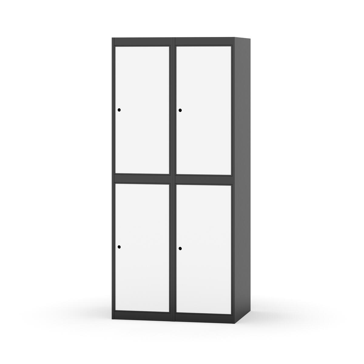 Klädskåp med helsvetsad stomme. Välj mellan plåt eller laminatdörr. Plåtdörren är försedd med dörrstopp i stål och infälld förstärkning kring låshålet. Laminatdörr infälld i stålram försedd med dörrstopp i stål. Dörrar är öppningsbara 90 grader. Inredning: Hyllplan och klädstång med två ankarkrokar. Slät golvyta utan tröskel. Ventilation genom hål i tak-/bottenplåt. Observera att lås och underrede beställs på separata artikelnummer. Lås kommer att vara monterade på skåp vid leverans. Valt underrede monteras på plats.