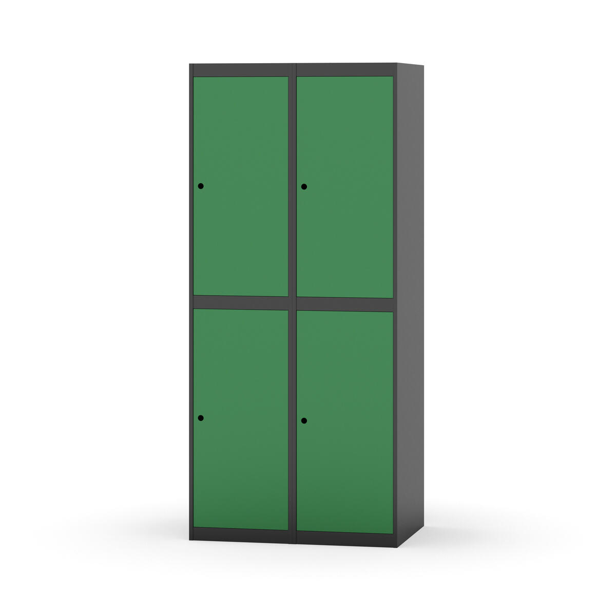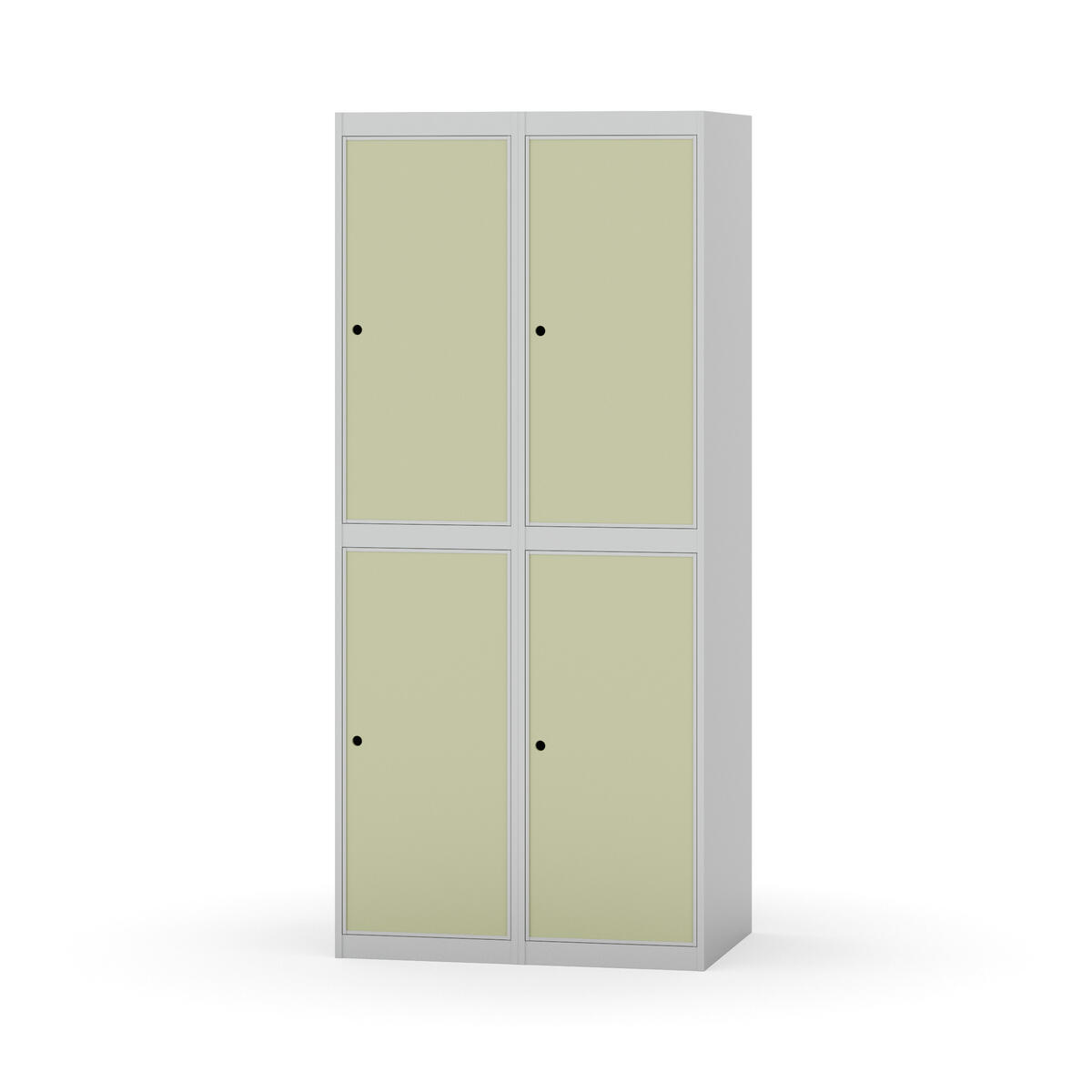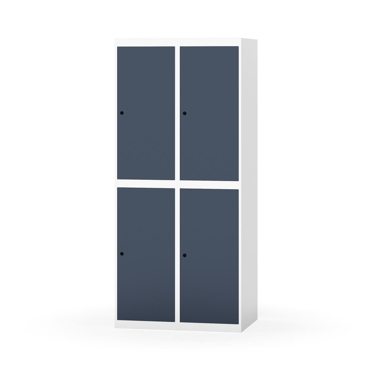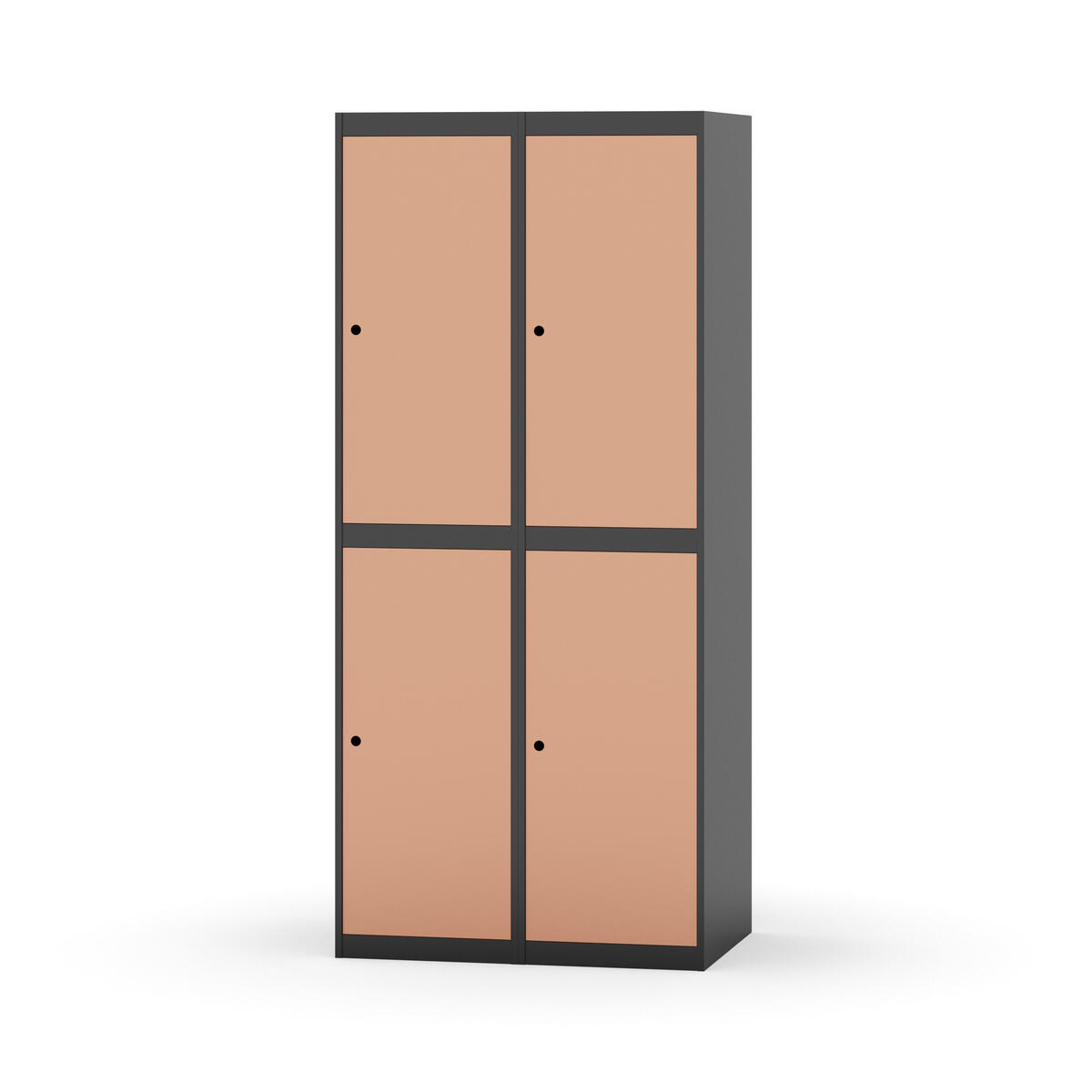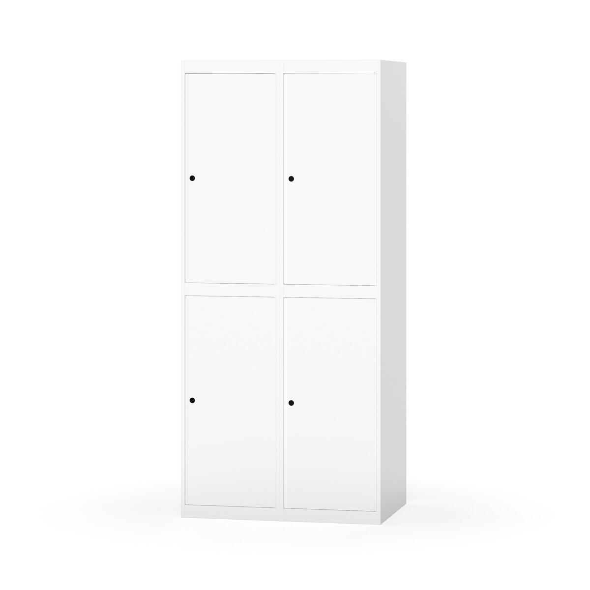 Klädskåp med helsvetsad stomme. Välj mellan plåt eller laminatdörr. Plåtdörren är försedd med dörrstopp i stål och infälld förstärkning kring låshålet. Laminatdörr infälld i stålram försedd med dörrstopp i stål. Dörrar är öppningsbara 90 grader. Inredning: Hyllplan och klädstång med två ankarkrokar. Slät golvyta utan tröskel. Ventilation genom hål i tak-/bottenplåt. Observera att lås och underrede beställs på separata artikelnummer. Lås kommer att vara monterade på skåp vid leverans. Valt underrede monteras på plats.