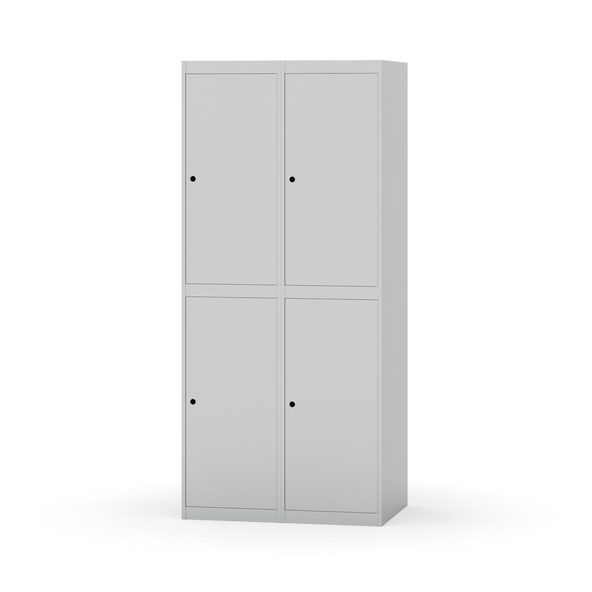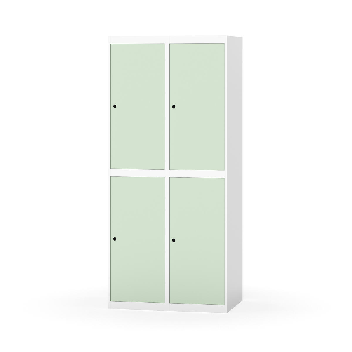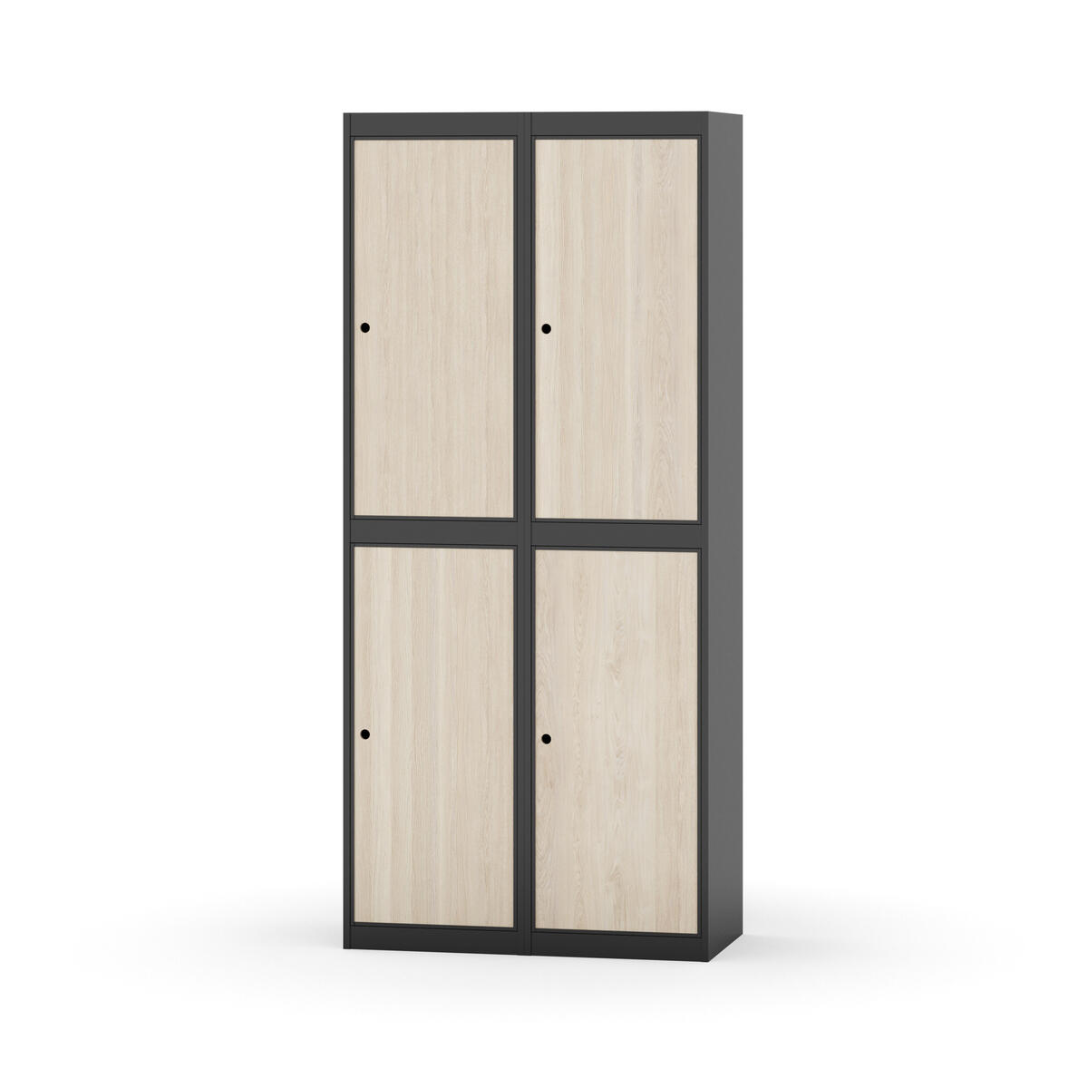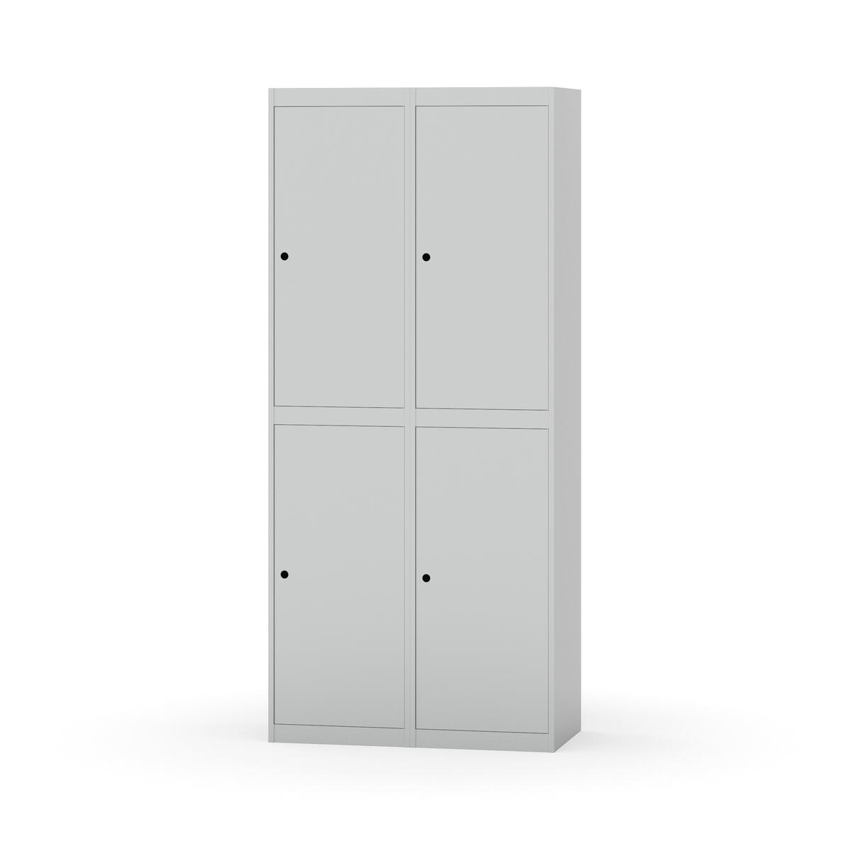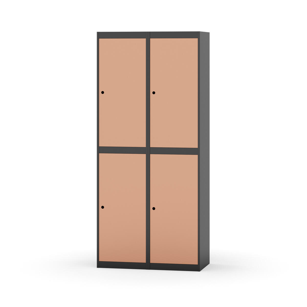 Klädskåp med helsvetsad stomme. Välj mellan plåt eller laminatdörr. Plåtdörren är försedd med dörrstopp i stål och infälld förstärkning kring låshålet. Laminatdörr infälld i stålram försedd med dörrstopp i stål. Dörrar är öppningsbara 90 grader. Inredning: Hyllplan och klädstång med två ankarkrokar. Slät golvyta utan tröskel. Ventilation genom hål i tak-/bottenplåt. Observera att lås och underrede beställs på separata artikelnummer. Lås kommer att vara monterade på skåp vid leverans. Valt underrede monteras på plats.