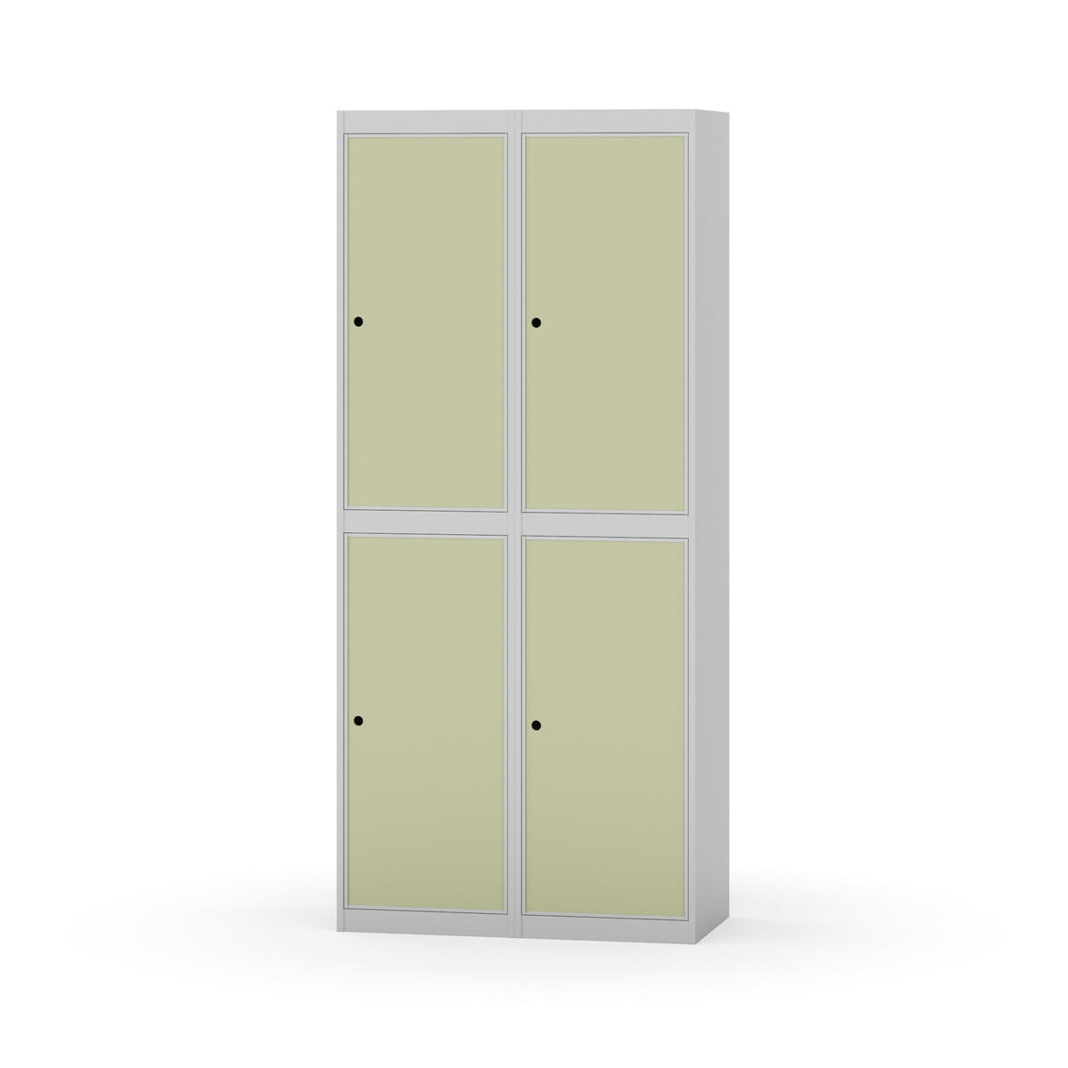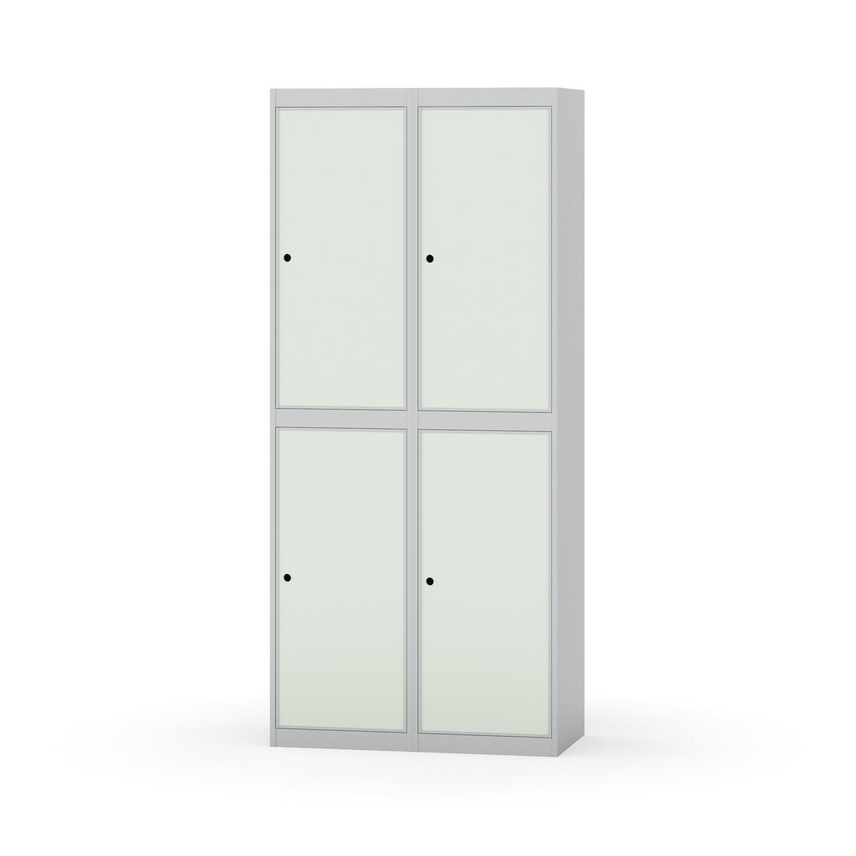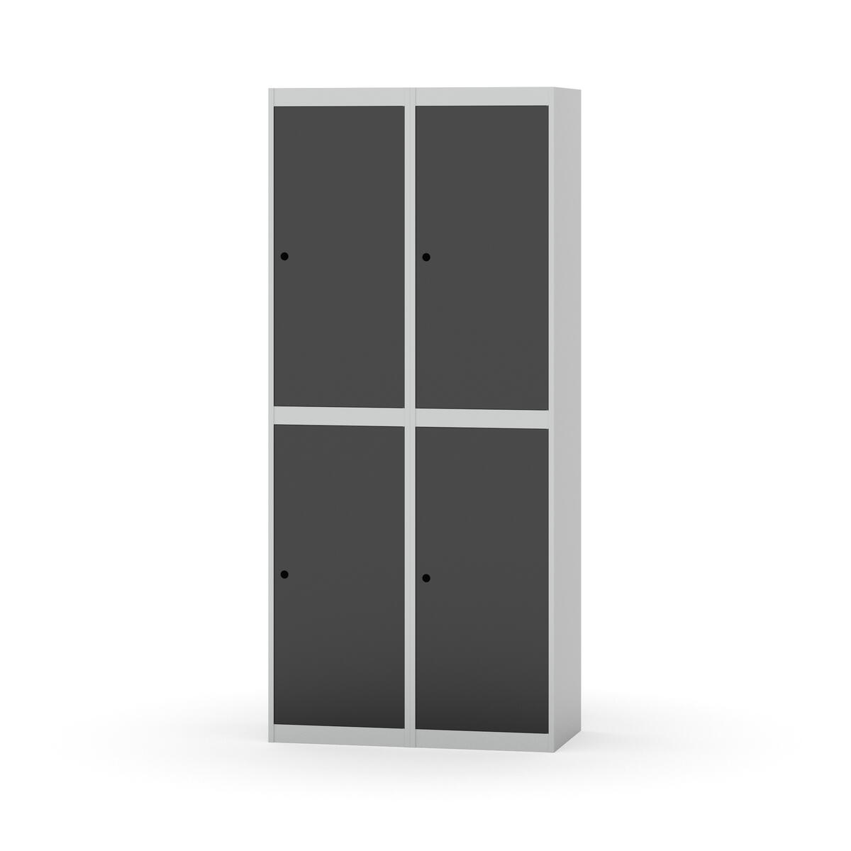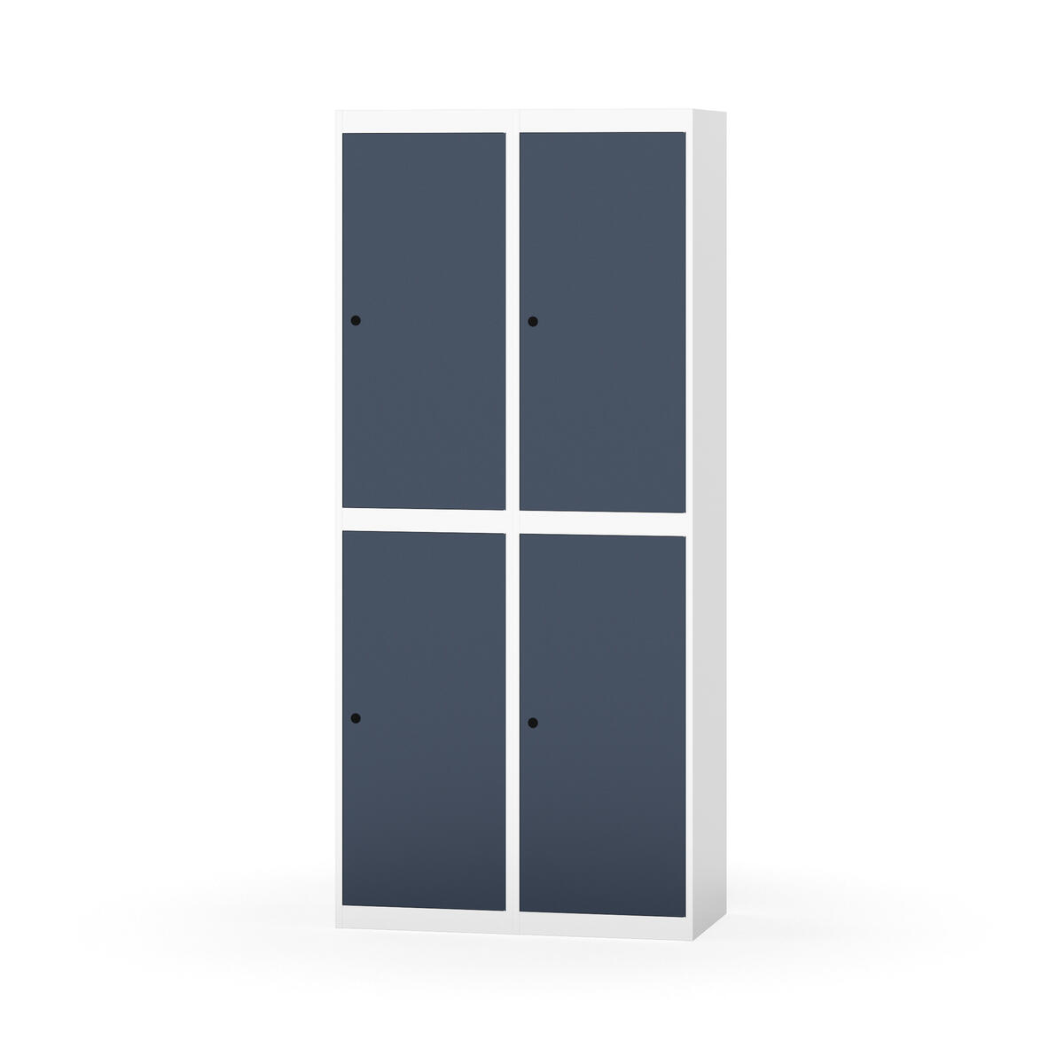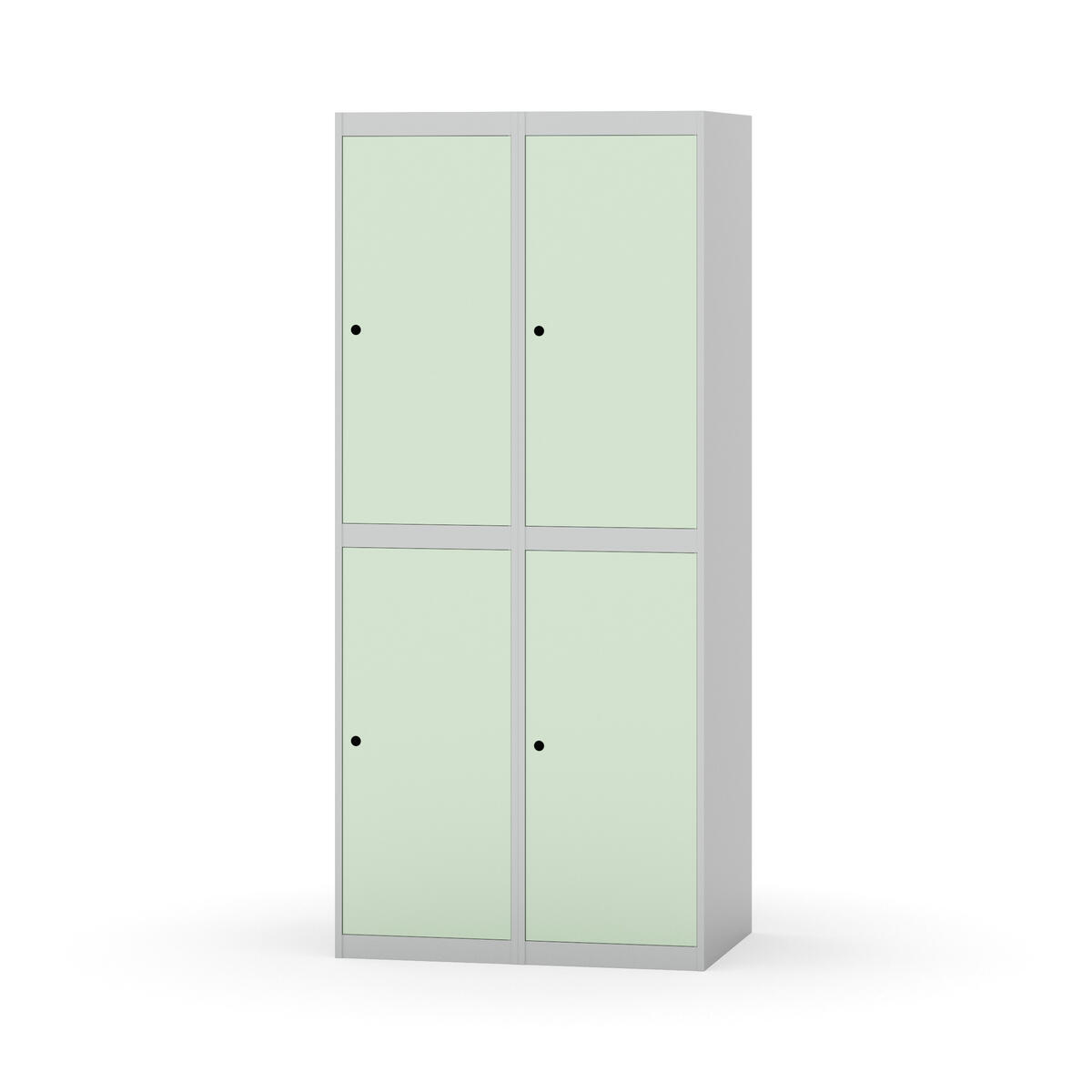 Klädskåp med helsvetsad stomme. Välj mellan plåt eller laminatdörr. Plåtdörren är försedd med dörrstopp i stål och infälld förstärkning kring låshålet. Laminatdörr infälld i stålram försedd med dörrstopp i stål. Dörrar är öppningsbara 90 grader. Inredning: Hyllplan och klädstång med två ankarkrokar. Slät golvyta utan tröskel. Ventilation genom hål i tak-/bottenplåt. Observera att lås och underrede beställs på separata artikelnummer. Lås kommer att vara monterade på skåp vid leverans. Valt underrede monteras på plats.