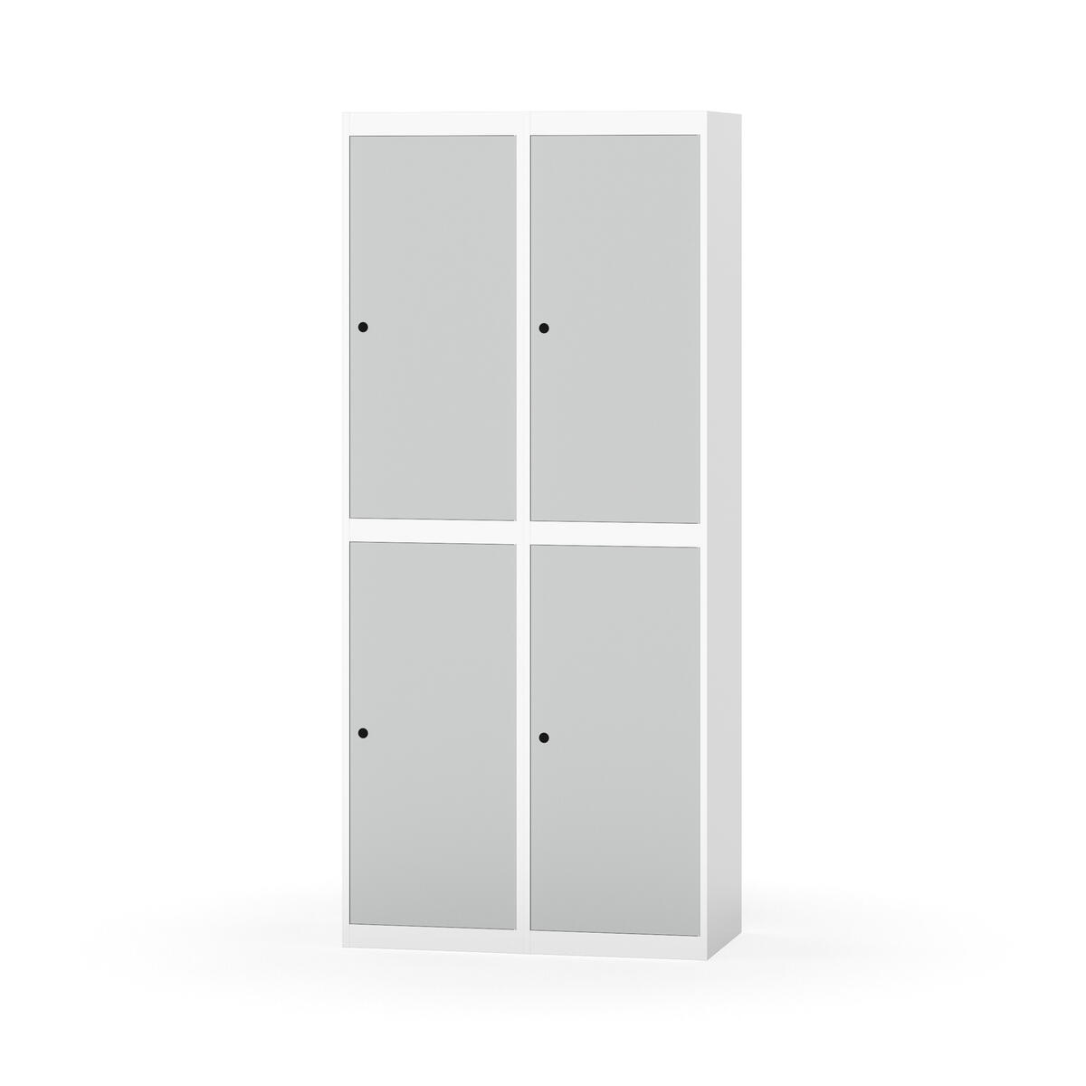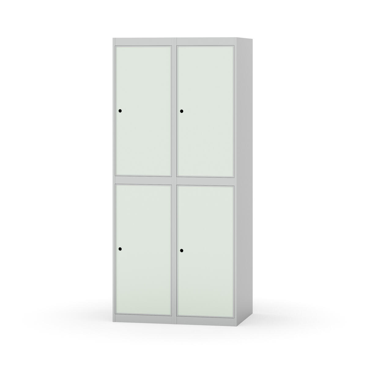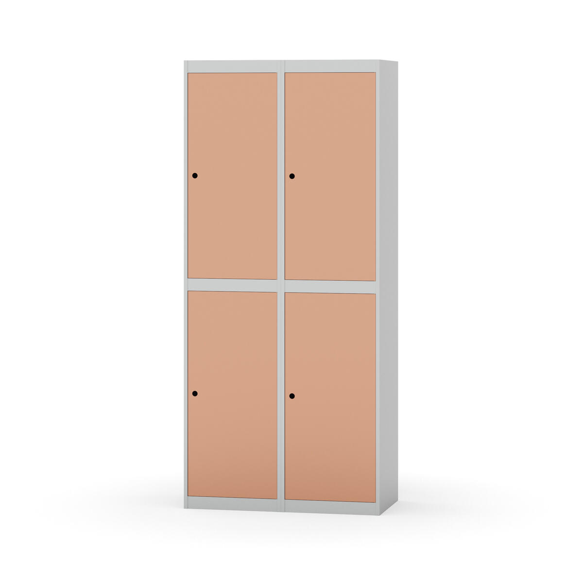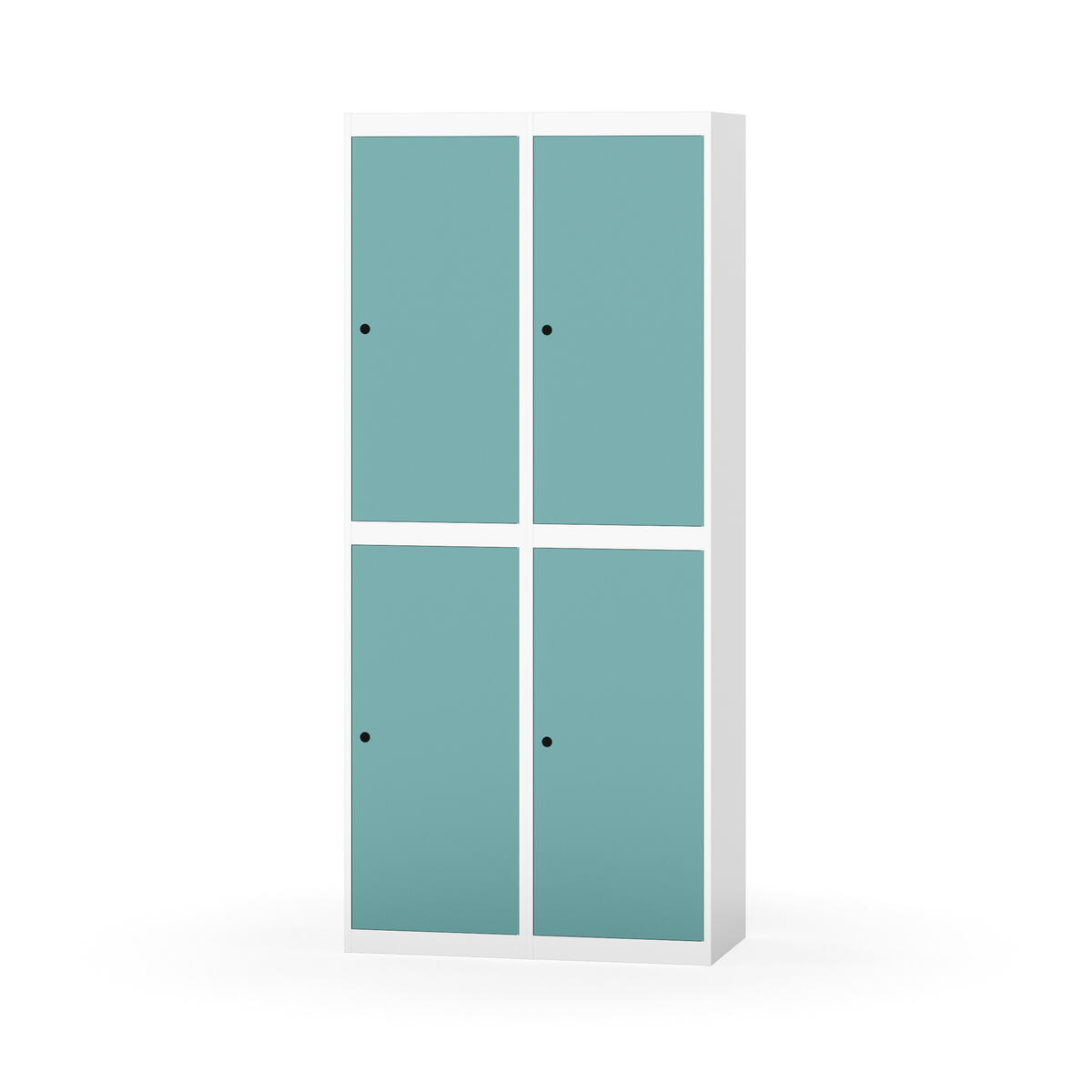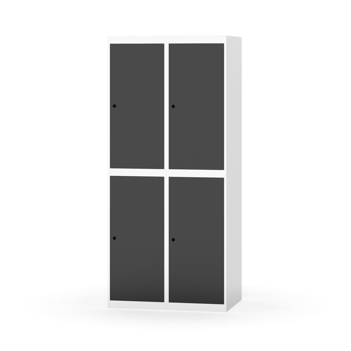 Klädskåp med helsvetsad stomme. Välj mellan plåt eller laminatdörr. Plåtdörren är försedd med dörrstopp i stål och infälld förstärkning kring låshålet. Laminatdörr infälld i stålram försedd med dörrstopp i stål. Dörrar är öppningsbara 90 grader. Inredning: Hyllplan och klädstång med två ankarkrokar. Slät golvyta utan tröskel. Ventilation genom hål i tak-/bottenplåt. Observera att lås och underrede beställs på separata artikelnummer. Lås kommer att vara monterade på skåp vid leverans. Valt underrede monteras på plats.
