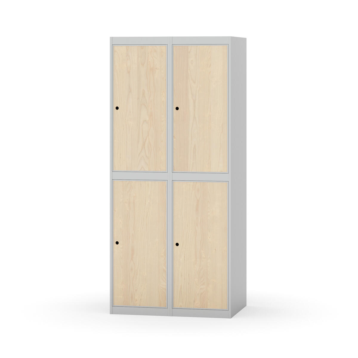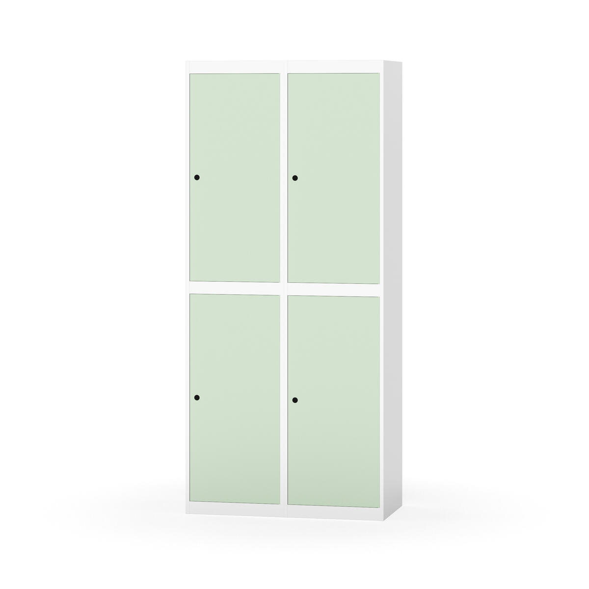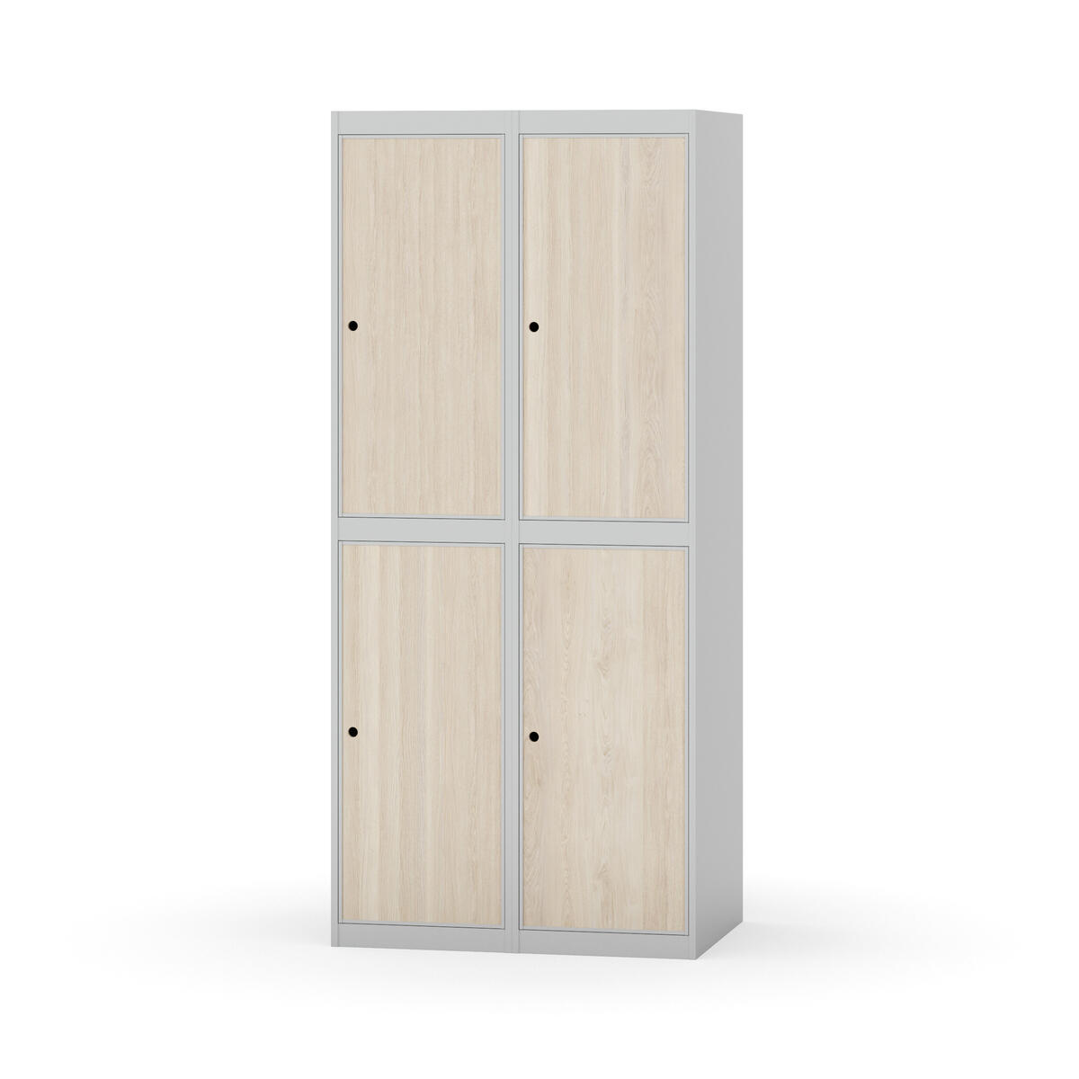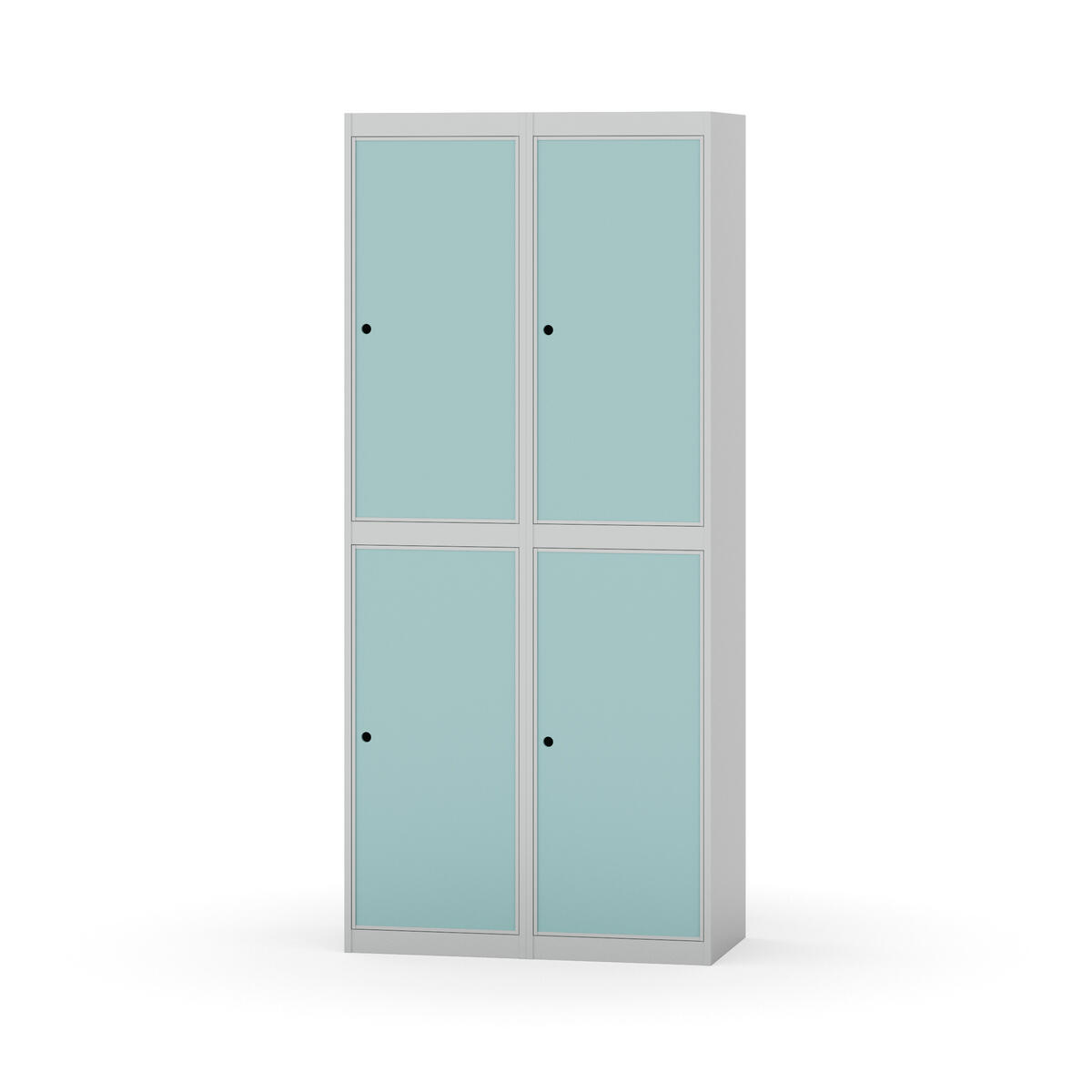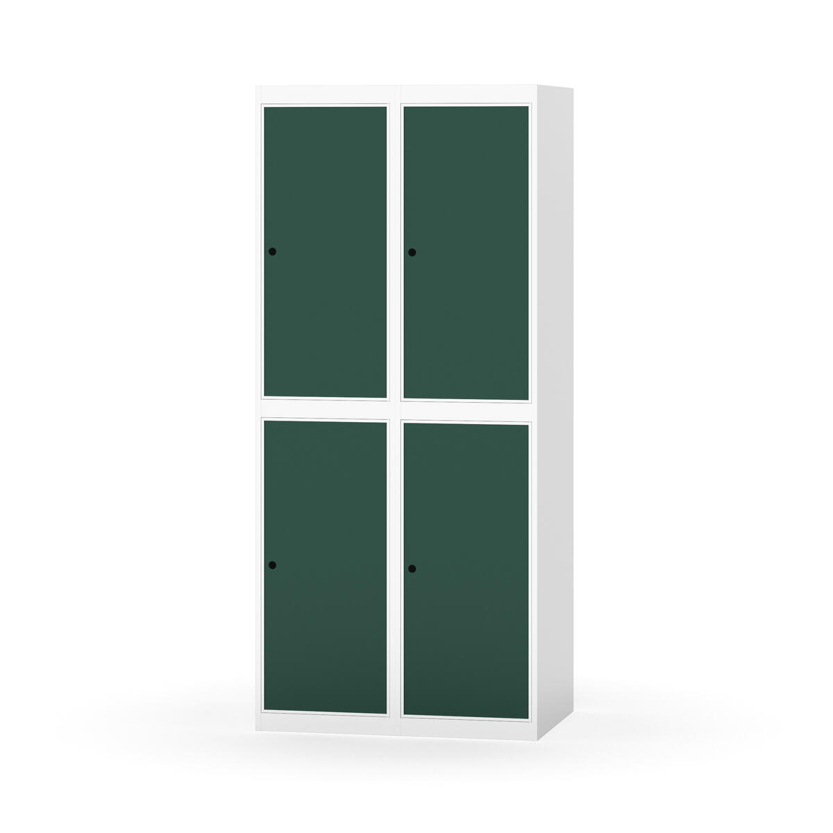 Klädskåp med helsvetsad stomme. Välj mellan plåt eller laminatdörr. Plåtdörren är försedd med dörrstopp i stål och infälld förstärkning kring låshålet. Laminatdörr infälld i stålram försedd med dörrstopp i stål. Dörrar är öppningsbara 90 grader. Inredning: Hyllplan och klädstång med två ankarkrokar. Slät golvyta utan tröskel. Ventilation genom hål i tak-/bottenplåt. Observera att lås och underrede beställs på separata artikelnummer. Lås kommer att vara monterade på skåp vid leverans. Valt underrede monteras på plats.