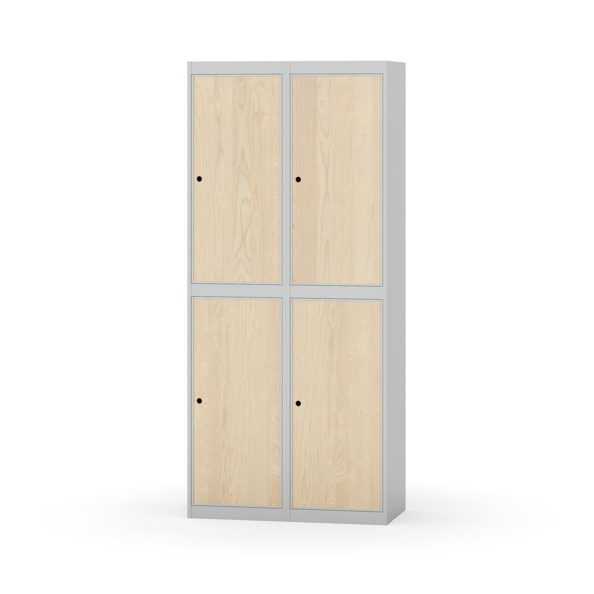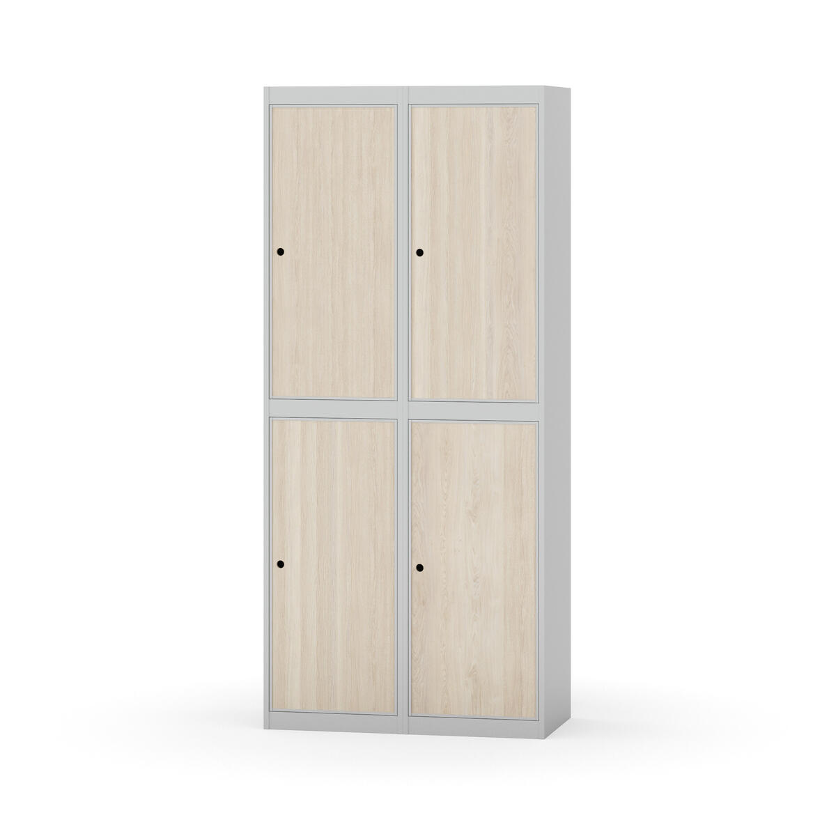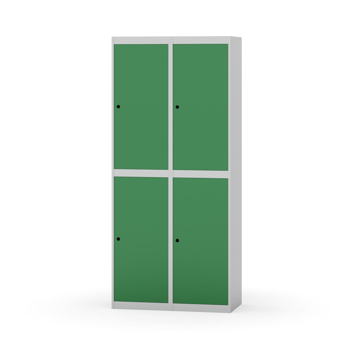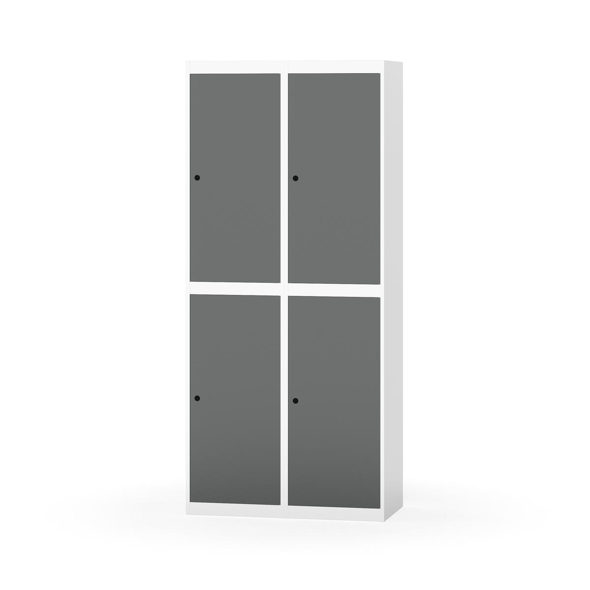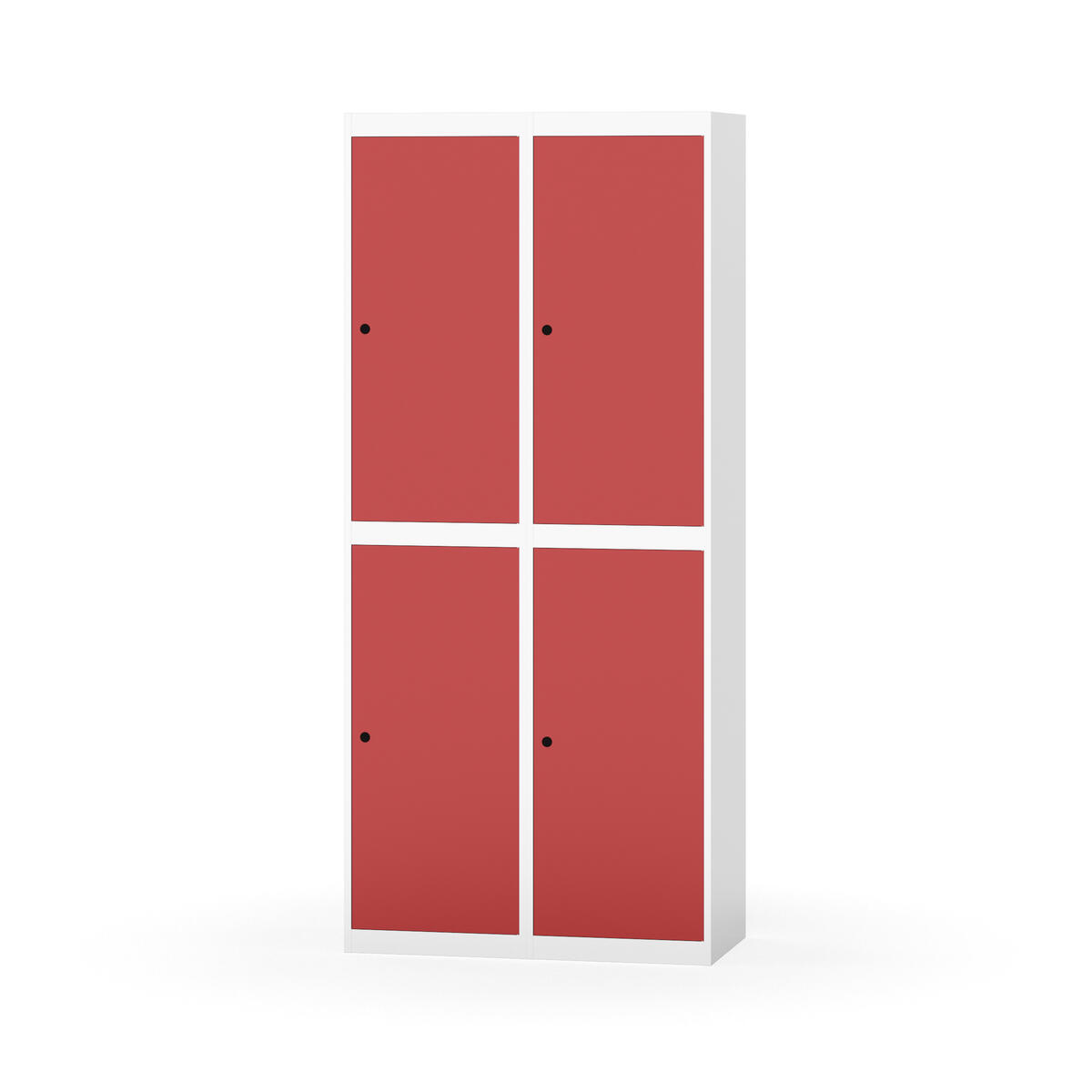 Klädskåp med helsvetsad stomme. Välj mellan plåt eller laminatdörr. Plåtdörren är försedd med dörrstopp i stål och infälld förstärkning kring låshålet. Laminatdörr infälld i stålram försedd med dörrstopp i stål. Dörrar är öppningsbara 90 grader. Inredning: Hyllplan och klädstång med två ankarkrokar. Slät golvyta utan tröskel. Ventilation genom hål i tak-/bottenplåt. Observera att lås och underrede beställs på separata artikelnummer. Lås kommer att vara monterade på skåp vid leverans. Valt underrede monteras på plats.