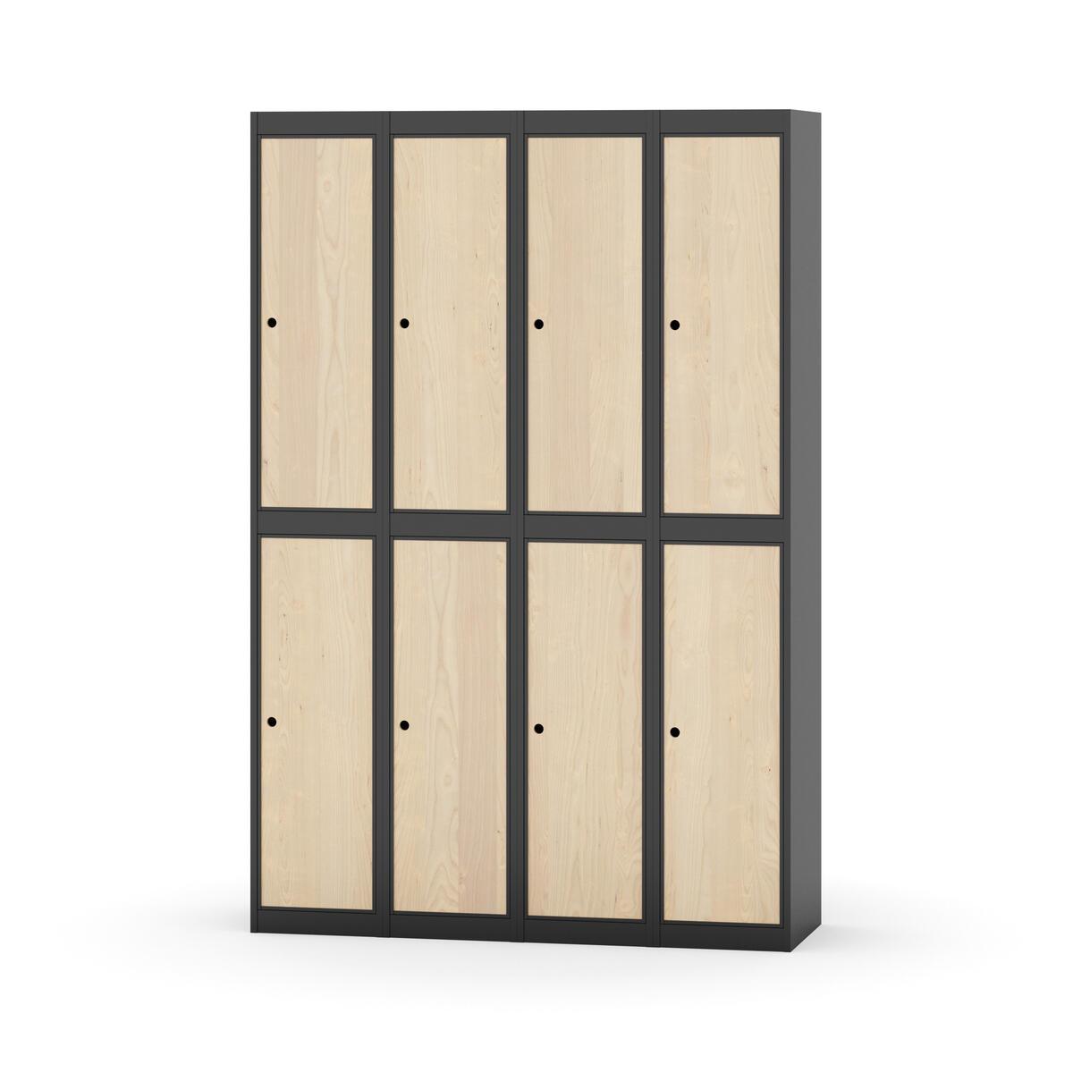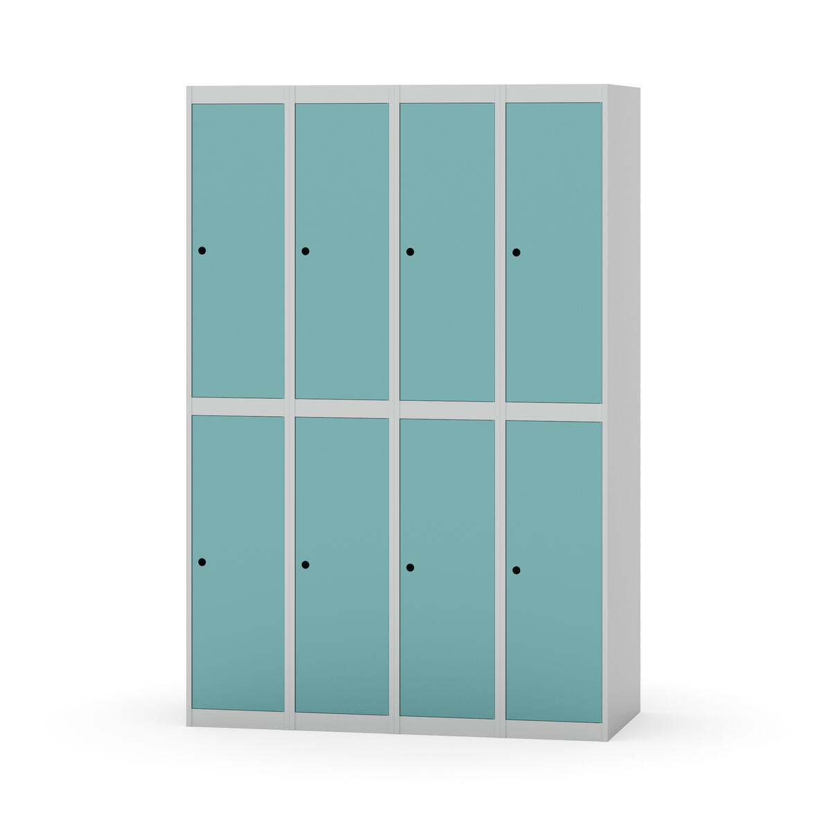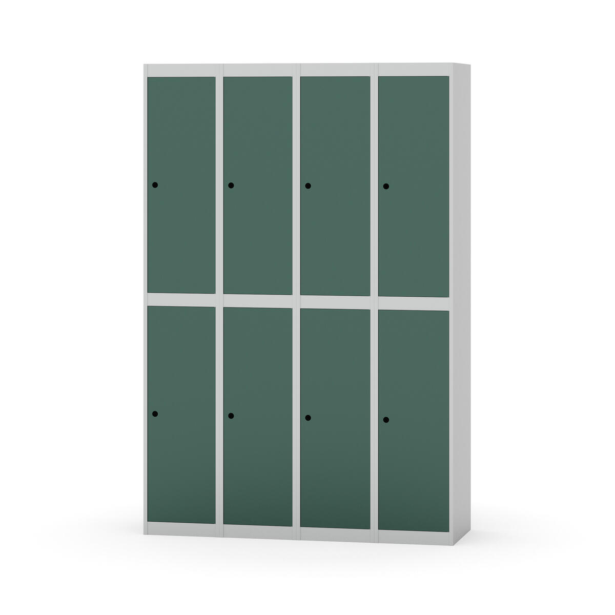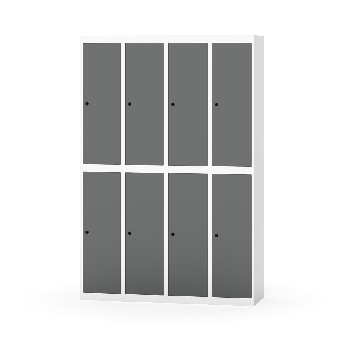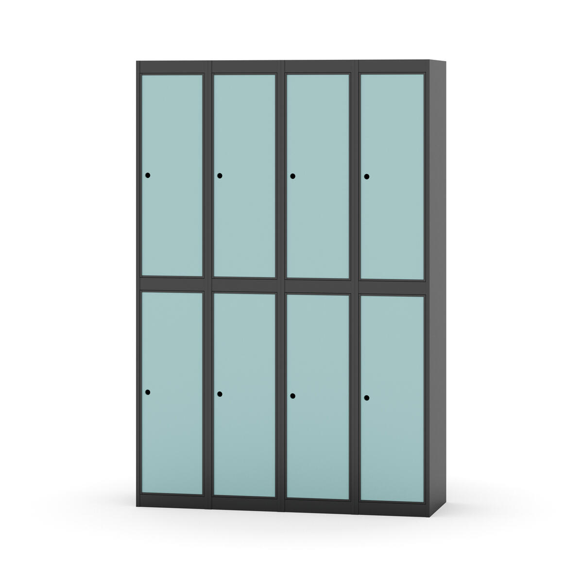Klädskåp med helsvetsad stomme. Välj mellan plåt eller laminatdörr. Plåtdörren är försedd med dörrstopp i stål och infälld förstärkning kring låshålet. Laminatdörr infälld i stålram försedd med dörrstopp i stål. Dörrar är öppningsbara 90 grader. Inredning: Hyllplan och klädstång med två ankarkrokar. Slät golvyta utan tröskel. Ventilation genom hål i tak-/bottenplåt. Observera att lås och underrede beställs på separata artikelnummer. Lås kommer att vara monterade på skåp vid leverans. Valt underrede monteras på plats.