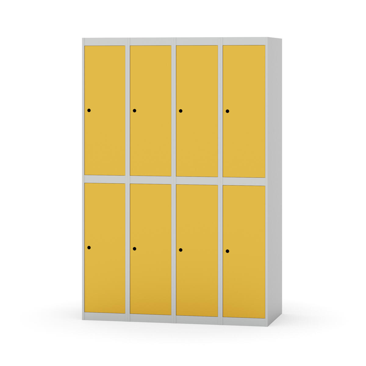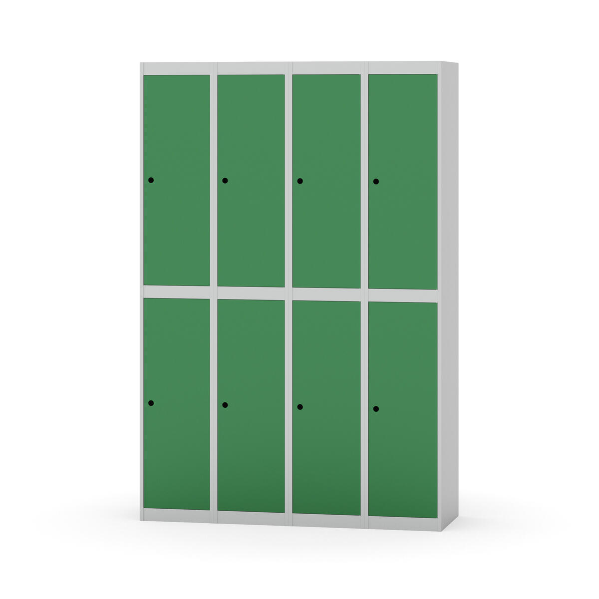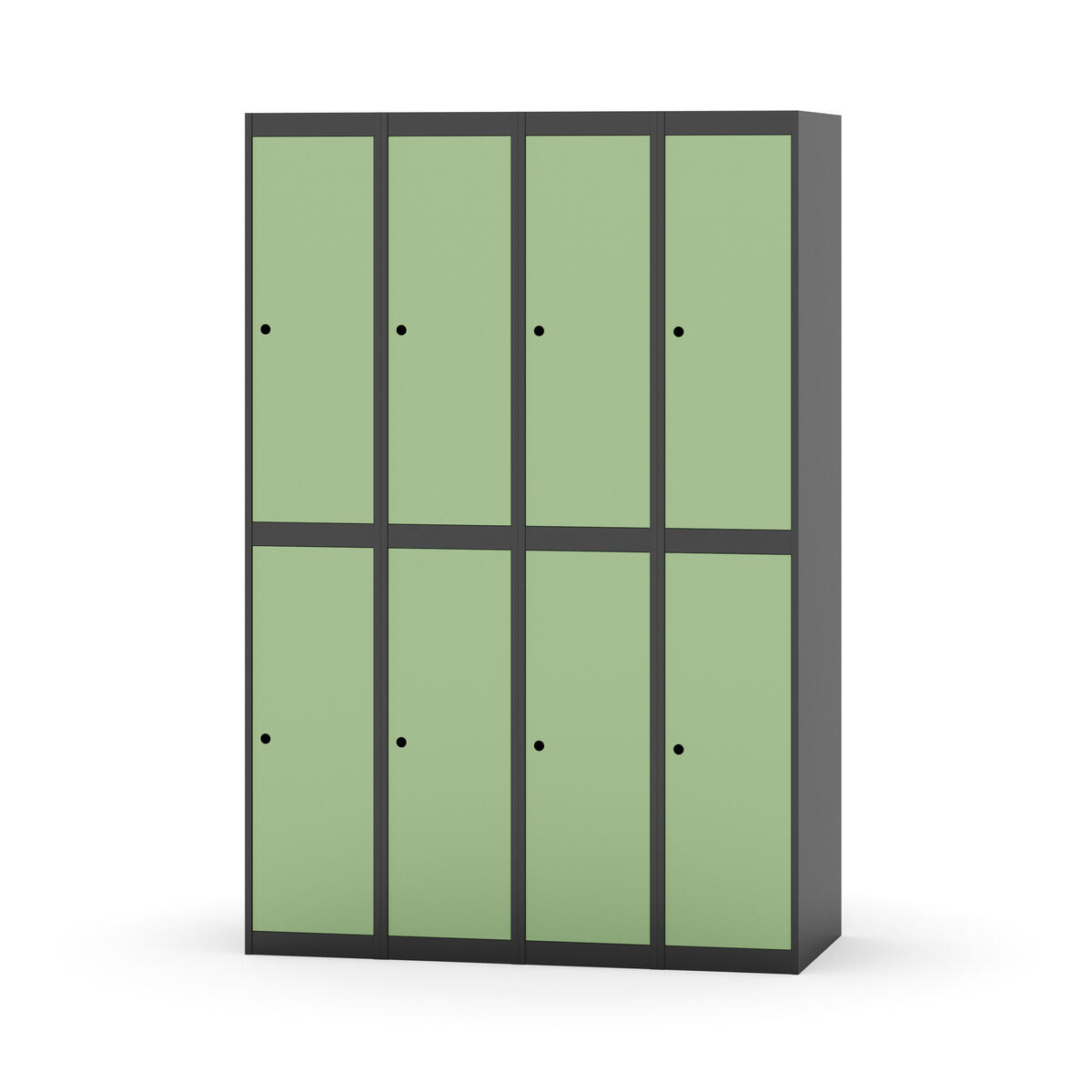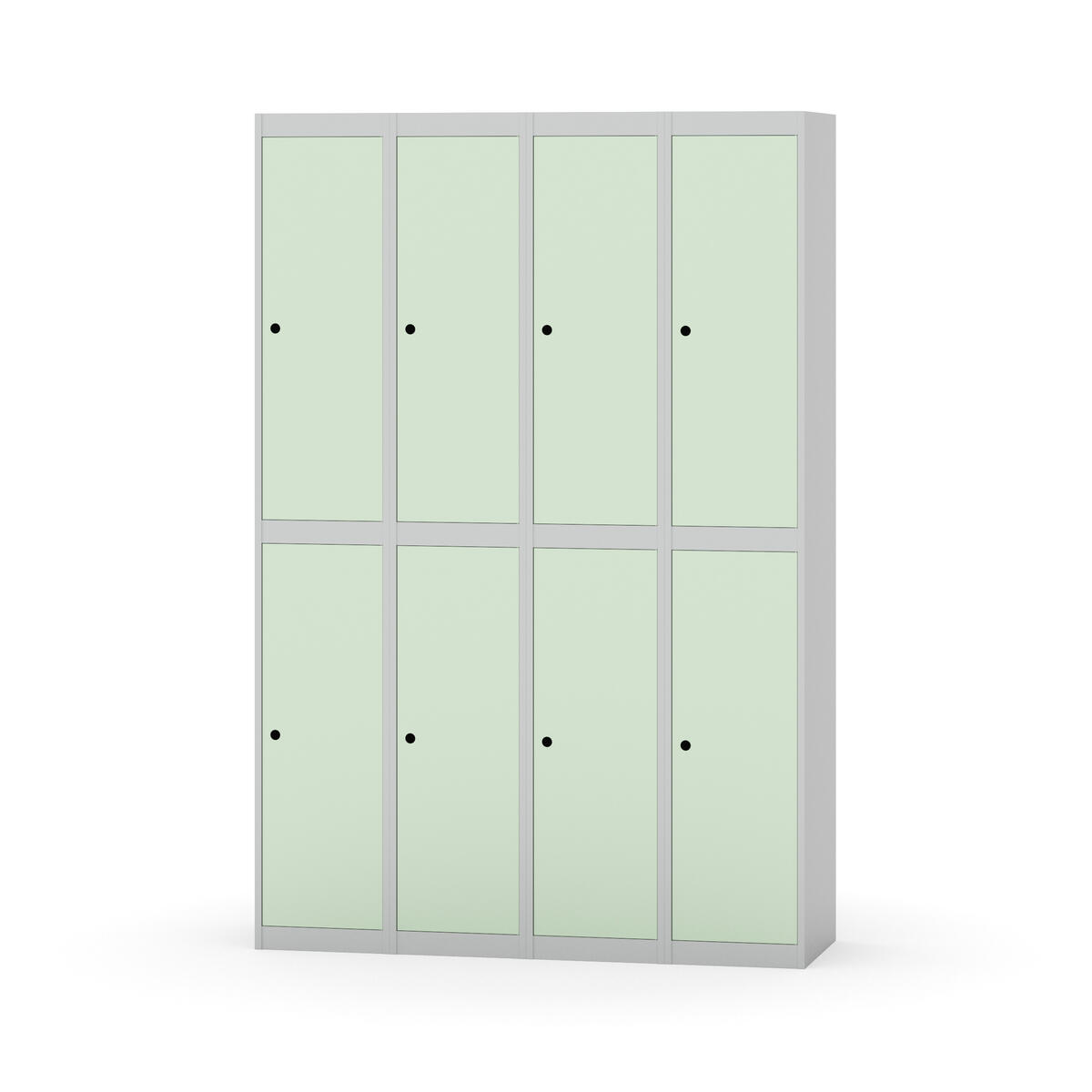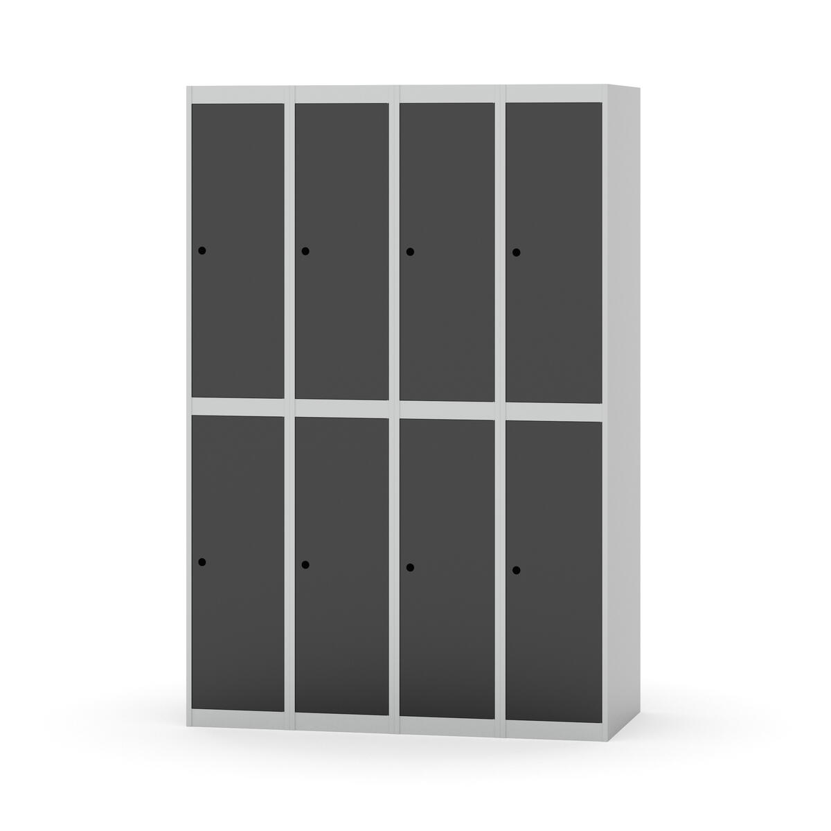 Klädskåp med helsvetsad stomme. Välj mellan plåt eller laminatdörr. Plåtdörren är försedd med dörrstopp i stål och infälld förstärkning kring låshålet. Laminatdörr infälld i stålram försedd med dörrstopp i stål. Dörrar är öppningsbara 90 grader. Inredning: Hyllplan och klädstång med två ankarkrokar. Slät golvyta utan tröskel. Ventilation genom hål i tak-/bottenplåt. Observera att lås och underrede beställs på separata artikelnummer. Lås kommer att vara monterade på skåp vid leverans. Valt underrede monteras på plats.