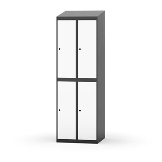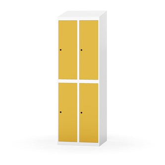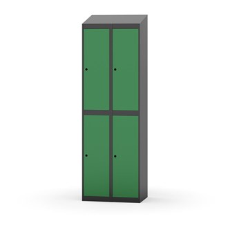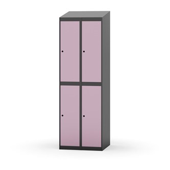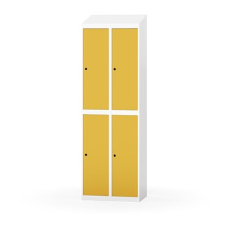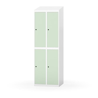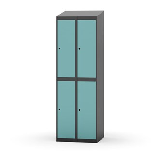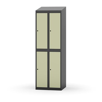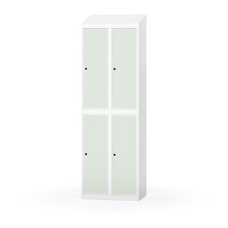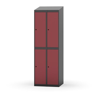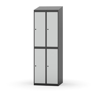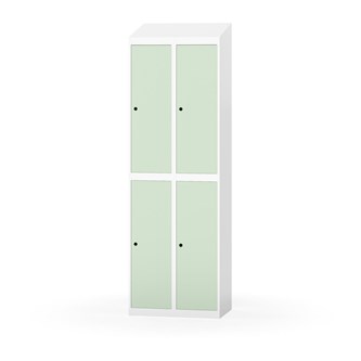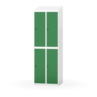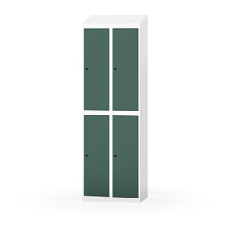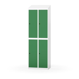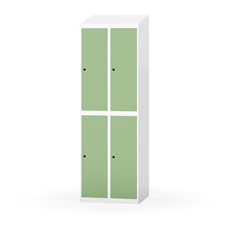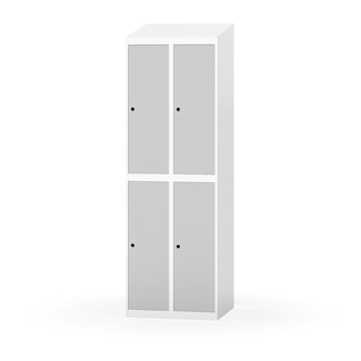 Klädskåp med helsvetsad stomme. Välj mellan plåt eller laminatdörr. Plåtdörren är försedd med dörrstopp i stål och infälld förstärkning kring låshålet. Laminatdörr infälld i stålram försedd med dörrstopp i stål. Dörrar är öppningsbara 90 grader. Inredning: Hyllplan och klädstång med två ankarkrokar. Slät golvyta utan tröskel. Ventilation genom hål i tak-/bottenplåt. Observera att lås och underrede beställs på separata artikelnummer. Lås kommer att vara monterade på skåp vid leverans. Valt underrede monteras på plats.