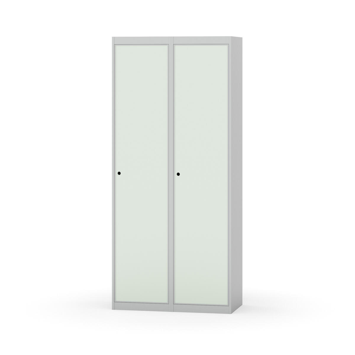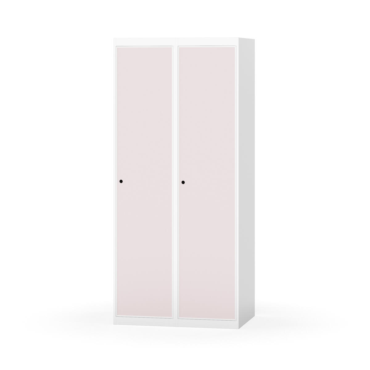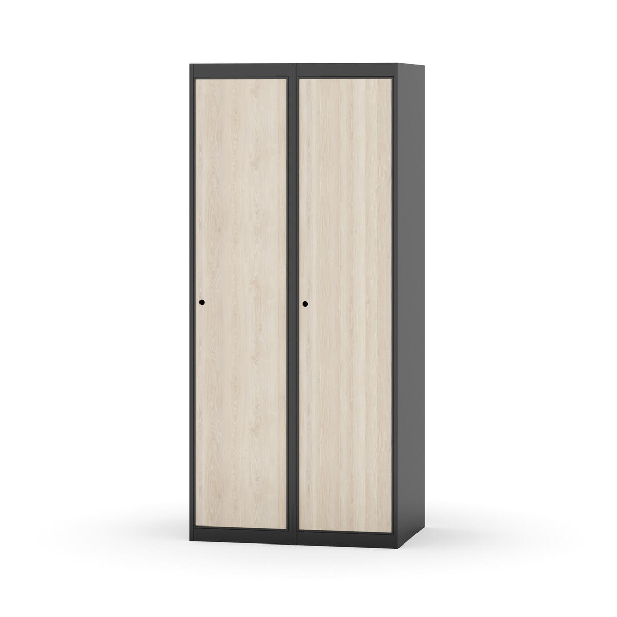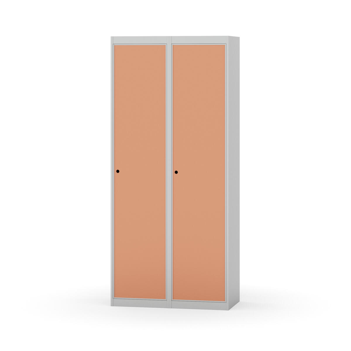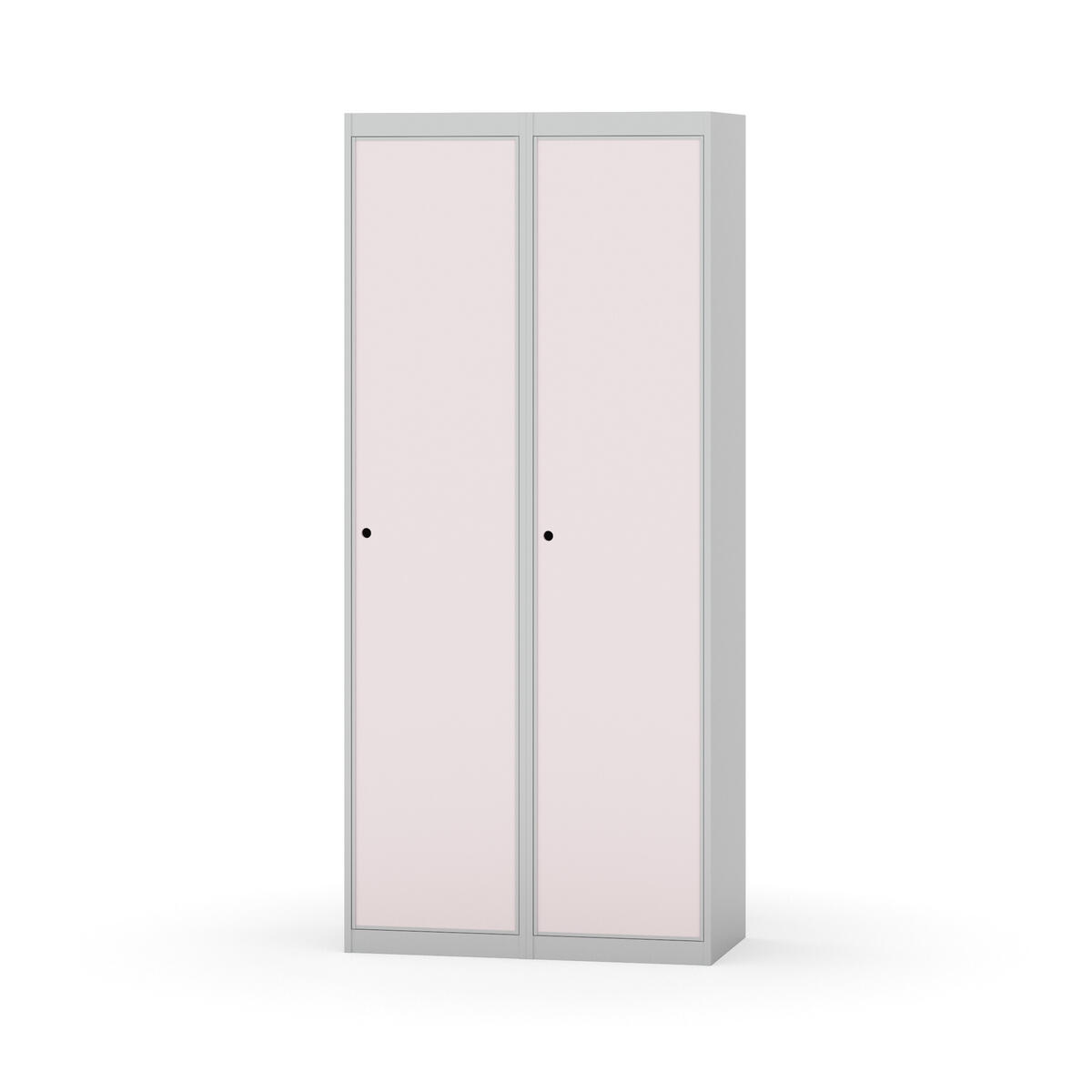 Klädskåp med helsvetsad stomme. Välj mellan plåt eller laminatdörr. Plåtdörren är försedd med dörrstopp i stål och infälld förstärkning kring låshålet. Laminatdörr infälld i stålram försedd med dörrstopp i stål. Dörrar är öppningsbara 90 grader. Inredning: Hyllplan och klädstång med två ankarkrokar. Slät golvyta utan tröskel. Ventilation genom hål i tak-/bottenplåt. Observera att lås och underrede beställs på separata artikelnummer. Lås kommer att vara monterade på skåp vid leverans. Valt underrede monteras på plats.