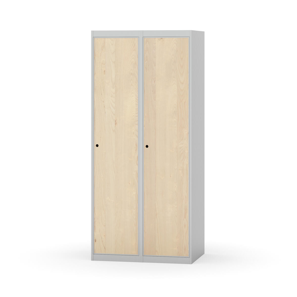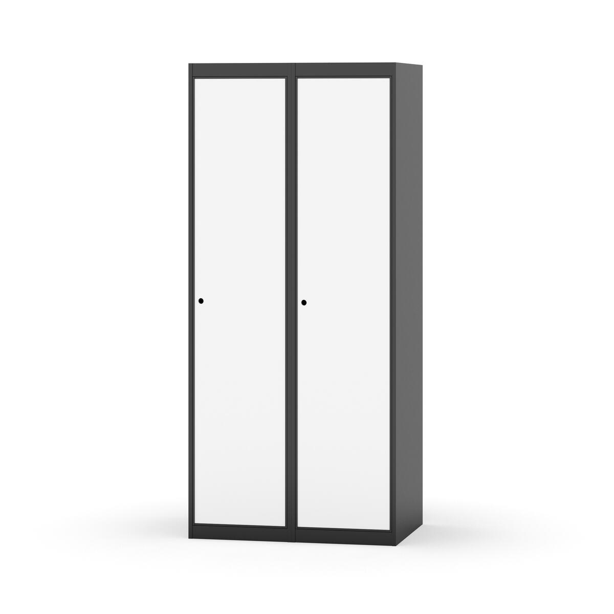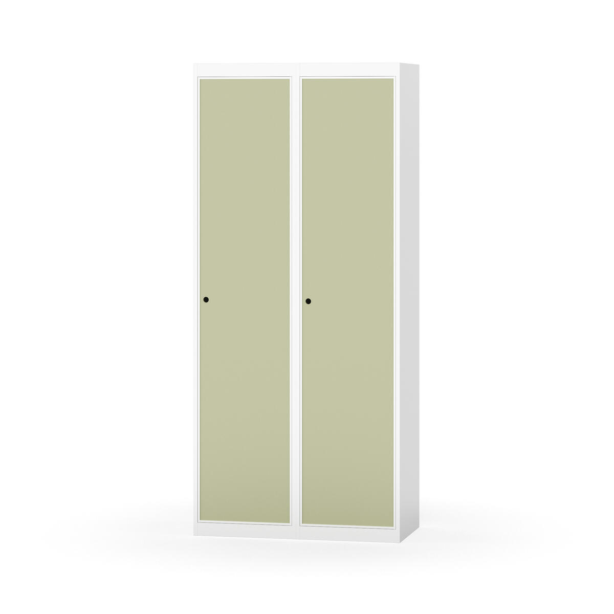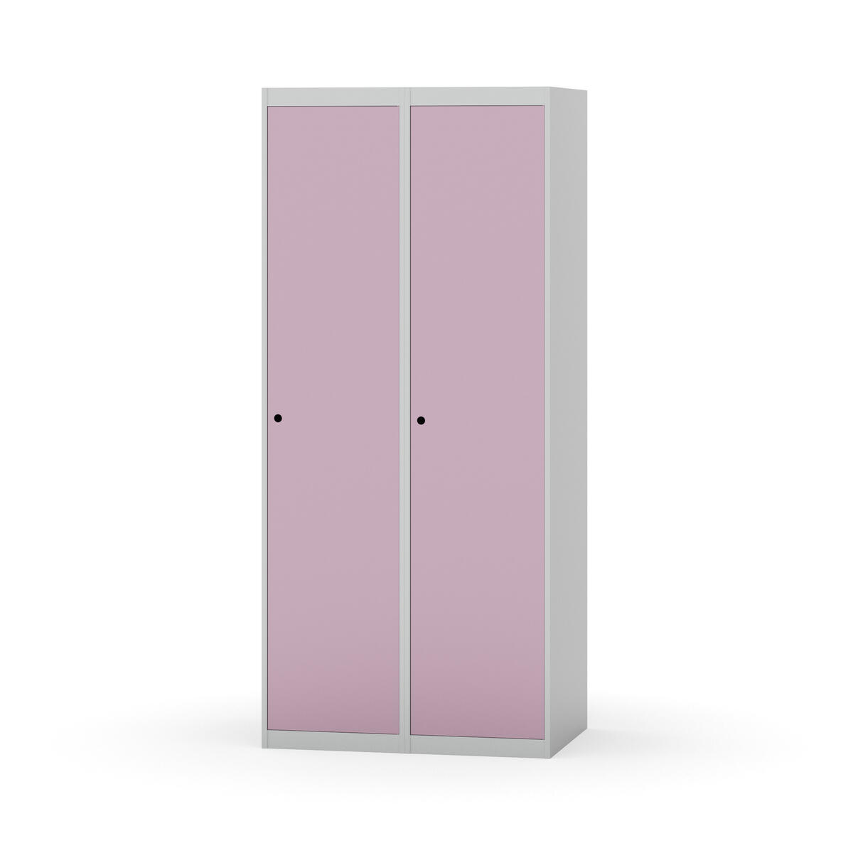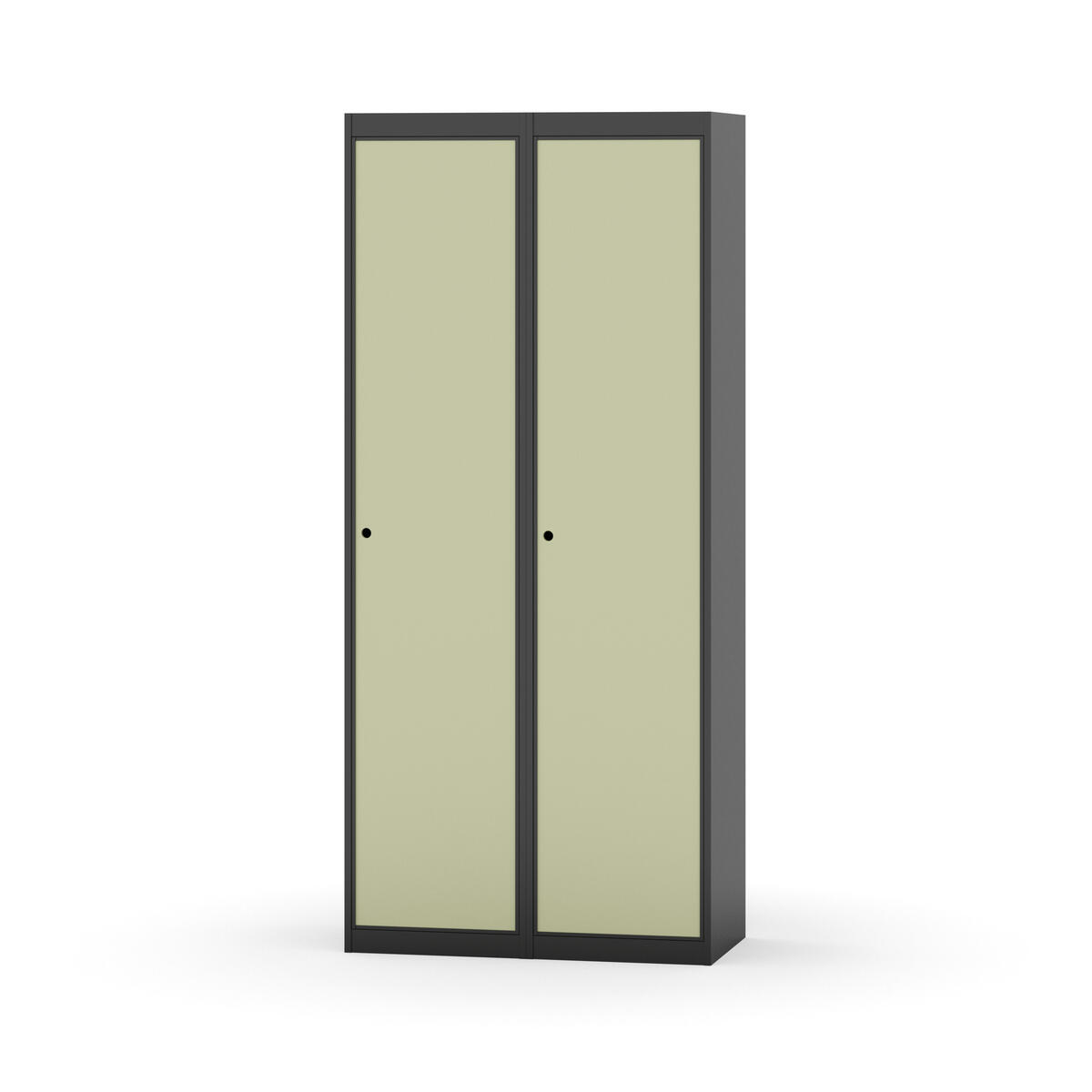 Klädskåp med helsvetsad stomme. Välj mellan plåt eller laminatdörr. Plåtdörren är försedd med dörrstopp i stål och infälld förstärkning kring låshålet. Laminatdörr infälld i stålram försedd med dörrstopp i stål. Dörrar är öppningsbara 90 grader. Inredning: Hyllplan och klädstång med två ankarkrokar. Slät golvyta utan tröskel. Ventilation genom hål i tak-/bottenplåt. Observera att lås och underrede beställs på separata artikelnummer. Lås kommer att vara monterade på skåp vid leverans. Valt underrede monteras på plats.
