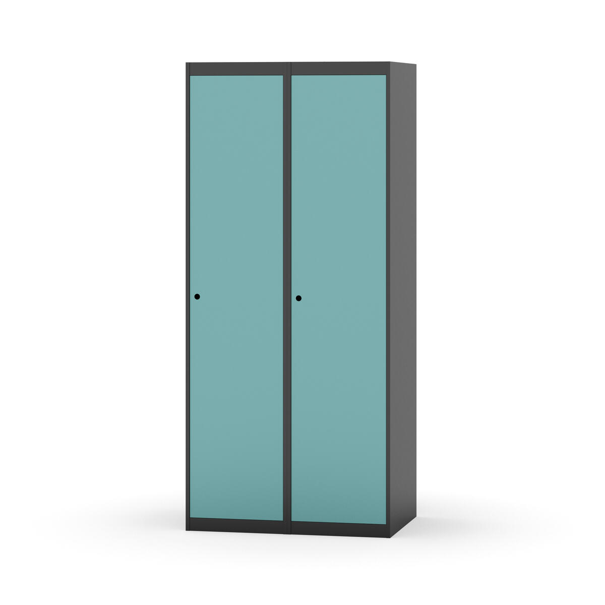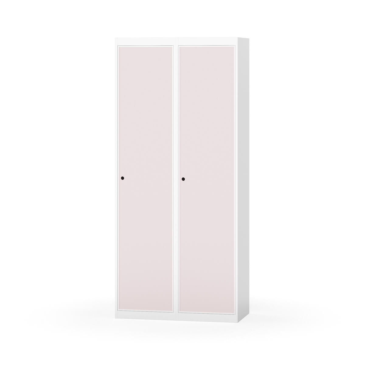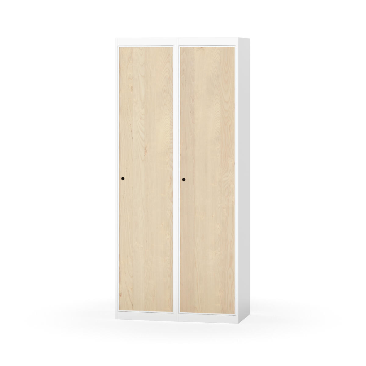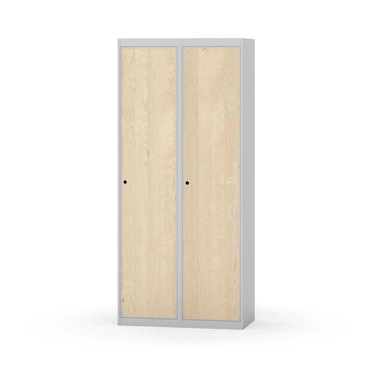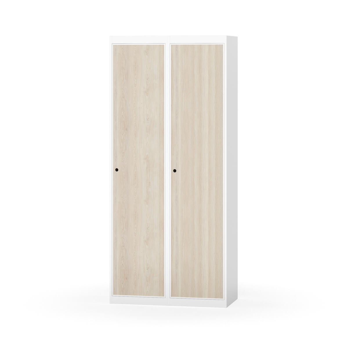 Klädskåp med helsvetsad stomme. Välj mellan plåt eller laminatdörr. Plåtdörren är försedd med dörrstopp i stål och infälld förstärkning kring låshålet. Laminatdörr infälld i stålram försedd med dörrstopp i stål. Dörrar är öppningsbara 90 grader. Inredning: Hyllplan och klädstång med två ankarkrokar. Slät golvyta utan tröskel. Ventilation genom hål i tak-/bottenplåt. Observera att lås och underrede beställs på separata artikelnummer. Lås kommer att vara monterade på skåp vid leverans. Valt underrede monteras på plats.