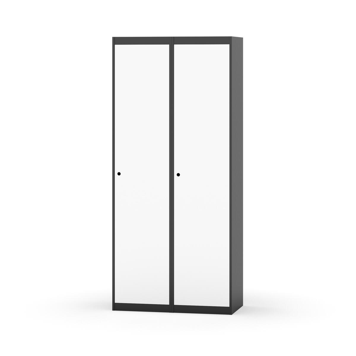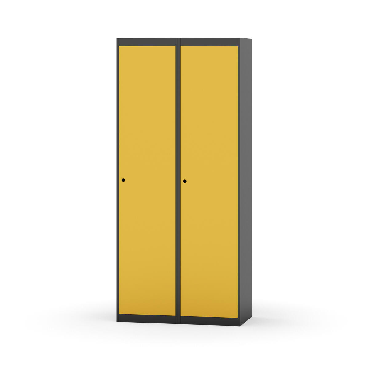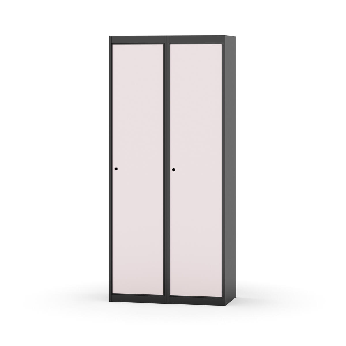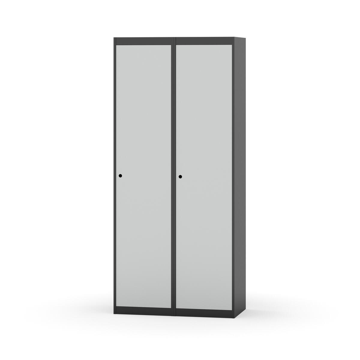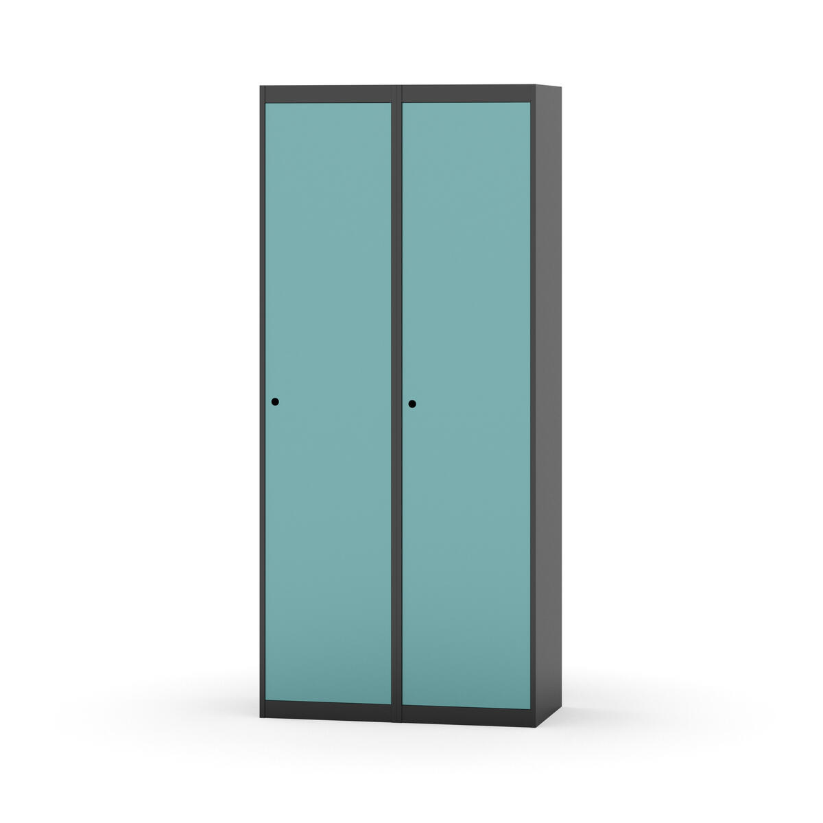 Klädskåp med helsvetsad stomme. Välj mellan plåt eller laminatdörr. Plåtdörren är försedd med dörrstopp i stål och infälld förstärkning kring låshålet. Laminatdörr infälld i stålram försedd med dörrstopp i stål. Dörrar är öppningsbara 90 grader. Inredning: Hyllplan och klädstång med två ankarkrokar. Slät golvyta utan tröskel. Ventilation genom hål i tak-/bottenplåt. Observera att lås och underrede beställs på separata artikelnummer. Lås kommer att vara monterade på skåp vid leverans. Valt underrede monteras på plats.