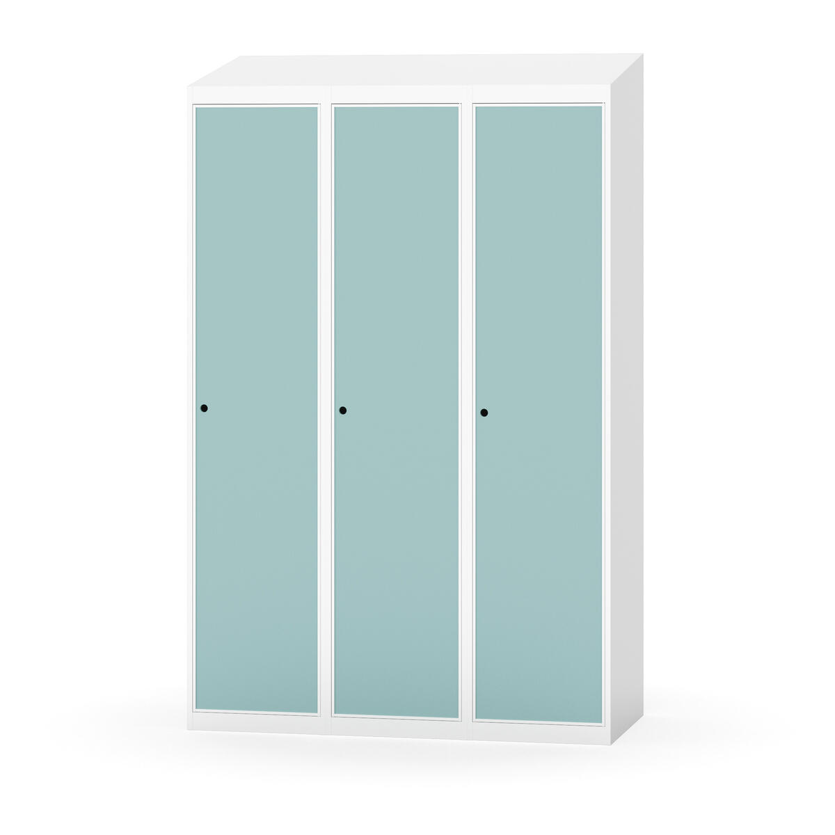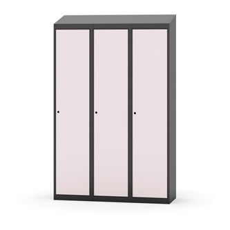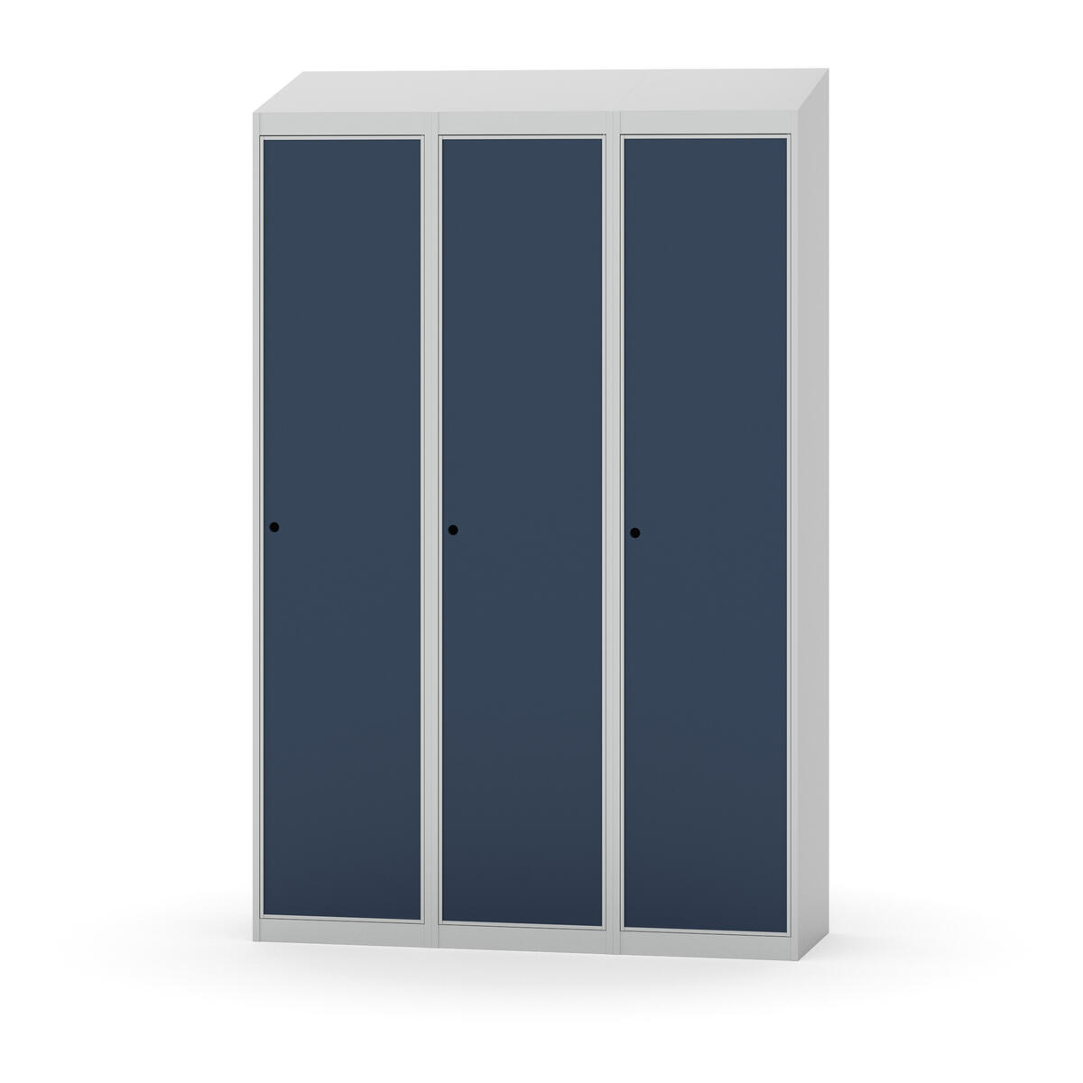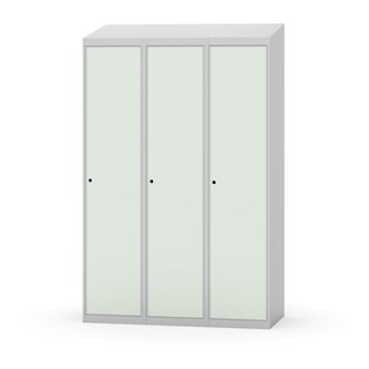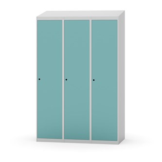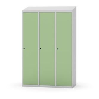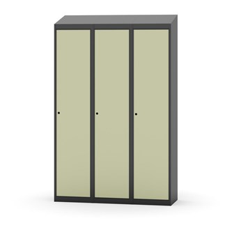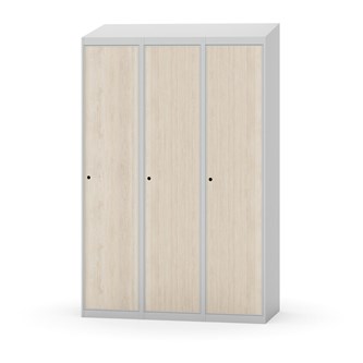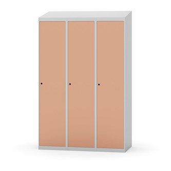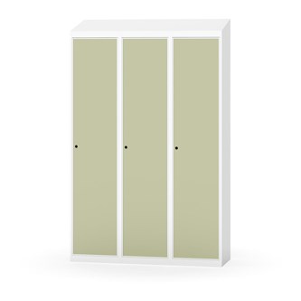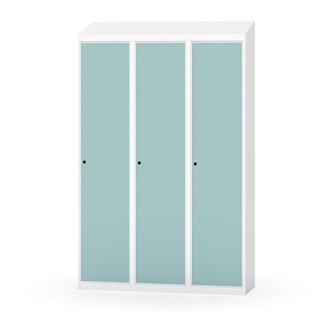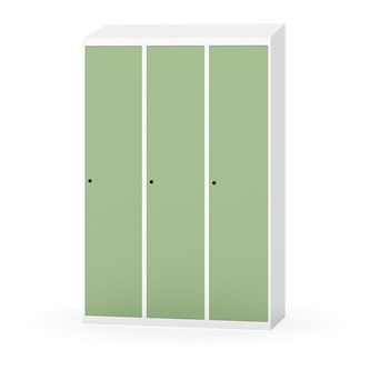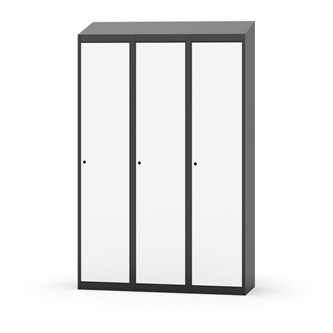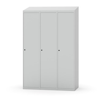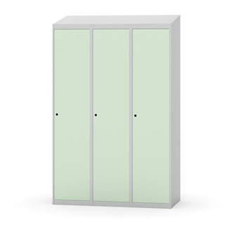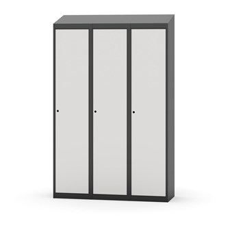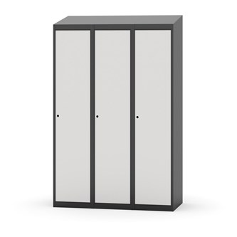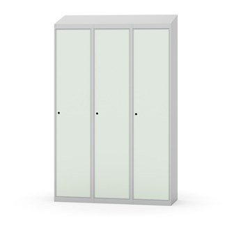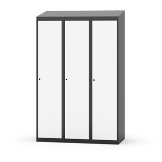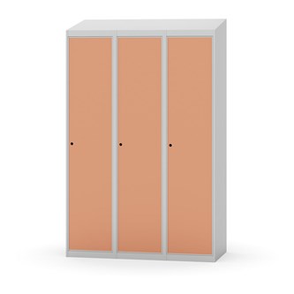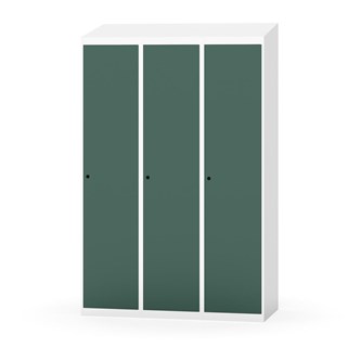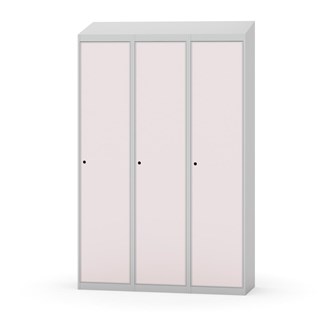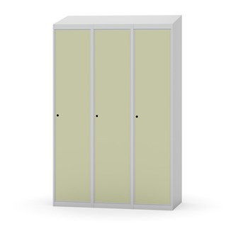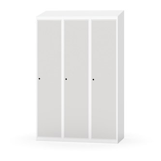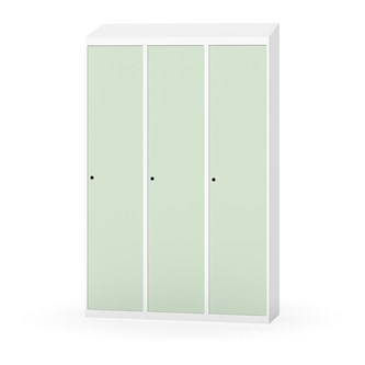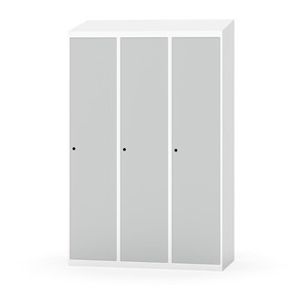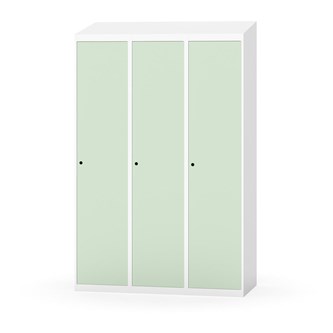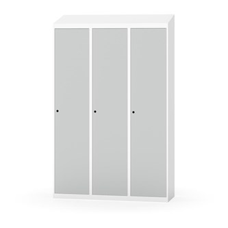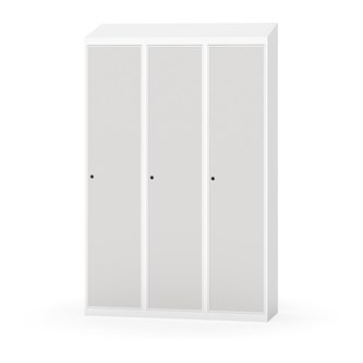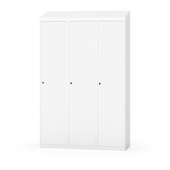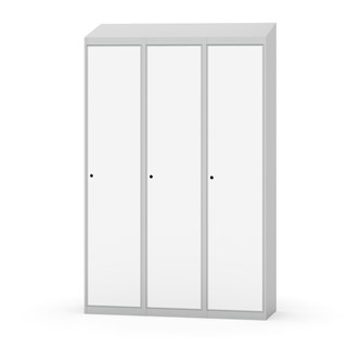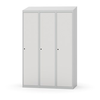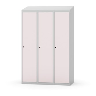Klädskåp med helsvetsad stomme. Välj mellan plåt eller laminatdörr. Plåtdörren är försedd med dörrstopp i stål och infälld förstärkning kring låshålet. Laminatdörr infälld i stålram försedd med dörrstopp i stål. Dörrar är öppningsbara 90 grader. Inredning: Hyllplan och klädstång med två ankarkrokar. Slät golvyta utan tröskel. Ventilation genom hål i tak-/bottenplåt. Observera att lås och underrede beställs på separata artikelnummer. Lås kommer att vara monterade på skåp vid leverans. Valt underrede monteras på plats.