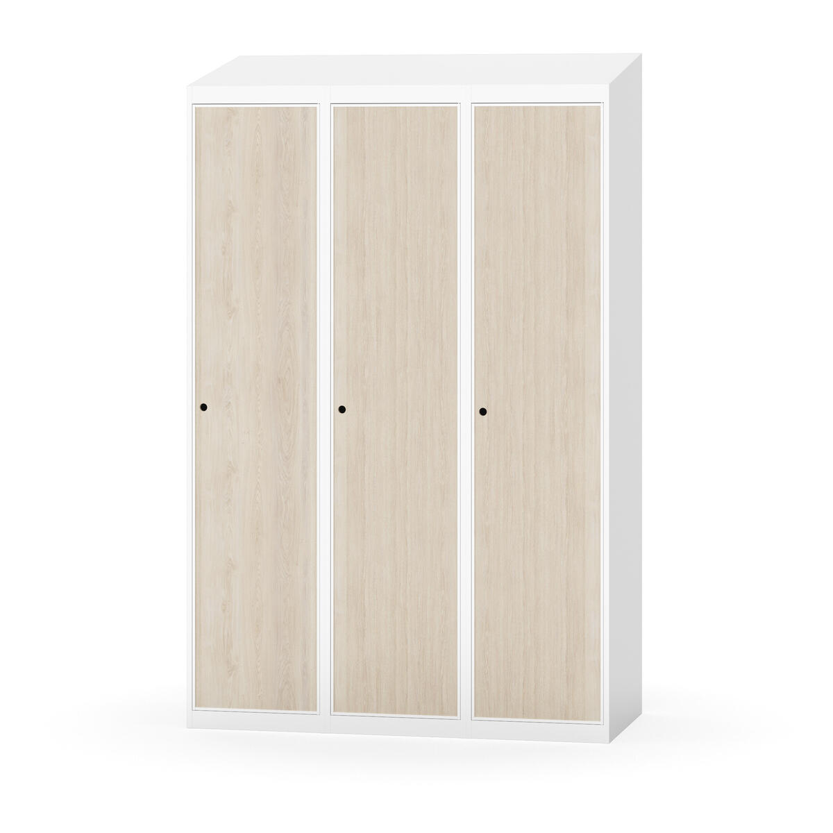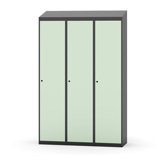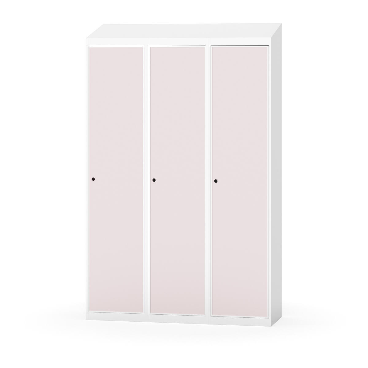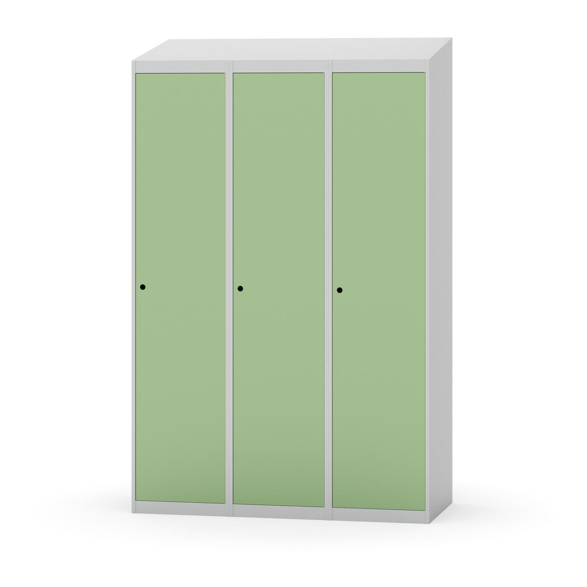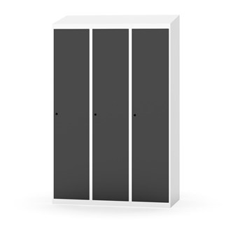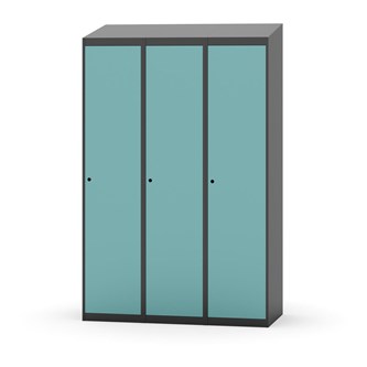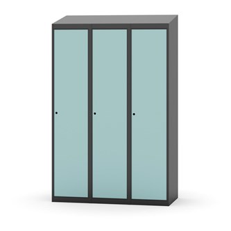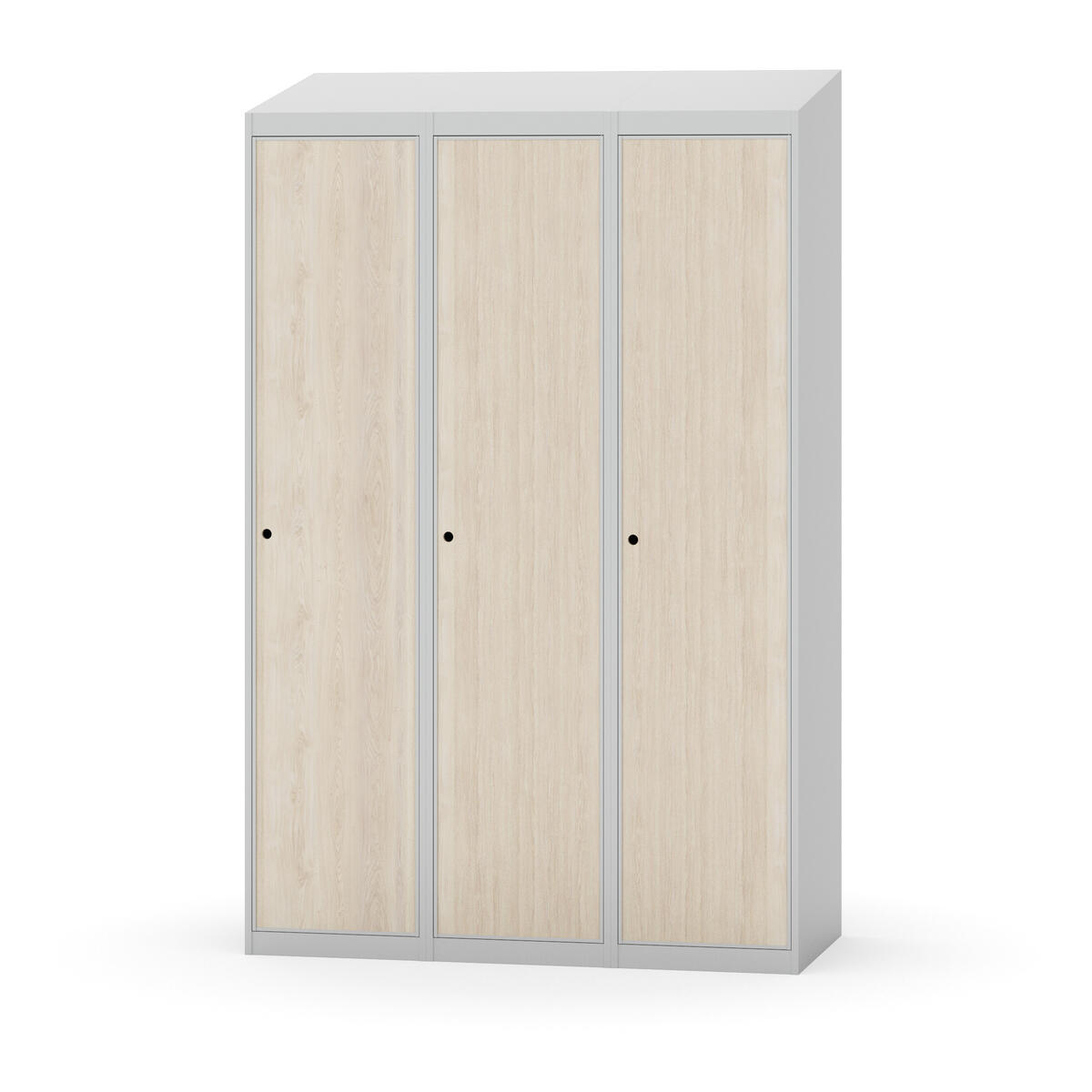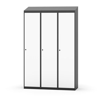 Klädskåp med helsvetsad stomme. Välj mellan plåt eller laminatdörr. Plåtdörren är försedd med dörrstopp i stål och infälld förstärkning kring låshålet. Laminatdörr infälld i stålram försedd med dörrstopp i stål. Dörrar är öppningsbara 90 grader. Inredning: Hyllplan och klädstång med två ankarkrokar. Slät golvyta utan tröskel. Ventilation genom hål i tak-/bottenplåt. Observera att lås och underrede beställs på separata artikelnummer. Lås kommer att vara monterade på skåp vid leverans. Valt underrede monteras på plats.