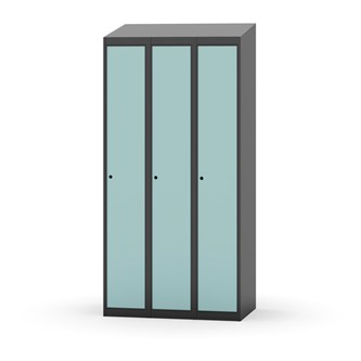 Klädskåp med helsvetsad stomme. Välj mellan plåt eller laminatdörr. Plåtdörren är försedd med dörrstopp i stål och infälld förstärkning kring låshålet. Laminatdörr infälld i stålram försedd med dörrstopp i stål. Dörrar är öppningsbara 90 grader. Inredning: Hyllplan och klädstång med två ankarkrokar. Slät golvyta utan tröskel. Ventilation genom hål i tak-/bottenplåt. Observera att lås och underrede beställs på separata artikelnummer. Lås kommer att vara monterade på skåp vid leverans. Valt underrede monteras på plats.