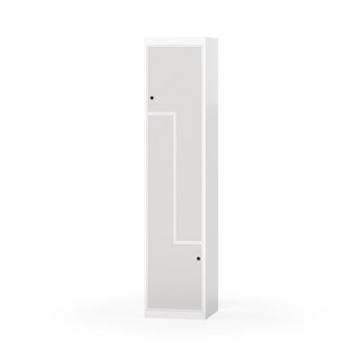 Klädskåp med helsvetsad stomme. Välj mellan plåt eller laminatdörr. Plåtdörren är försedd med dörrstopp i stål och infälld förstärkning kring låshålet. Laminatdörr infälld i stålram försedd med dörrstopp i stål. Dörrar är öppningsbara 90 grader. Inredning: Klädstång med ankarkrok. Slät golvyta utan tröskel. Ventilation genom hål i tak-/bottenplåt. Observera att lås och underrede beställs på separata artikelnummer. Lås kommer att vara monterade på skåp vid leverans. Valt underrede monteras på plats.