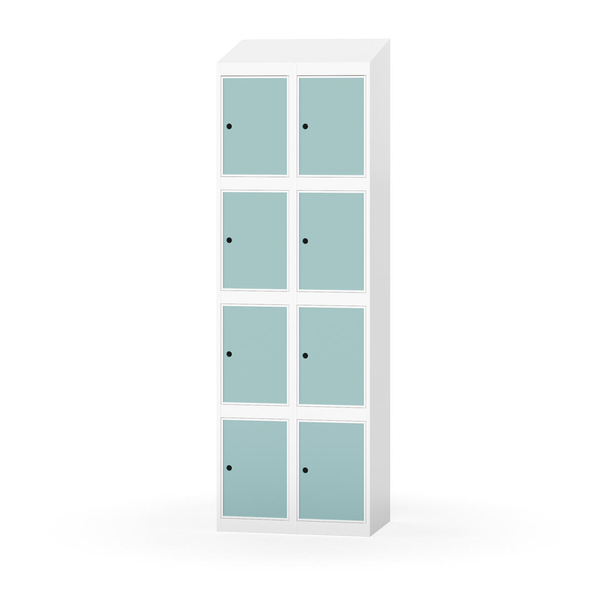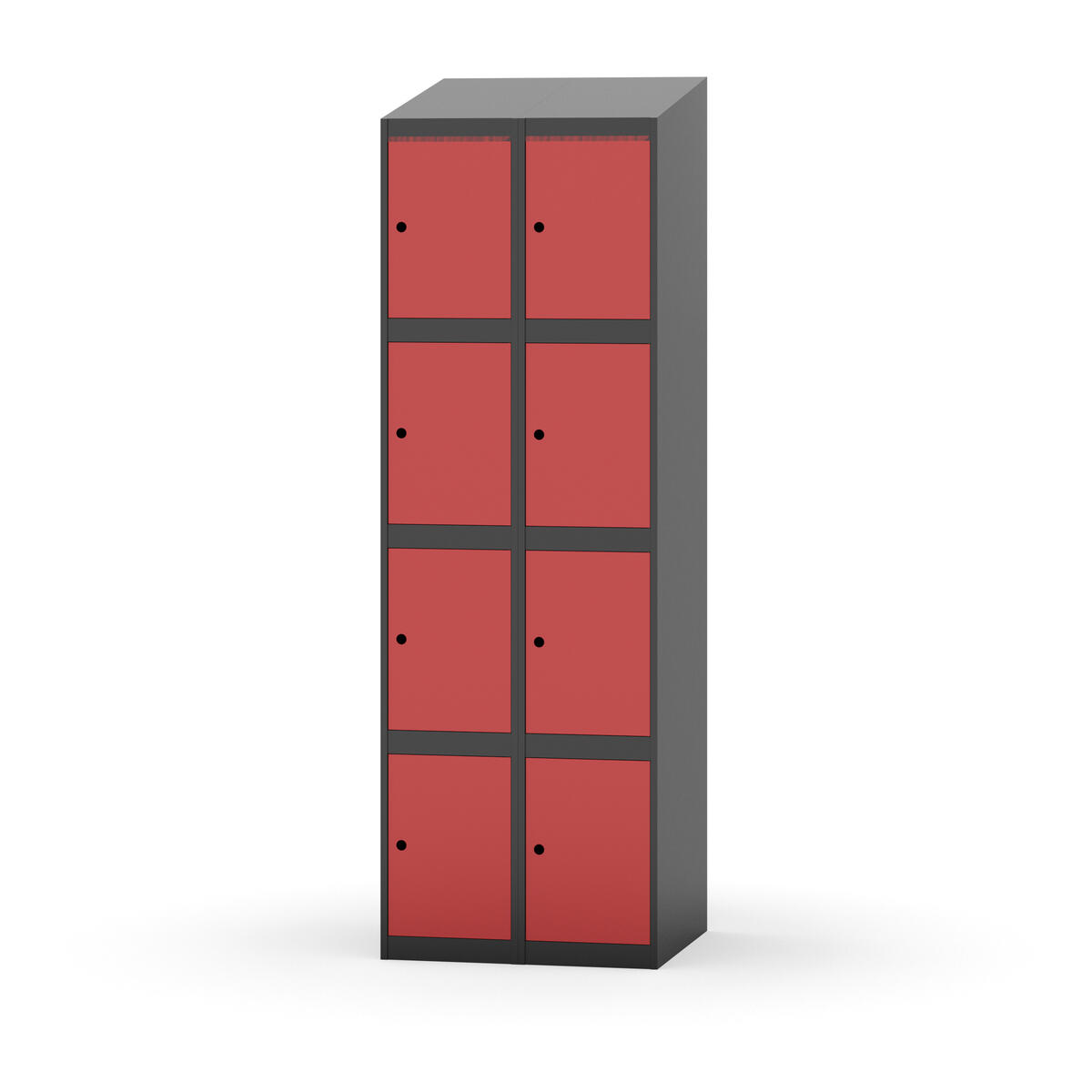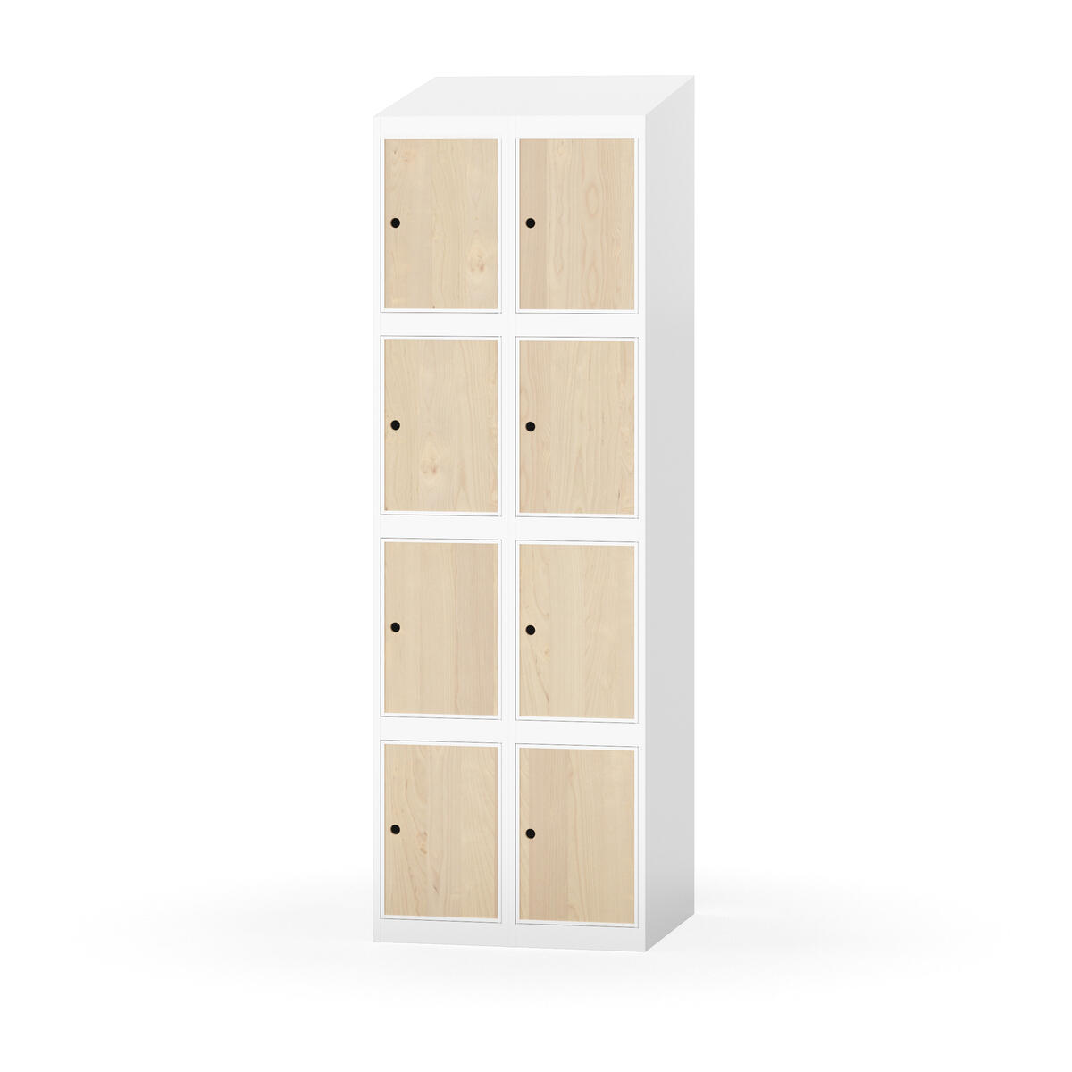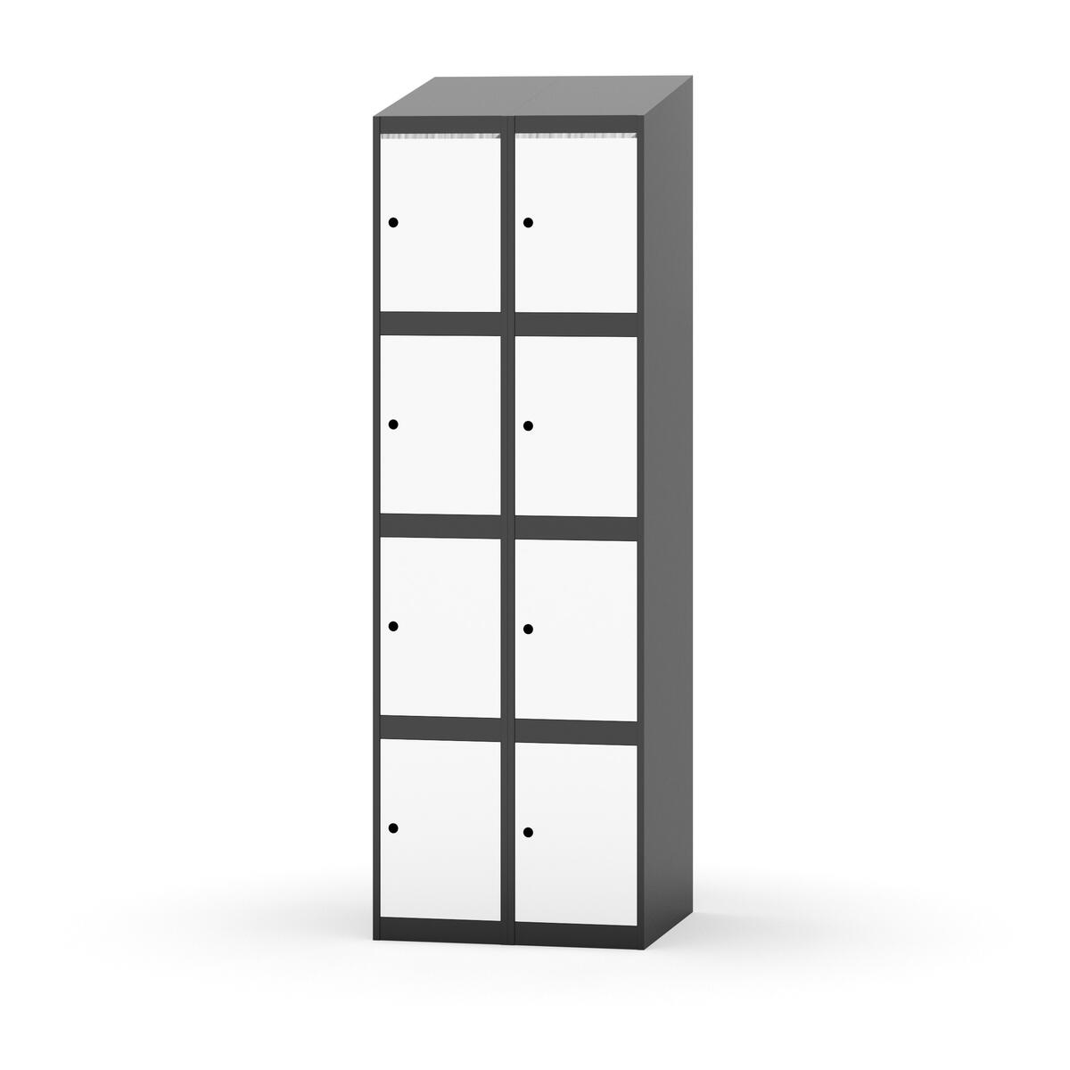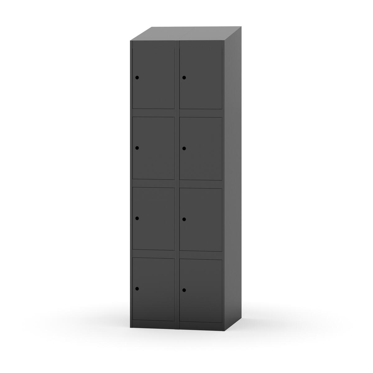 Skolskåp anpassat för krävande skolmiljöer. Helsvetsad stomme med förstärkt karmprofil. Välj mellan plåt eller laminatdörr. Plåtdörren är försedd med dörrstopp i stål och infälld förstärkning kring låshålet, dubbla stålplåtar samt en extra förstärkning mellan plåtarna. Laminatdörr infälld i stålram försedd med dörrstopp i stål. Dörrar är öppningsbara 90 grader. Inredning: Ingen. Slät golvyta utan tröskel. Ventilation genom hål i tak-/bottenplåt. Observera att lås och underrede beställs på separata artikelnummer. Lås kommer att vara monterade på skåp vid leverans. Valt underrede monteras på plats.