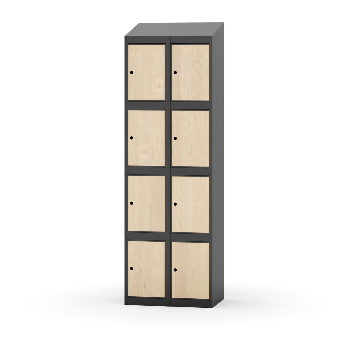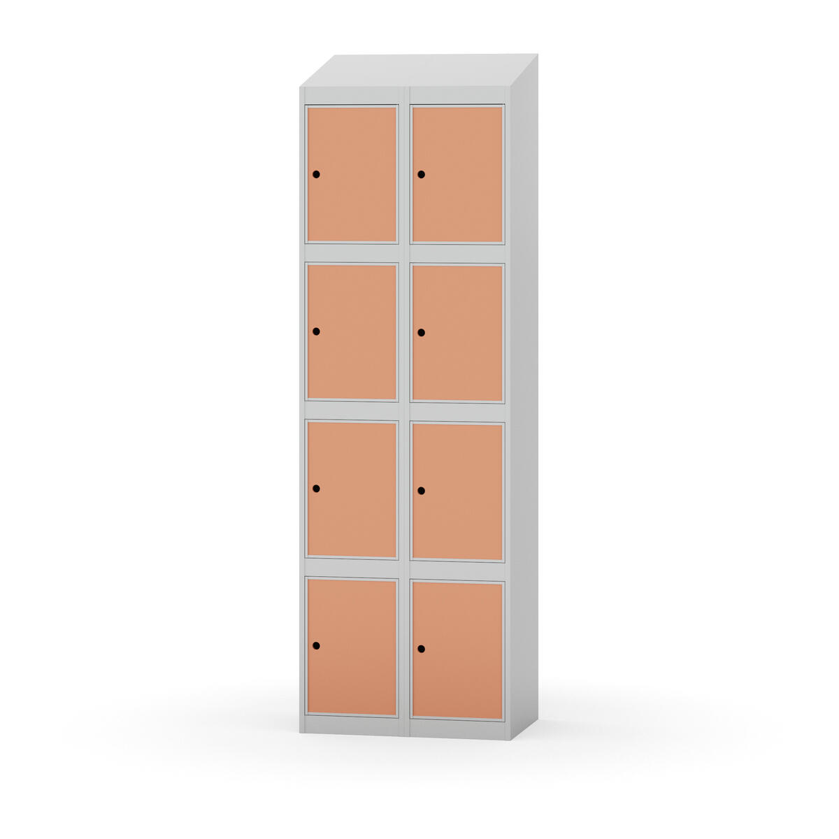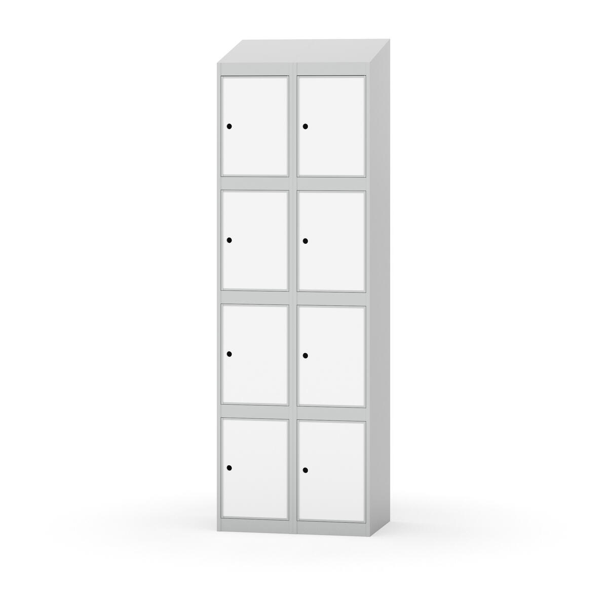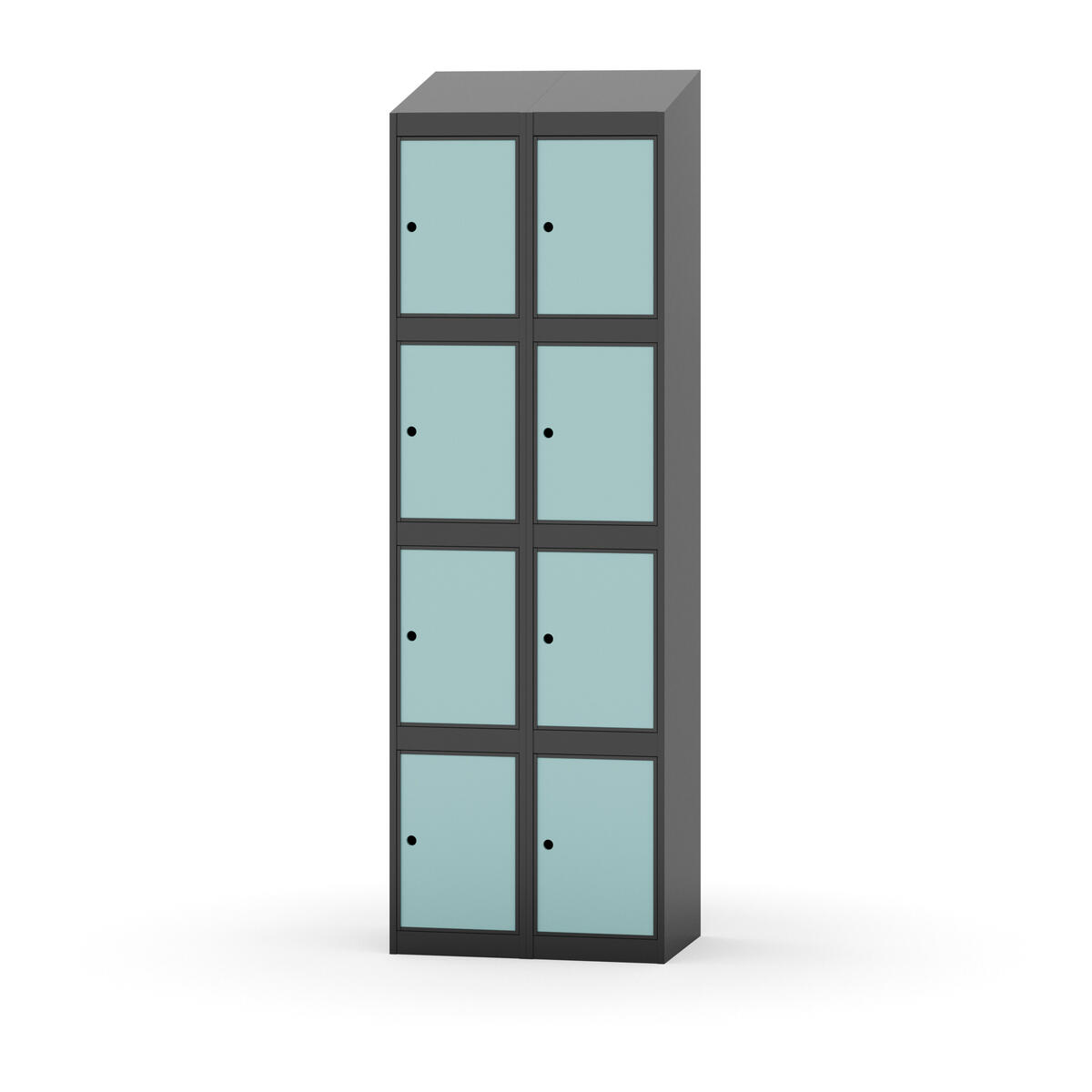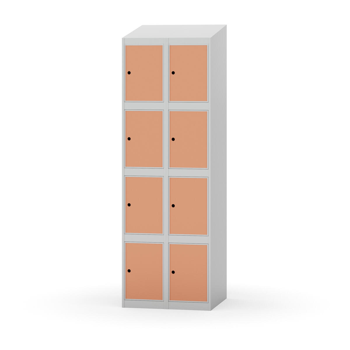 Skolskåp anpassat för krävande skolmiljöer. Helsvetsad stomme med förstärkt karmprofil. Välj mellan plåt eller laminatdörr. Plåtdörren är försedd med dörrstopp i stål och infälld förstärkning kring låshålet, dubbla stålplåtar samt en extra förstärkning mellan plåtarna. Laminatdörr infälld i stålram försedd med dörrstopp i stål. Dörrar är öppningsbara 90 grader. Inredning: Ingen. Slät golvyta utan tröskel. Ventilation genom hål i tak-/bottenplåt. Observera att lås och underrede beställs på separata artikelnummer. Lås kommer att vara monterade på skåp vid leverans. Valt underrede monteras på plats.