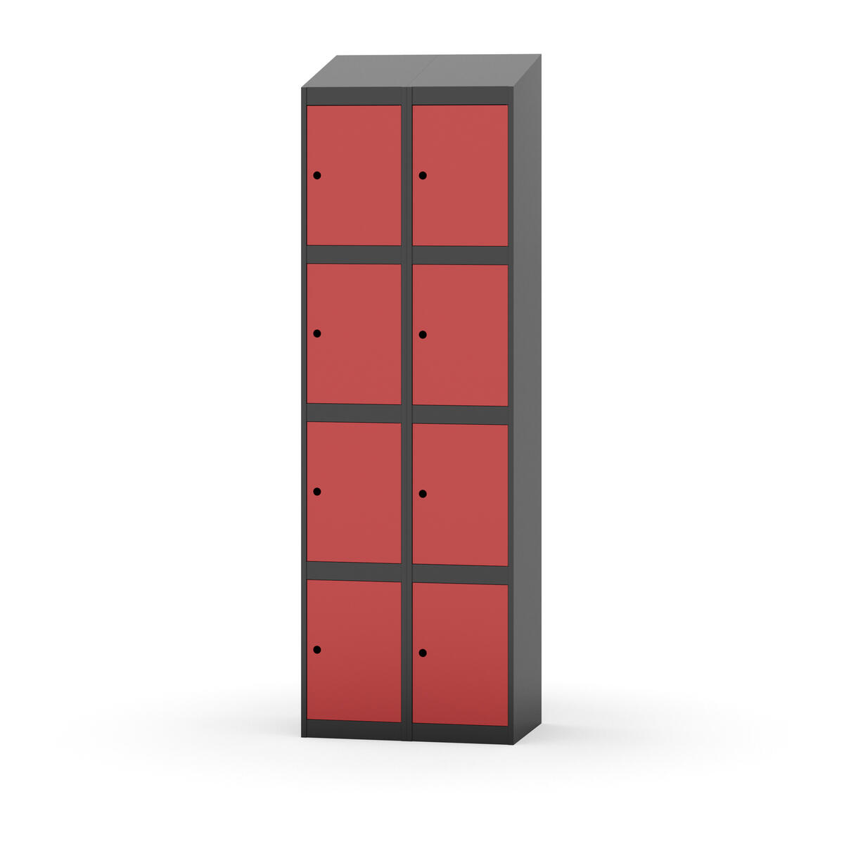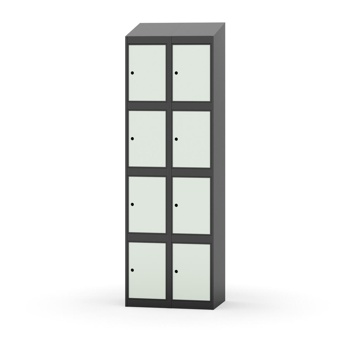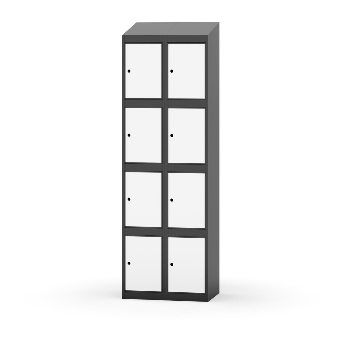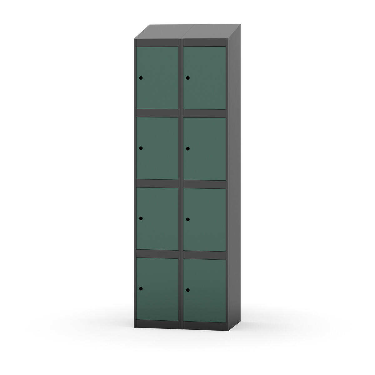 Skolskåp anpassat för krävande skolmiljöer. Helsvetsad stomme med förstärkt karmprofil. Välj mellan plåt eller laminatdörr. Plåtdörren är försedd med dörrstopp i stål och infälld förstärkning kring låshålet, dubbla stålplåtar samt en extra förstärkning mellan plåtarna. Laminatdörr infälld i stålram försedd med dörrstopp i stål. Dörrar är öppningsbara 90 grader. Inredning: Ingen. Slät golvyta utan tröskel. Ventilation genom hål i tak-/bottenplåt. Observera att lås och underrede beställs på separata artikelnummer. Lås kommer att vara monterade på skåp vid leverans. Valt underrede monteras på plats.