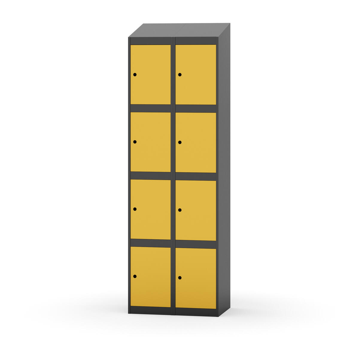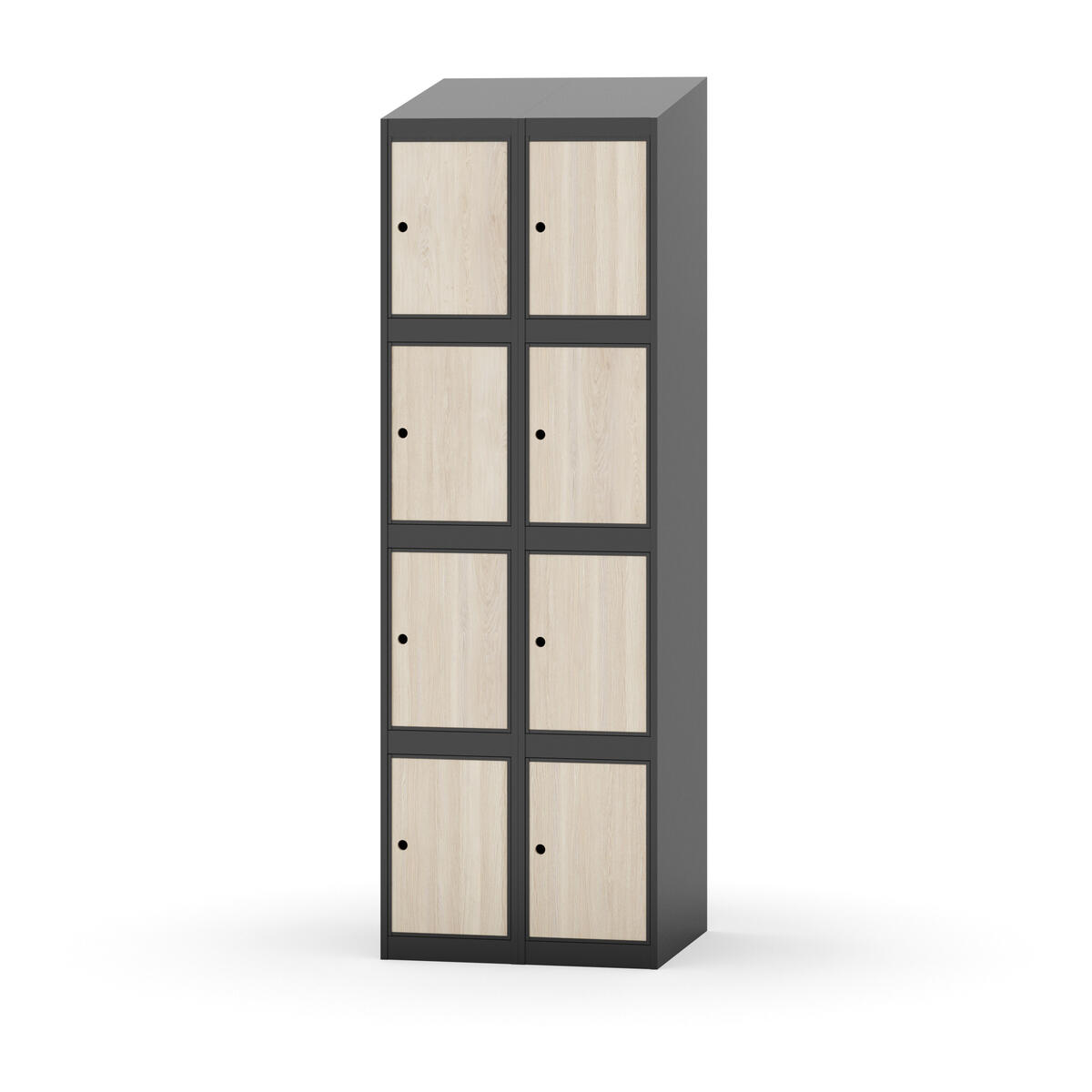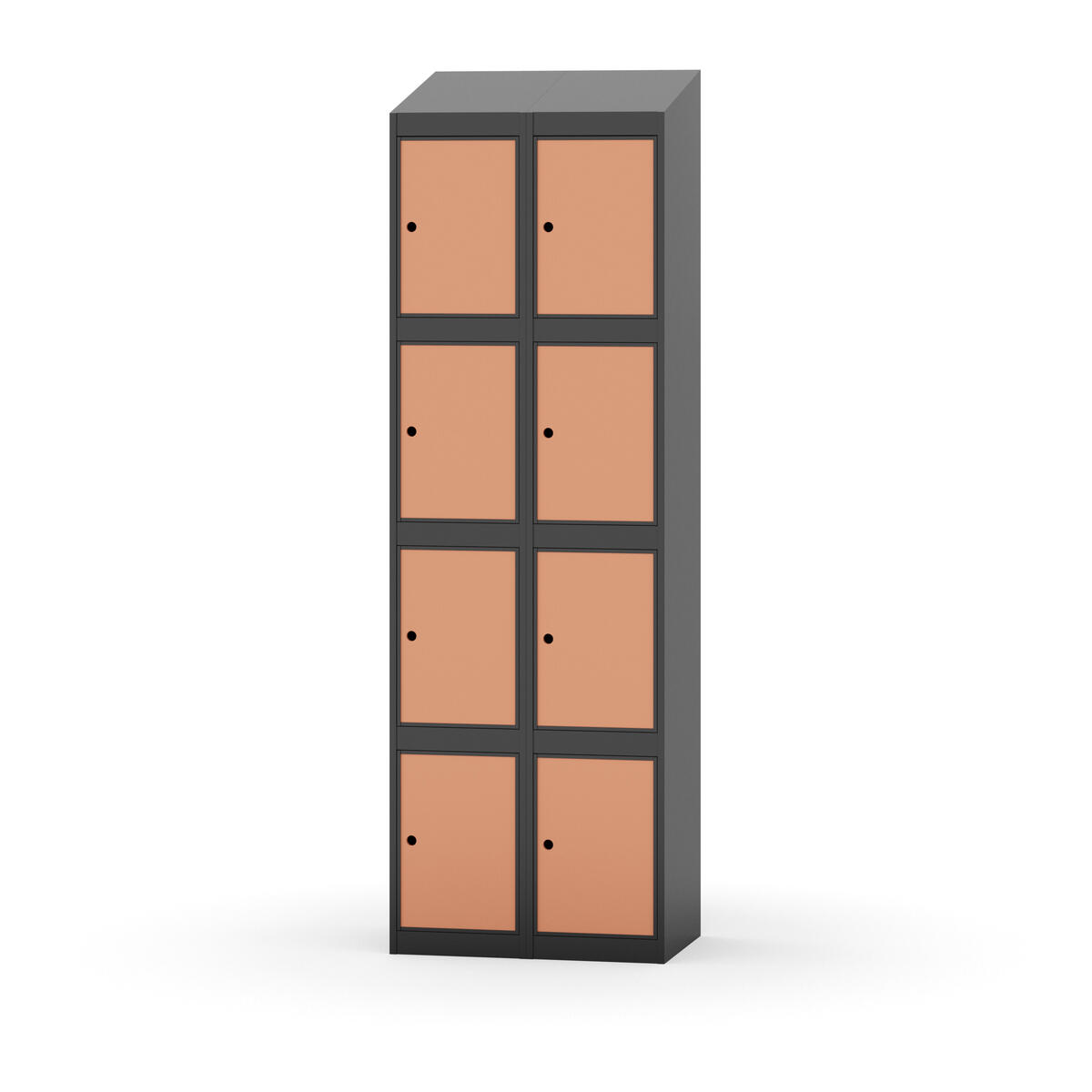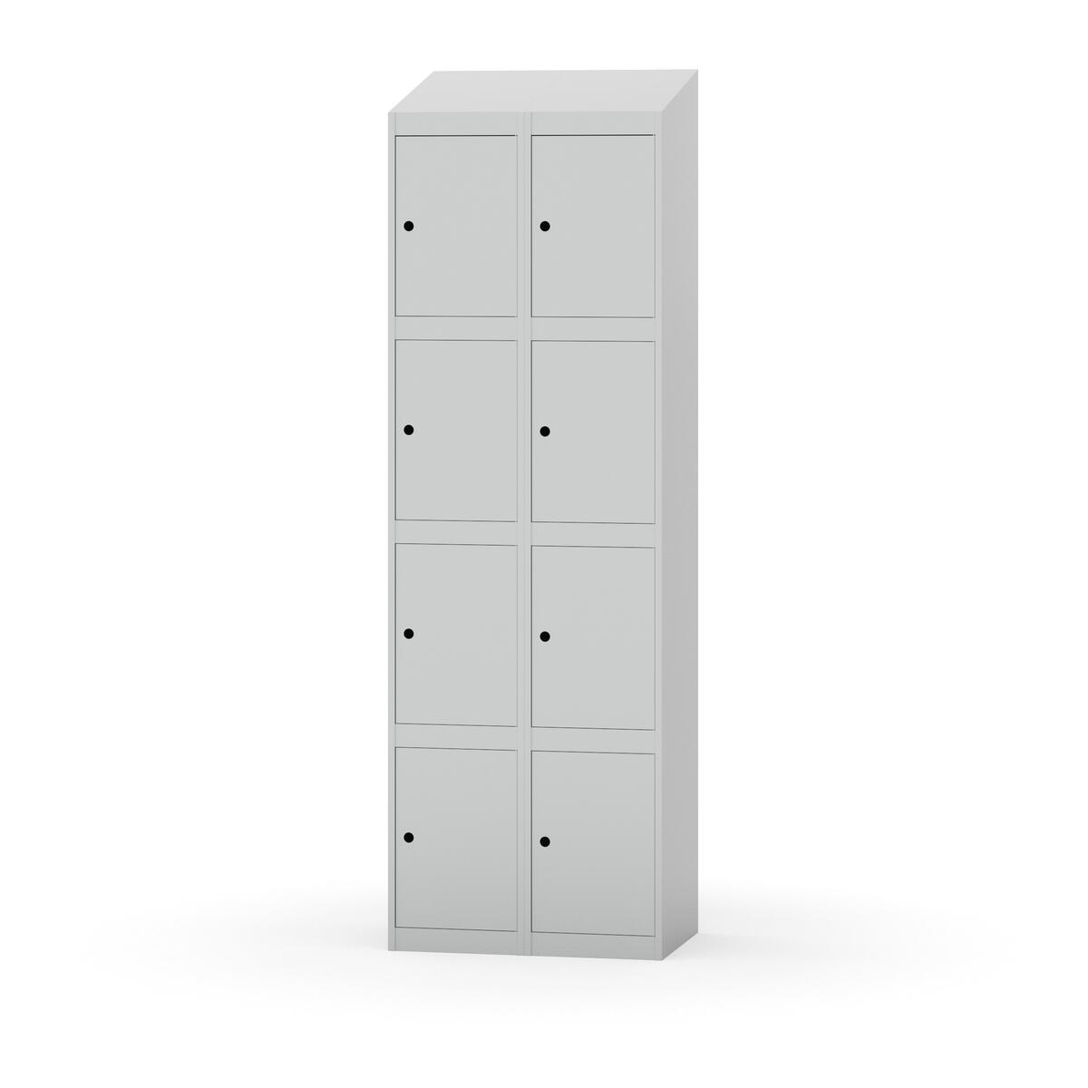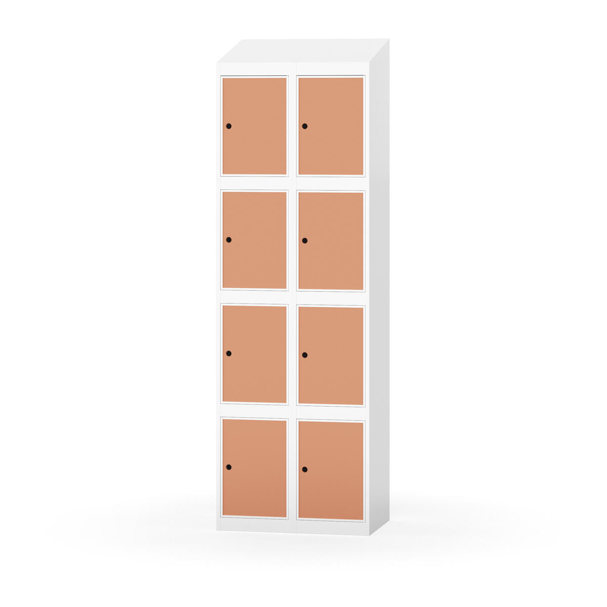 Skolskåp anpassat för krävande skolmiljöer. Helsvetsad stomme med förstärkt karmprofil. Välj mellan plåt eller laminatdörr. Plåtdörren är försedd med dörrstopp i stål och infälld förstärkning kring låshålet, dubbla stålplåtar samt en extra förstärkning mellan plåtarna. Laminatdörr infälld i stålram försedd med dörrstopp i stål. Dörrar är öppningsbara 90 grader. Inredning: Ingen. Slät golvyta utan tröskel. Ventilation genom hål i tak-/bottenplåt. Observera att lås och underrede beställs på separata artikelnummer. Lås kommer att vara monterade på skåp vid leverans. Valt underrede monteras på plats.