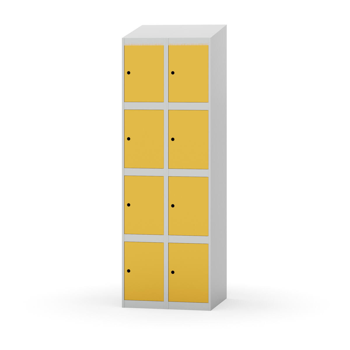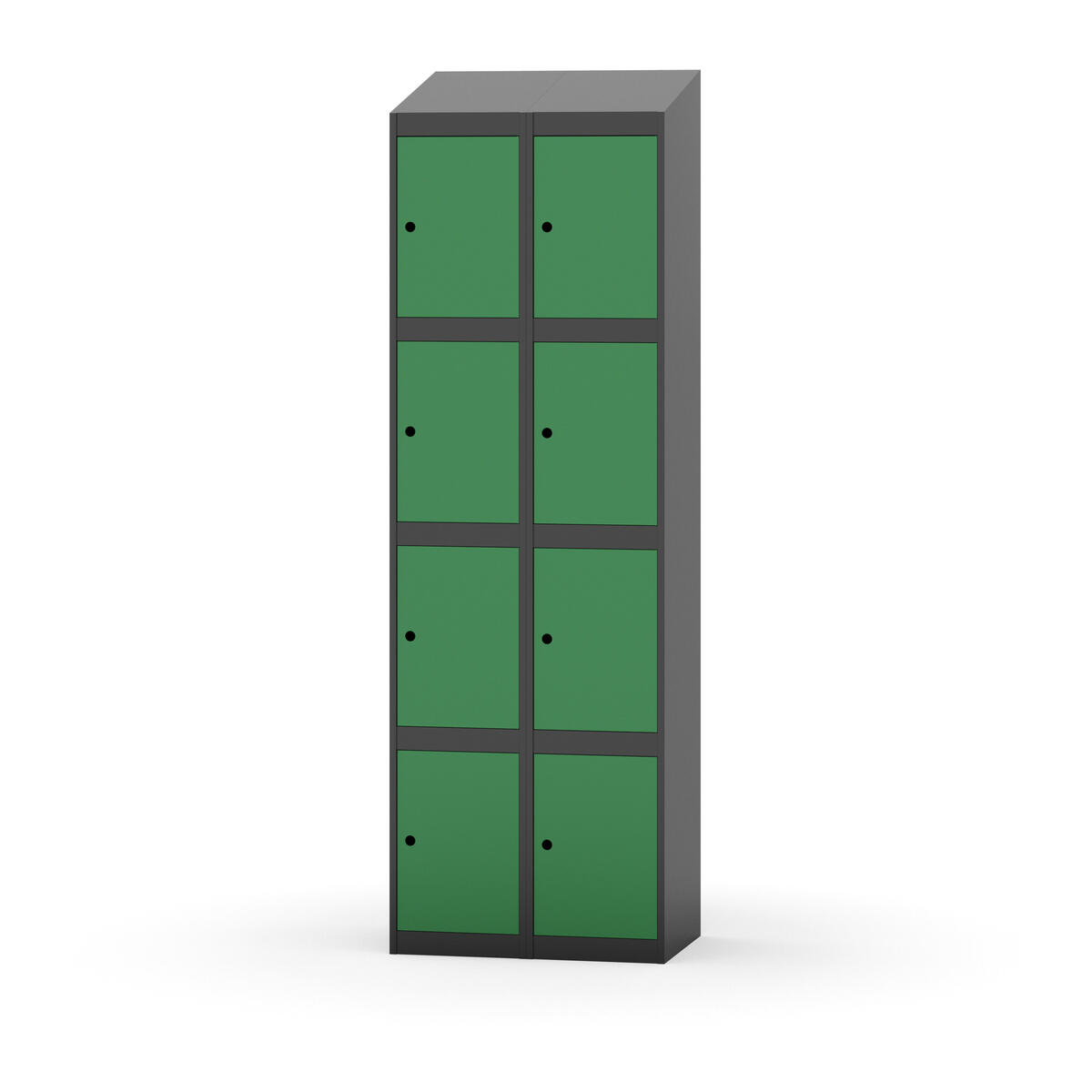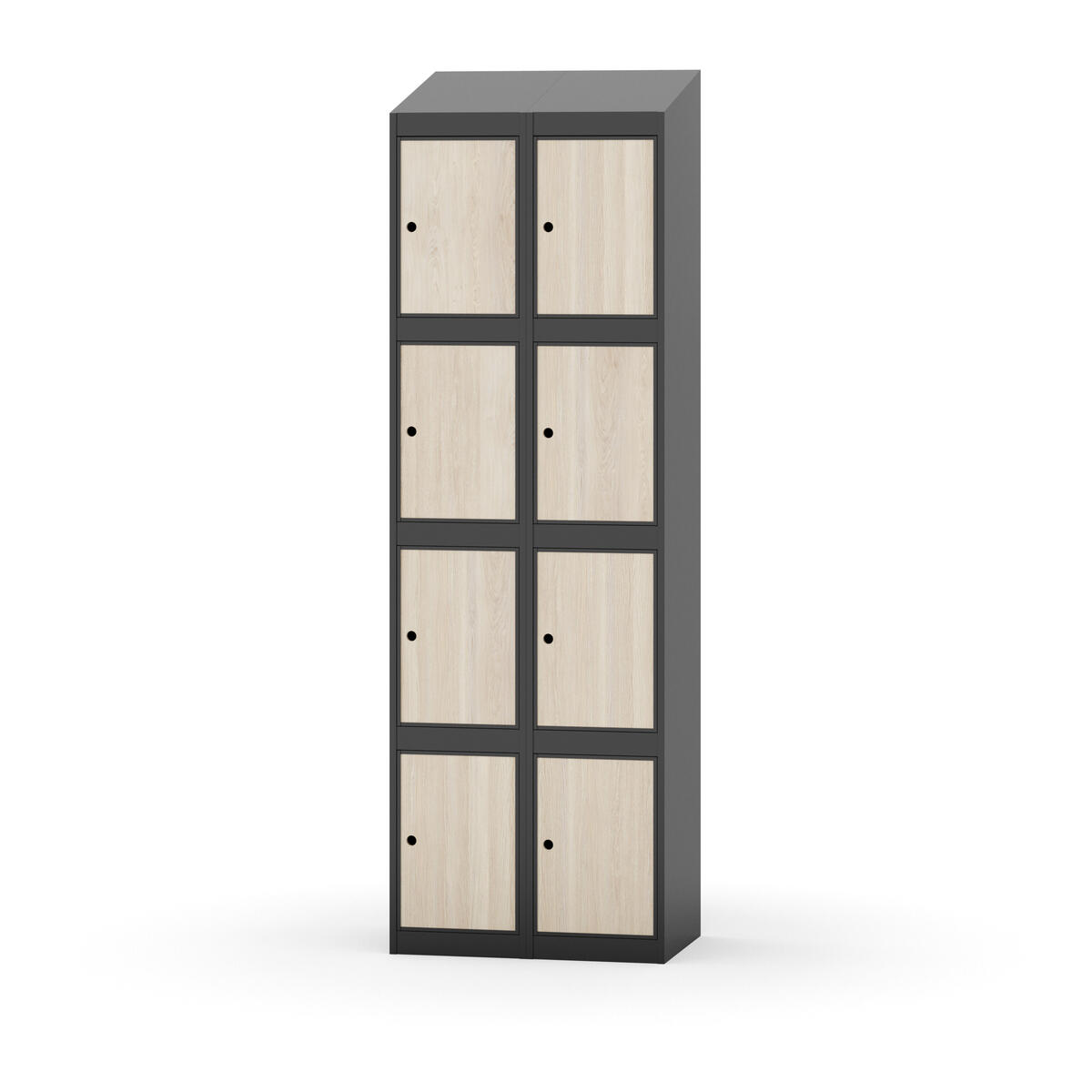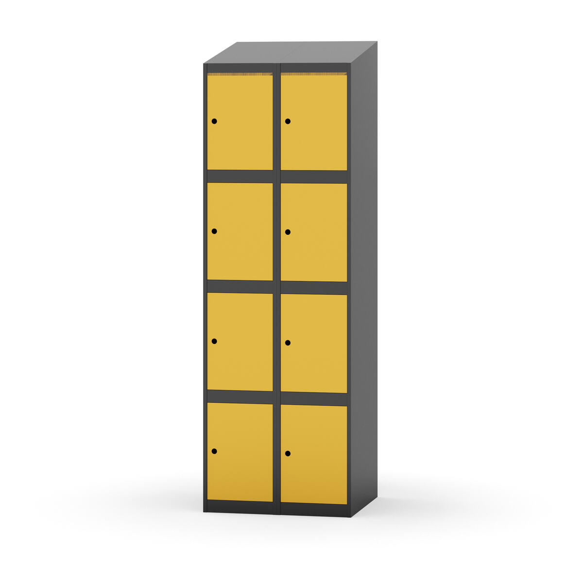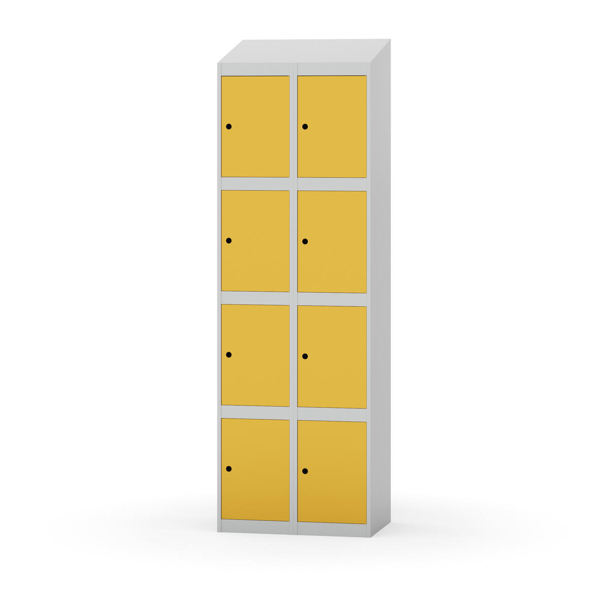 Skolskåp anpassat för krävande skolmiljöer. Helsvetsad stomme med förstärkt karmprofil. Välj mellan plåt eller laminatdörr. Plåtdörren är försedd med dörrstopp i stål och infälld förstärkning kring låshålet, dubbla stålplåtar samt en extra förstärkning mellan plåtarna. Laminatdörr infälld i stålram försedd med dörrstopp i stål. Dörrar är öppningsbara 90 grader. Inredning: Ingen. Slät golvyta utan tröskel. Ventilation genom hål i tak-/bottenplåt. Observera att lås och underrede beställs på separata artikelnummer. Lås kommer att vara monterade på skåp vid leverans. Valt underrede monteras på plats.