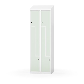 Skolskåp anpassat för krävande skolmiljöer. Helsvetsad stomme med förstärkt karmprofil. Välj mellan plåt eller laminatdörr. Plåtdörren är försedd med dörrstopp i stål och infälld förstärkning kring låshålet, dubbla stålplåtar samt en extra förstärkning mellan plåtarna. Laminatdörr infälld i stålram försedd med dörrstopp i stål. Dörrar är öppningsbara 90 grader. Inredning: Hyllplan och klädstång med ankarkrok. Slät golvyta utan tröskel. Ventilation genom hål i tak-/bottenplåt. Observera att lås och underrede beställs på separata artikelnummer. Lås kommer att vara monterade på skåp vid leverans. Valt underrede monteras på plats.