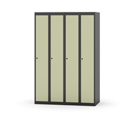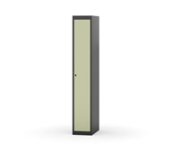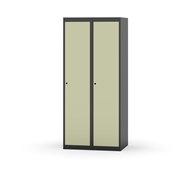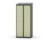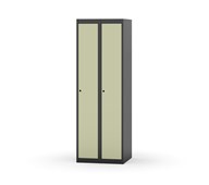 Klädskåp med helsvetsad stomme. Välj mellan plåt eller laminatdörr. Plåtdörren är försedd med dörrstopp i stål och infälld förstärkning kring låshålet. Laminatdörr infälld i stålram försedd med dörrstopp i stål. Dörrar är öppningsbara 90 grader. Inredning: Hyllplan och klädstång med två ankarkrokar. Slät golvyta utan tröskel. Ventilation genom hål i tak-/bottenplåt. Observera att lås och underrede beställs på separata artikelnummer. Lås kommer att vara monterade på skåp vid leverans. Valt underrede monteras på plats.