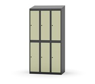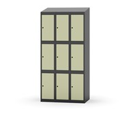 Skolskåp anpassat för krävande skolmiljöer. Helsvetsad stomme med förstärkt karmprofil. Välj mellan plåt eller laminatdörr. Plåtdörren är försedd med dörrstopp i stål och infälld förstärkning kring låshålet, dubbla stålplåtar samt en extra förstärkning mellan plåtarna. Laminatdörr infälld i stålram försedd med dörrstopp i stål. Dörrar är öppningsbara 90 grader. Inredning: Bokfack och två klädkrokar. Slät golvyta utan tröskel. Ventilation genom hål i tak-/bottenplåt. Observera att lås och underrede beställs på separata artikelnummer. Lås kommer att vara monterade på skåp vid leverans. Valt underrede monteras på plats.
