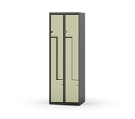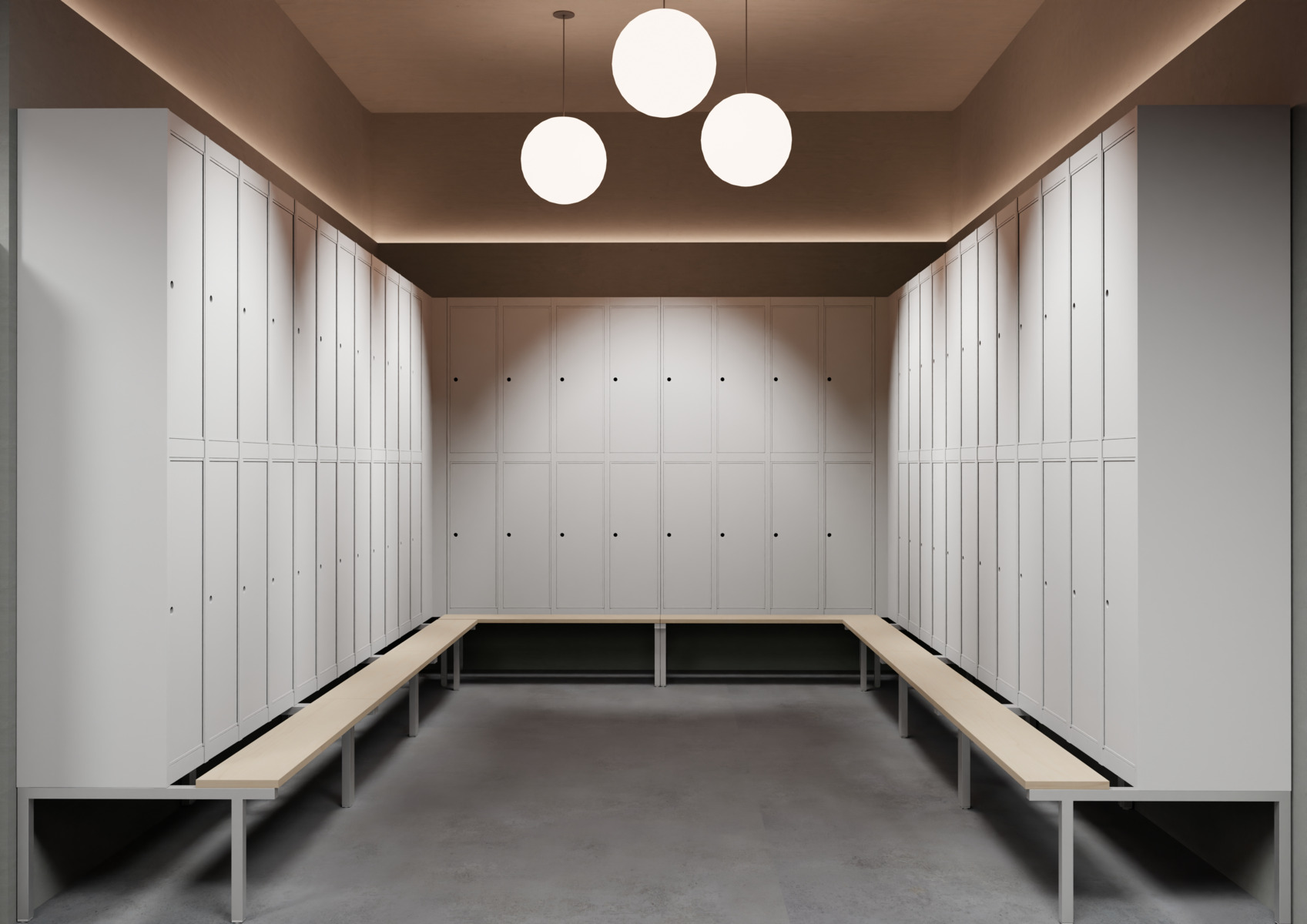 Klädskåp med helsvetsad stomme. Välj mellan plåt eller laminatdörr. Plåtdörren är försedd med dörrstopp i stål och infälld förstärkning kring låshålet. Laminatdörr infälld i stålram försedd med dörrstopp i stål. Dörrar är öppningsbara 90 grader. Inredning: Klädstång med ankarkrok. Slät golvyta utan tröskel. Ventilation genom hål i tak-/bottenplåt. Observera att lås och underrede beställs på separata artikelnummer. Lås kommer att vara monterade på skåp vid leverans. Valt underrede monteras på plats.