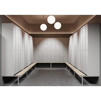 Titel: Benstativ med sittbänk för Skolskåp Novis/Klädskåp Novis D55