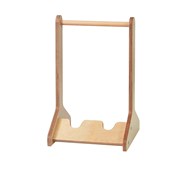På- och avklädningsbänk i björkkryssfaner med vit laminatyta. Toppyta försedd med halksäkert material. Med handtag som standard. Avstånd från golv till första avsats 23 cm. Avsatsen kan fällas upp. Sitthöjd 44 cm. Fason stor 145x63 cm.