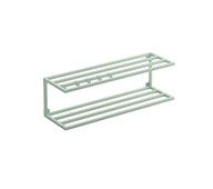 Hatt- och skohylla i samma enhet. Använd samma del både uppe och nere. Monteras direkt på vägg. Bredd 99 cm. Stål, torka med fuktig trasa. Komplettera med Walter krok 82042 som hakas på stången och skruvas fast.