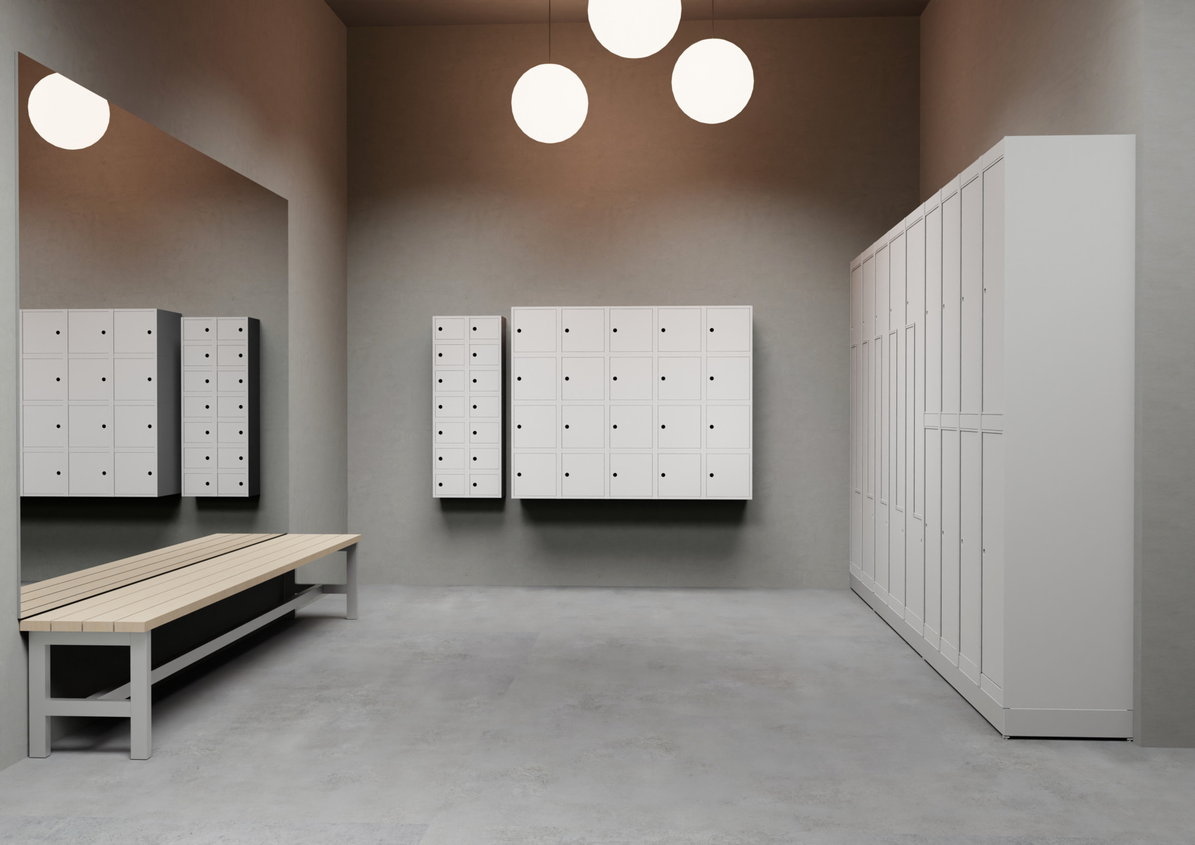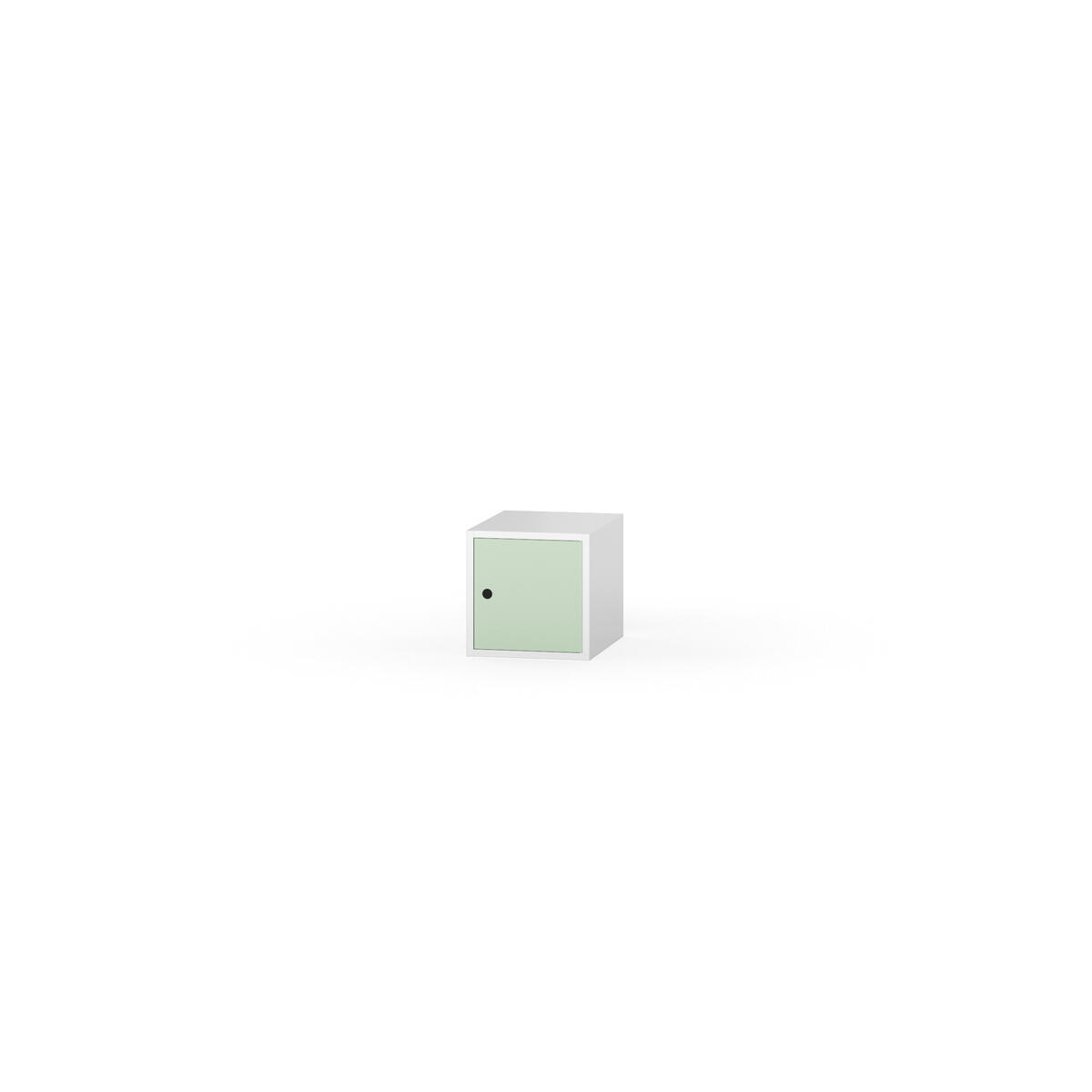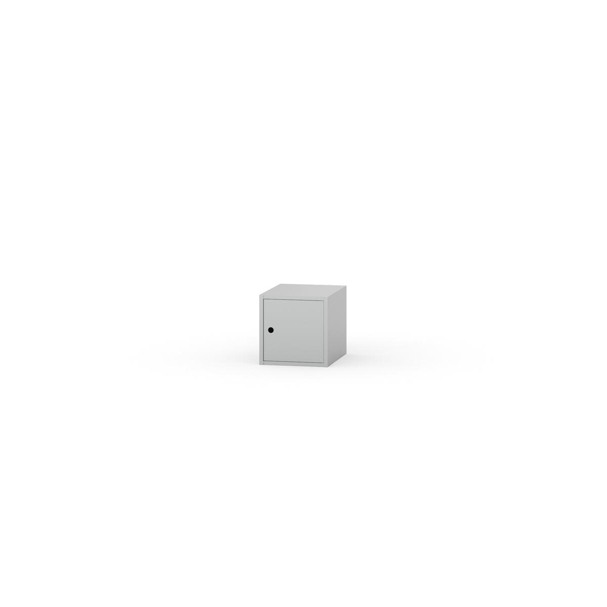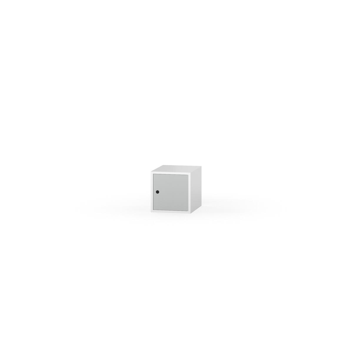 Småfacksskåp- Värdebox med infällda dörrar i stålplåt. Plåtdörren har infälld förstärkning kring låshålet. Kan väggmonteras och har förborrade hål för enkelt kunna kombineras ihop till en större enhet, använd 2 st M6x10-bult och M6-mutter. Observera att lås beställs på separat artikelnummer men kommer att vara monterat vid leverans.