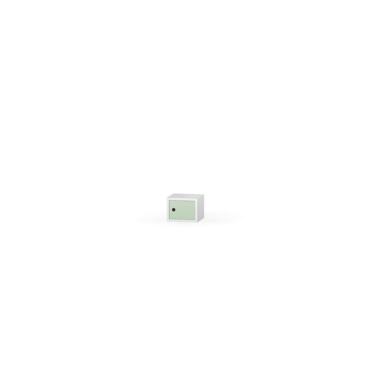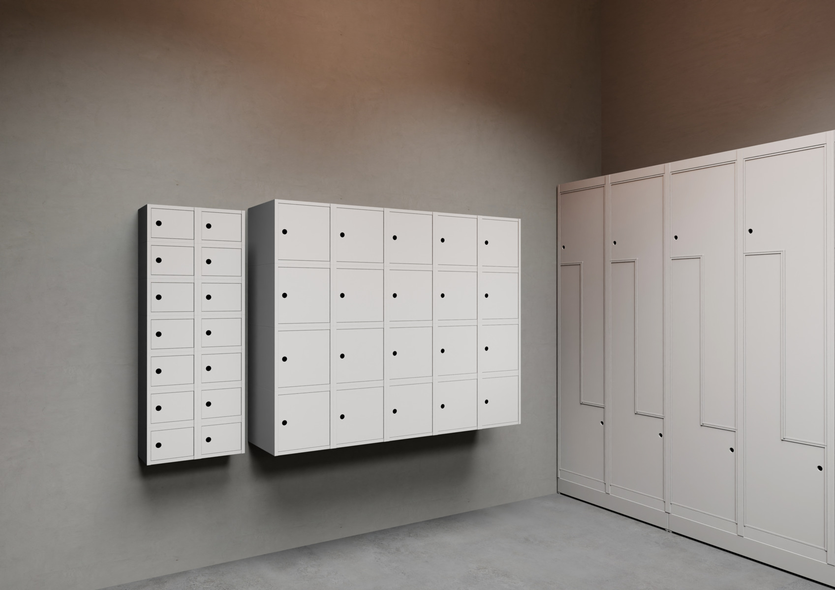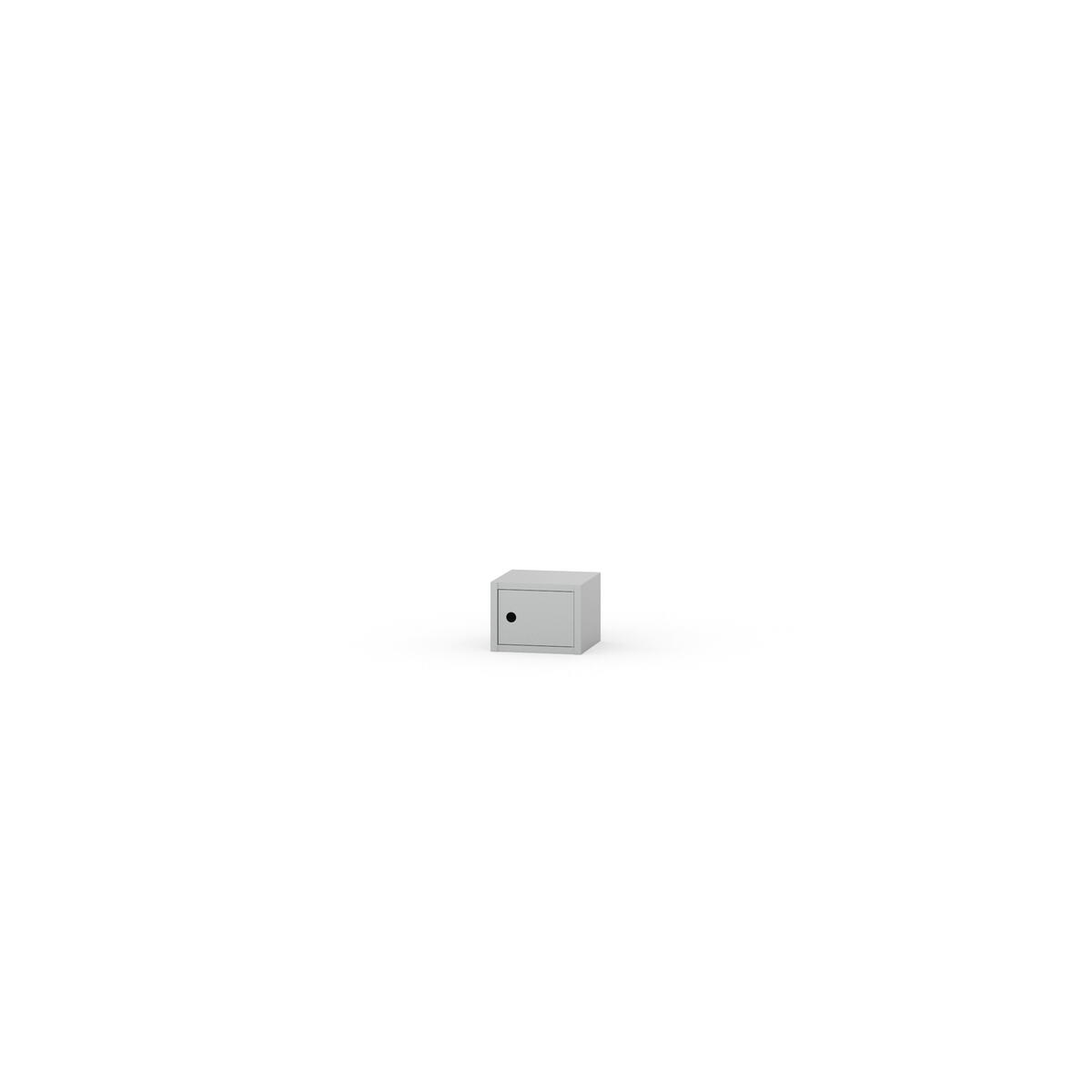 Småfacksskåp- Värdebox med infällda dörrar i stålplåt. Plåtdörren har infälld förstärkning kring låshålet. Kan väggmonteras och har förborrade hål för enkelt kunna kombineras ihop till en större enhet, använd 2 st M6x10-bult och M6-mutter. Observera att lås beställs på separat artikelnummer men kommer att vara monterat vid leverans.